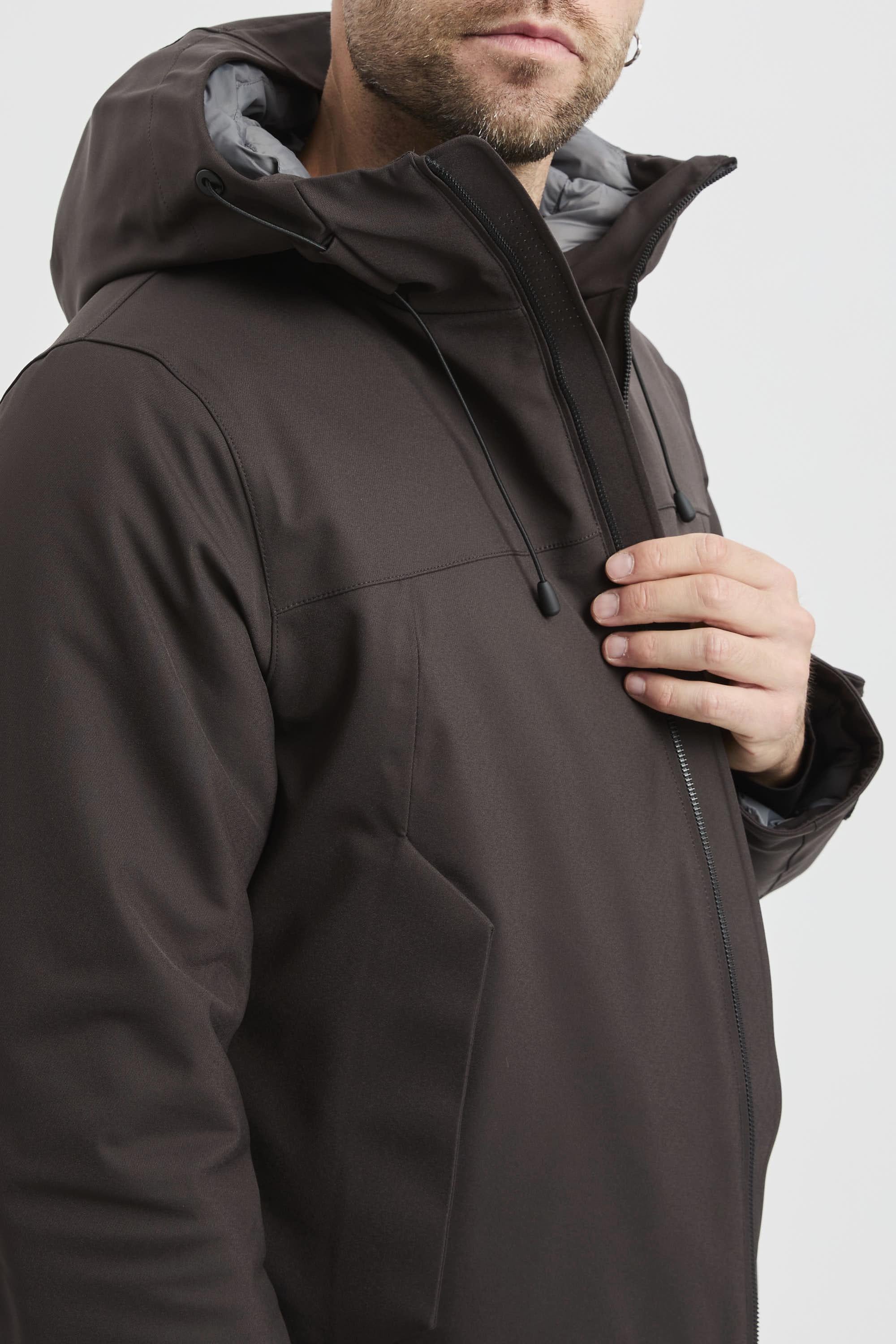 Giubbino tecnico three-layer con membrana e cappuccio con coulisse, progettato per proteggere da pioggia e vento mantenendo leggerezza e traspirabilità. L’interno libero trapuntato in PRIMALOFT® garantisce isolamento termico efficiente senza aggiungere volume, mentre la zip pressofusa a doppio cursore con parazip in tessuto principale e aeratori laser-cut ottimizza ventilazione e comfort. Le tasche esterne con pattina e bottone a pressione nascosto con calamita custodiscono l’essenziale, le tasche interne nastrate con zip sono dedicate a portadocumenti e portacellulare. Completano il design i badge su manica sinistra e la rubber label sulla destra con le coordinate dello Shibuya Crossing.Caratteristiche principali:# Tessuto tecnico 3 strati con membrana.# Cappuccio regolabile con coulisse.# Interno libero trapuntato in PRIMALOFT®.# Zip pressofusa a doppio cursore con zipper puller personalizzato.# Parazip in main fabric con aeratori laser-cut.# Tasche esterne con pattina e bottone a pressione nascosto con calamita.# Tasche interne nastrate con zip (portadocumenti e portacellulare).# Badge brand su manica sinistra.# Rubber label su manica destra con coordinate Shibuya Crossing.