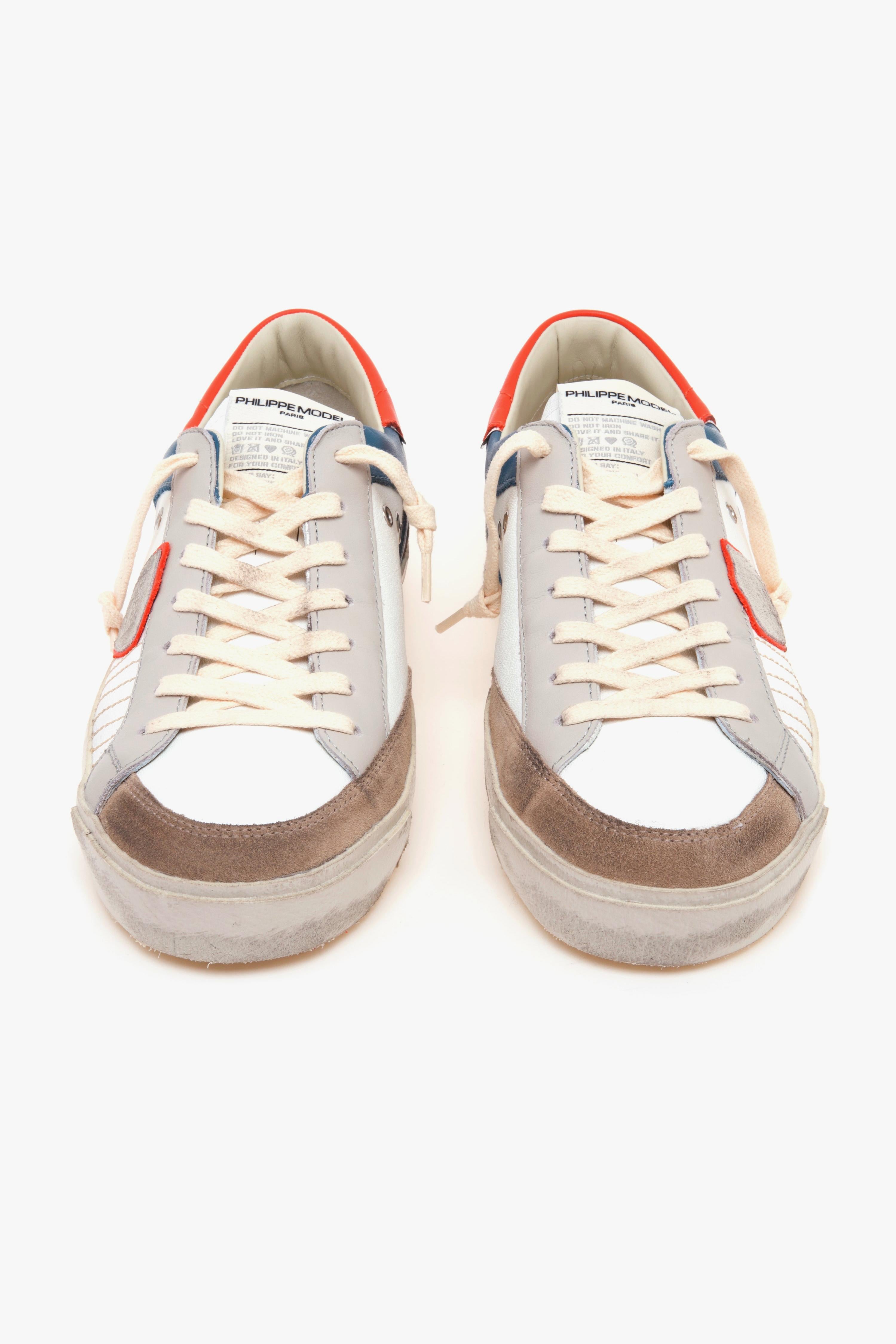 Palette cromatica decisa e costruzione materica definiscono questa PRSX Tennis in una variante pensata per la città con un’estetica pulita ma distintiva. La base in pelle bianca accoglie inserti in pelle blu avio sul lato, mentre puntale e tallone in camoscio beige aggiungono profondità tattile e un accento rétro. Il talloncino arancio firma la sneaker con un dettaglio di carattere, creando un contrasto equilibrato e facile da abbinare. L’insieme mantiene il DNA PRSX, con linee essenziali e finiture curate che valorizzano la portabilità quotidiana senza rinunciare all’identità del brand.Caratteristiche principali# Modello: PRSX Tennis Men – variante colore XP08.# Tomaia: pelle bianca con inserti in pelle blu avio.# Dettagli tomaia: puntale e tallone in camoscio beige.# Talloncino: arancio.# Stile: profilo urbano dal look essenziale, con contrasti cromatici equilibrati.