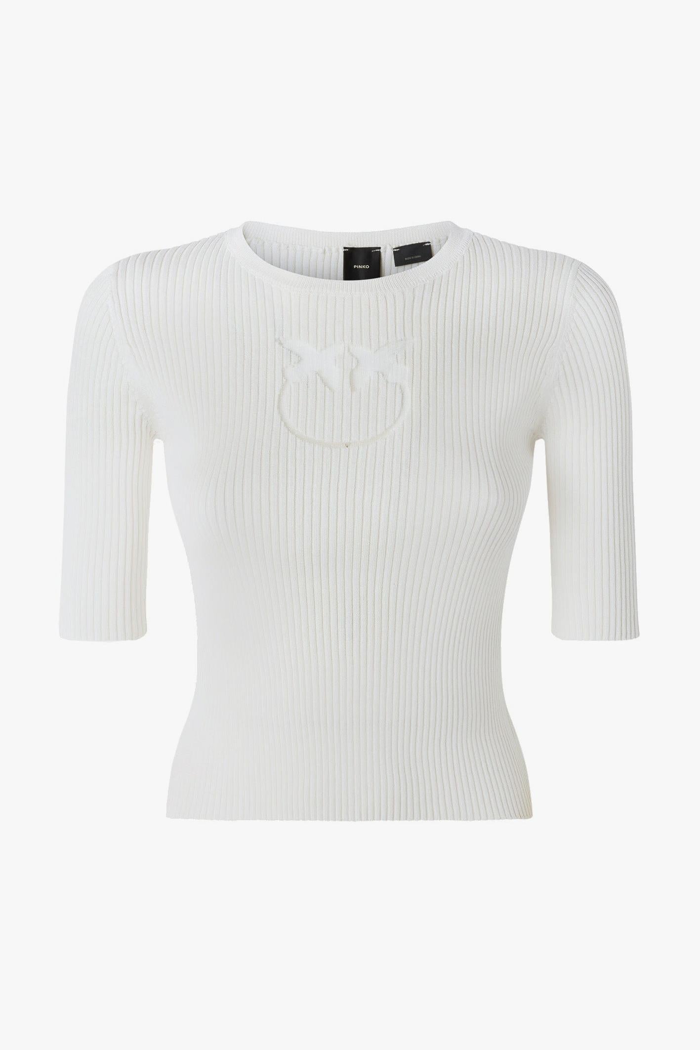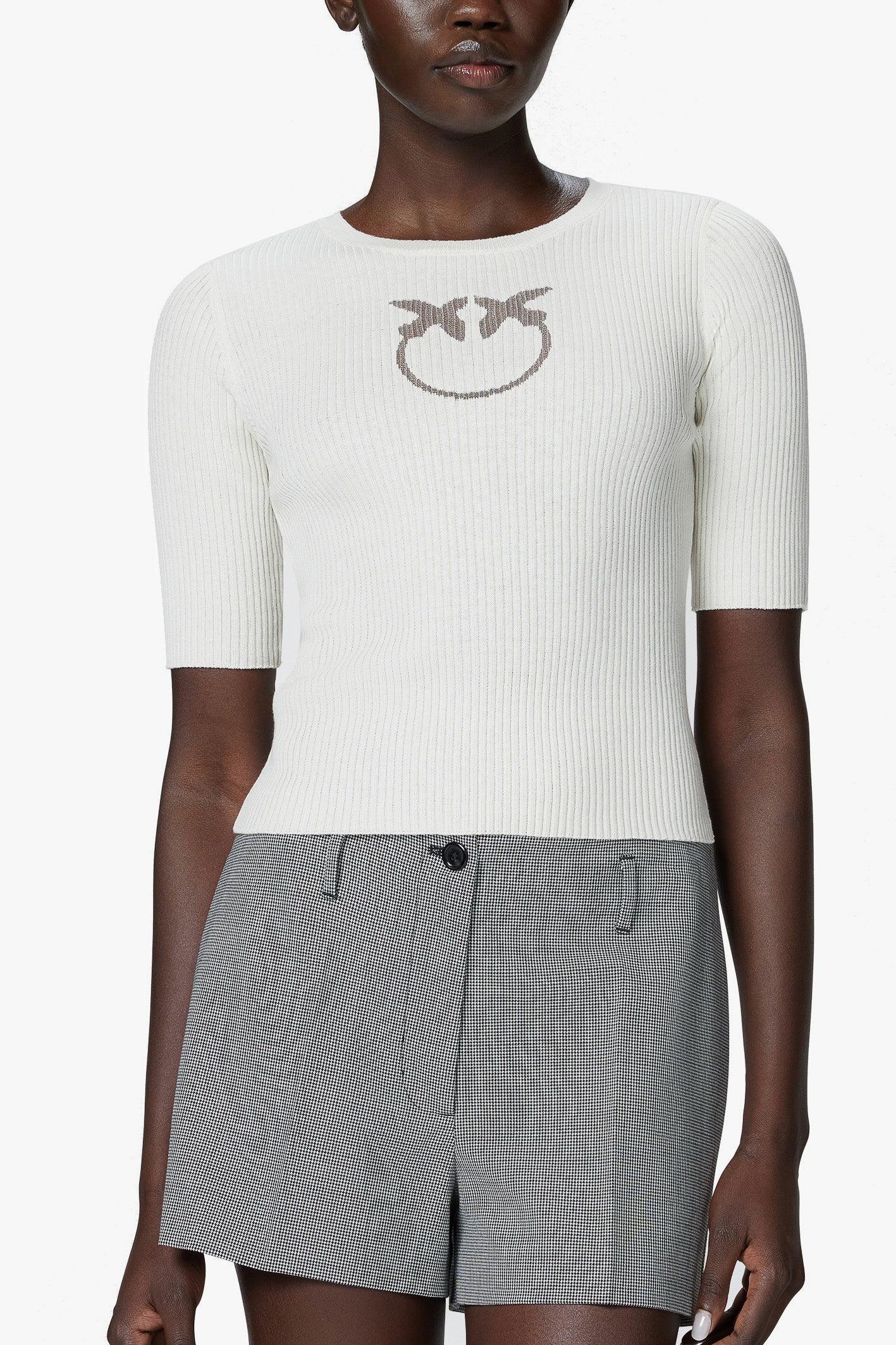 pinko Maglia a costine con logo Love Birds in trasparenza