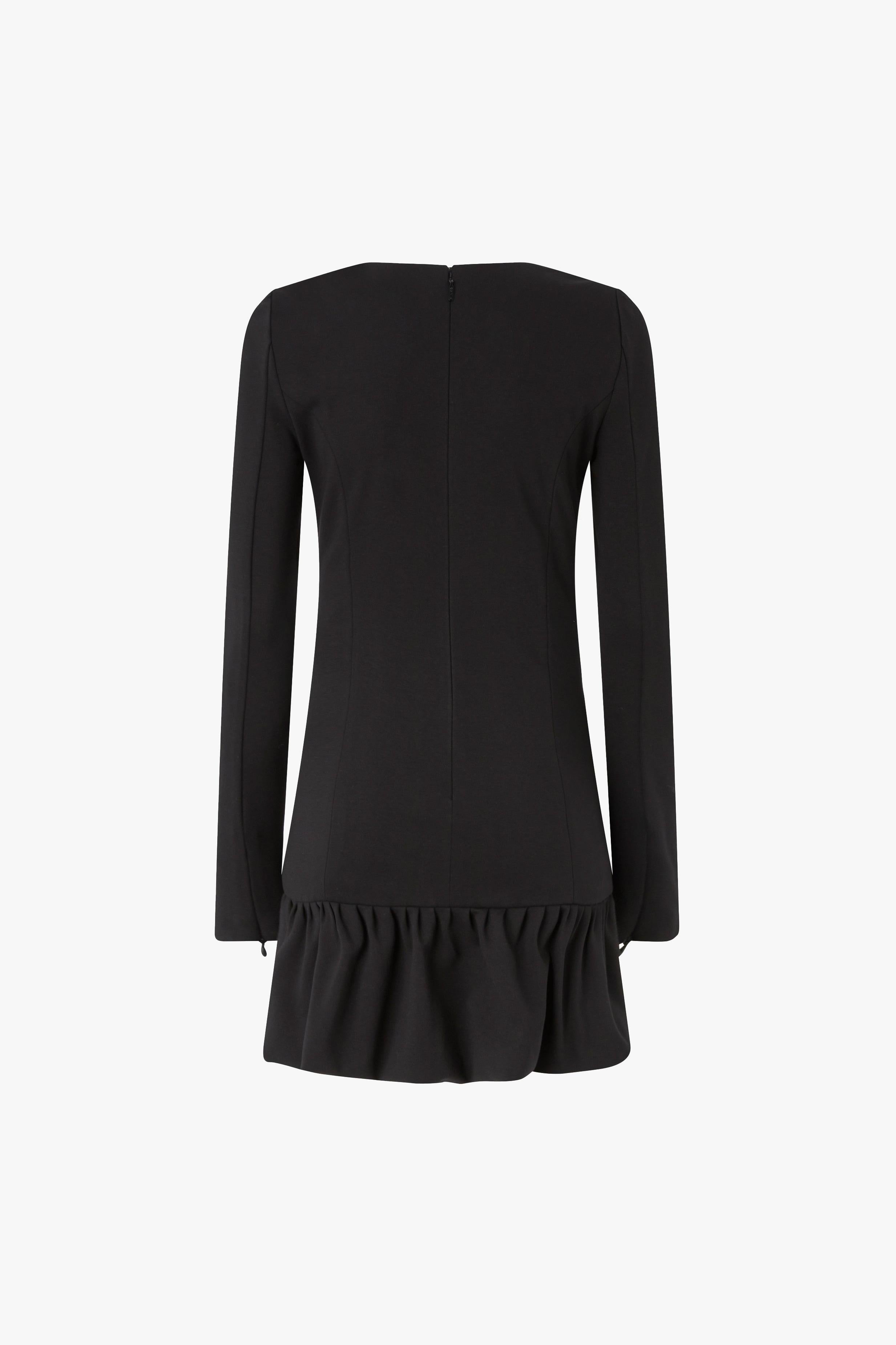 Vestibilità: aderente, linea sfiancata.# Lunghezza: minidress Maniche lunghe.# Tessuto: maglia in punto stoffa.# Dettagli: balza asimmetrica sul fondo.# Chiusura: zip invisibile sul retro.# Colore / variante: acetosella .# Composizione: 67% viscosa, 28% nylon, 5% elastan (tessuto esterno); fodera: 67% acetato, 33% poliestere. # Cura: lavaggio a secco professionale o stiratura a max 110 °C secondo etichetta