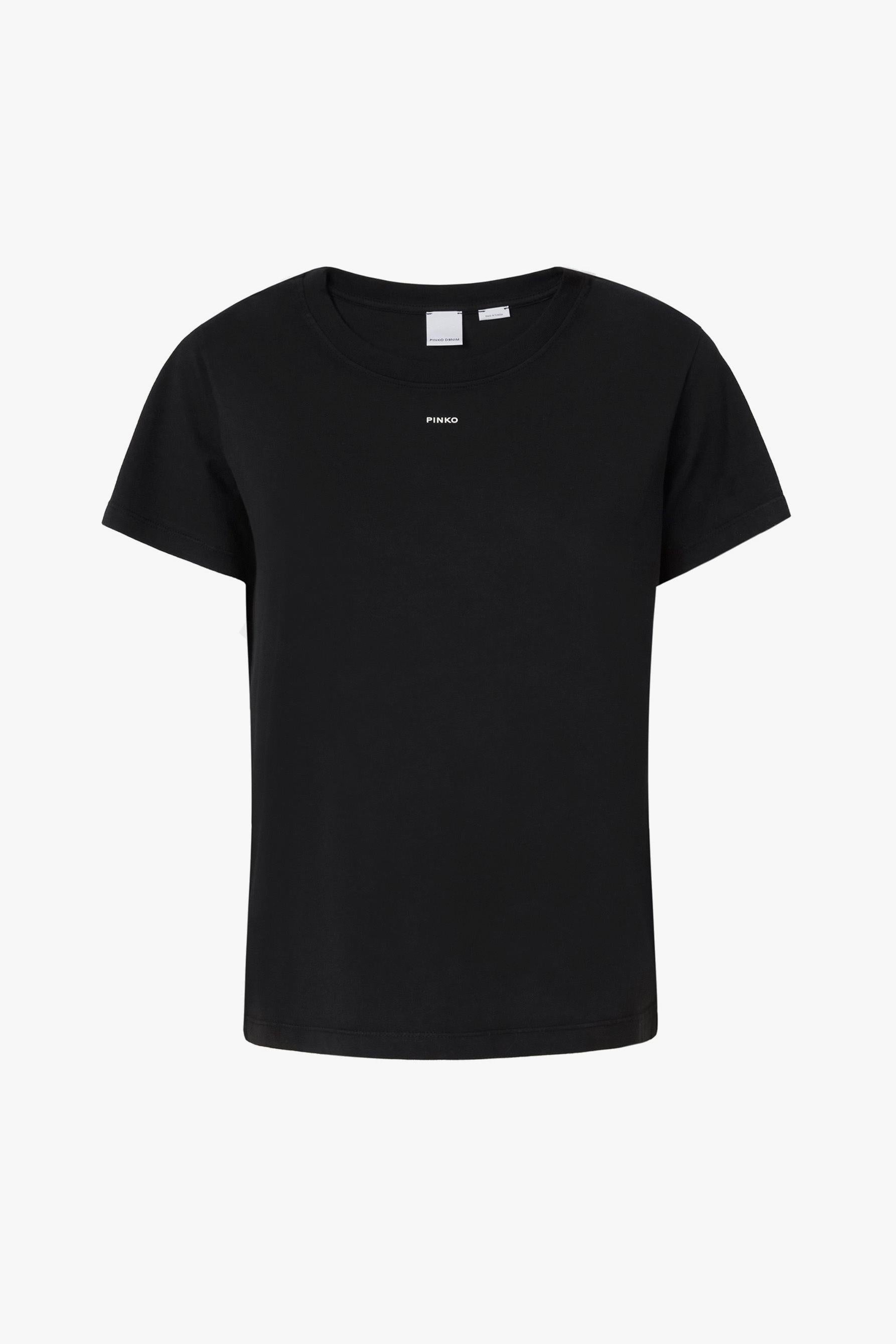 T-shirt con mini logo PINKO – Comfort e stile minimalista.Questa T-shirt a maniche corte in jersey di cotone con trattamento old wash è l'aggiunta perfetta per un look semplice ma iconico. Il design pulito e minimalista è arricchito dalla stampa mini logo PINKO centrale davanti, un dettaglio discreto ma riconoscibile che celebra l'essenza del marchio.Realizzata al 100% in cotone, questa T-shirt offre una vestibilità morbida e confortevole, ideale per ogni occasione, dal casual al più chic. Puoi abbinarla facilmente a jeans, pantaloni cargo o anche sotto una giacca leggera per un tocco sporty-chic. Un capo versatile che non passa mai di moda.Perfetta per chi cerca una T-shirt che unisce comfort e stile, senza rinunciare all'eleganza del brand PINKO.# Composizione: 100% cotone. # Pinko BASICO T-SHIRT.