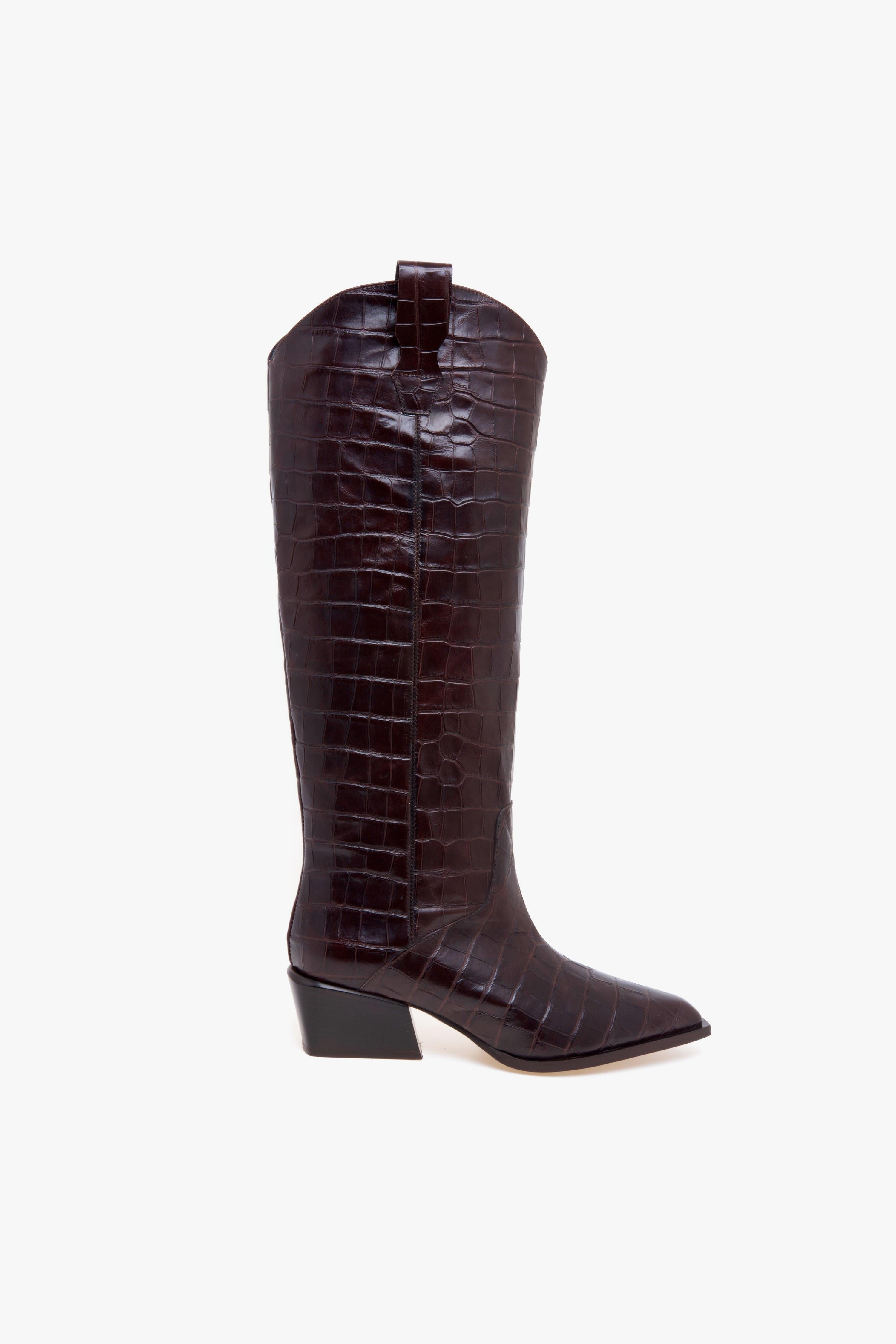 Linee western e finitura cocco si incontrano in questo stivale texano Poeve, pensato per chi cerca un accessorio dal carattere deciso senza rinunciare all’eleganza. La pelle stampa cocco regala profondità e ritmo alla tomaia; la punta leggermente affusolata con profilo della suola squadrato attualizza il design, mentre il gambale riprende i codici classici dei cowboy boots. Il tacco da 50 mm slancia la gamba e rende il modello perfetto dal giorno alla sera, facile da abbinare tanto con denim quanto con abiti midi. Caratteristiche principali: # Stivale texano Poeve in pelle stampa cocco. # Punta leggermente affusolata con suola squadrata in punta. # Gambale ispirato agli stivali texani. # Tacco 50 mm per uno slancio naturale. # Tomaia in pelle. # Fodera in pelle. # Sottopiede in pelle. # Suola in gomma per grip quotidiano. # Made in Italy.