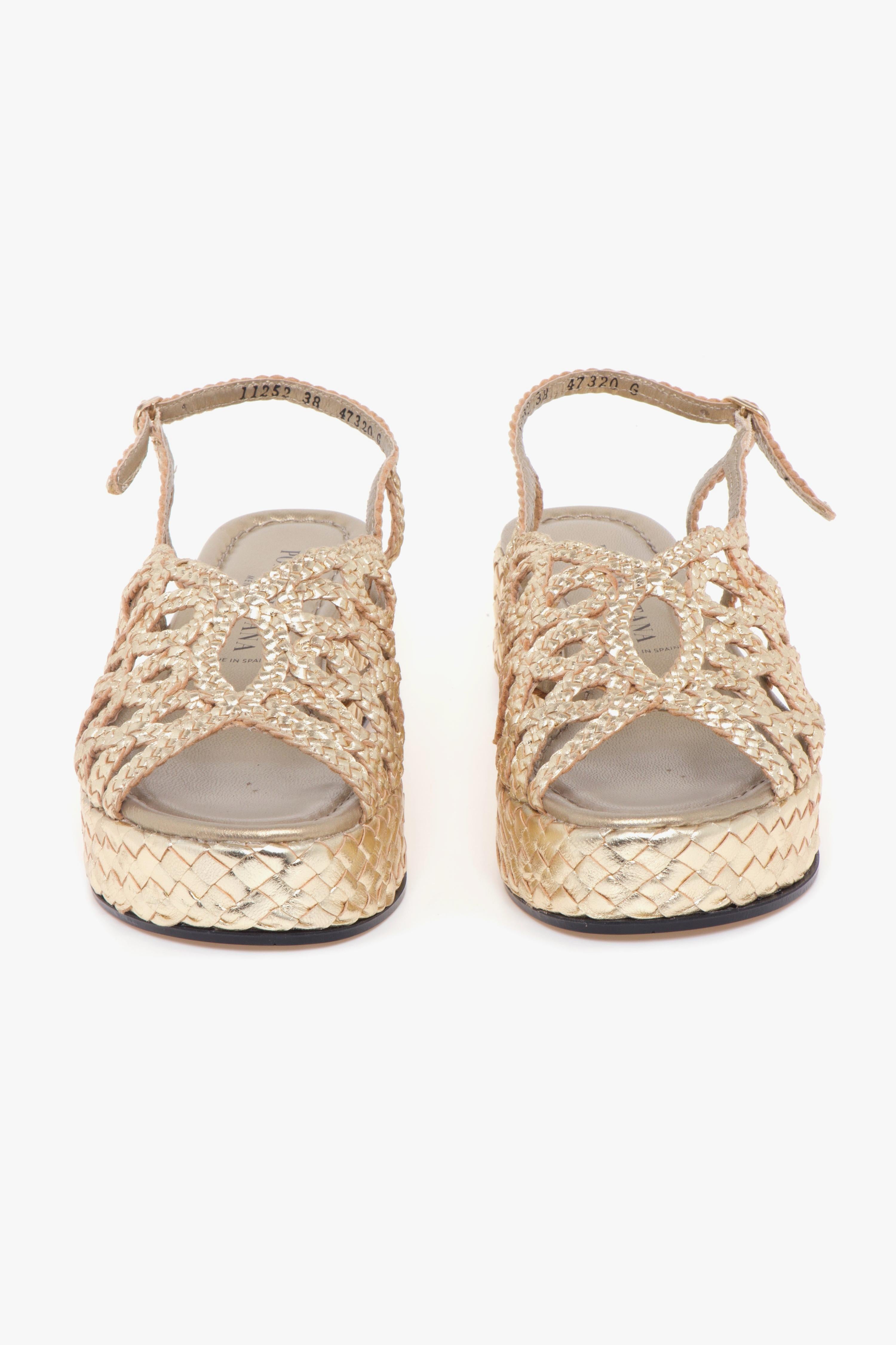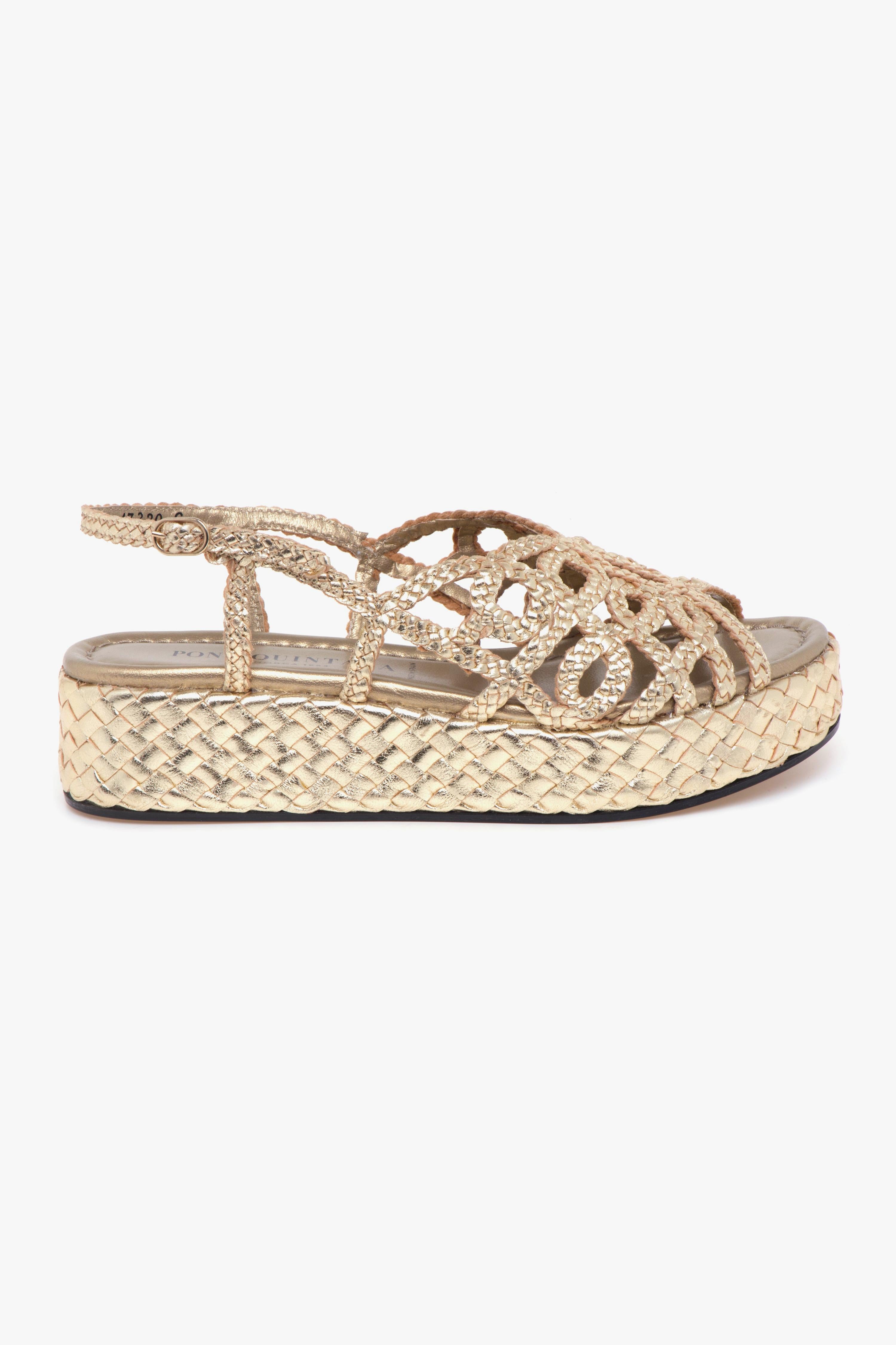 Artigianalità e comfort si incontrano nel sandalo Pons Quintana, caratterizzato da una tomaia interamente in pelle intrecciata che dona al modello un’estetica naturale e raffinata. Lo scollo a “V” sulla della tomaia valorizza il piede e contribuisce a slanciare la gamba, mentre il collo del piede resta libero per garantire maggiore comodità. Il cinturino regolabile sul tallone assicura una calzata stabile e personalizzabile. Il platform, rivestito in pelle intrecciata in colore coordinato alla tomaia, con un dislivello di 15 mm, offre un’elevazione leggera e piacevole al passo, sostenuto da una suola in gomma flessibile e leggera.Consiglio di stile: ideale con gonne midi o pantaloni culotte, per un look estivo curato e dal gusto artigianale.# Fodera in pelle. # Sottopiede in pelle imbottita. # Suola in gomma leggera.# Battistrada in gomma. # Altezza suola nel tallone: 45 mm.# Altezza suola in punta: 30 mm. # Dislivello reale tra punta e tallone: 15 mm.