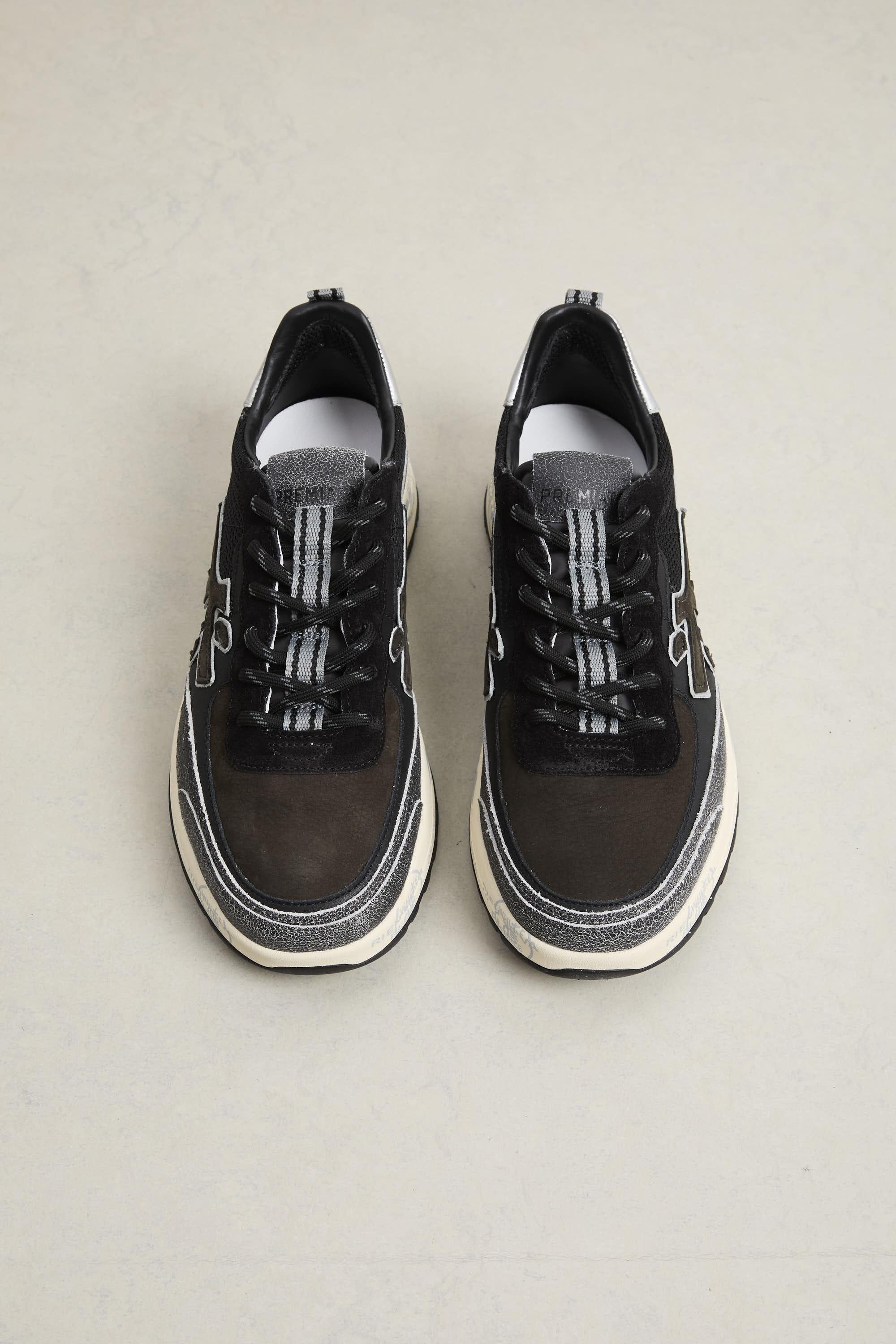 Questa sneakers la Nous si distingue per la sua silhouette pulita e i dettagli sofisticati. La tomaia in tonalità grigio scuro e nero, realizzata in suede e mesh, conferisce un aspetto raffinato e versatile. La suola in gomma ed EVA offre leggerezza e resistenza, mentre il logo laterale distintivo Premiata aggiunge un tocco di riconoscibilità al modello. Perfetta per l'inverno, si abbina a pantaloni in lana e un maglione a collo alto per un look caldo e raffinato, oppure a un cappotto lungo e jeans scuri per un outfit casual-chic. Ideale anche con pantaloni cargo in tonalità neutre e una giacca imbottita per un mood streetwear contemporaneo. Modello: Nous 7723 Calzata: regolare Colore: grigio scuro e nero Altezza suola: 3,5 cm Logo: badge laterale distintivo Premiata Materiali: tomaia in suede e mesh, fodera in pelle, suola in gomma ed EVA