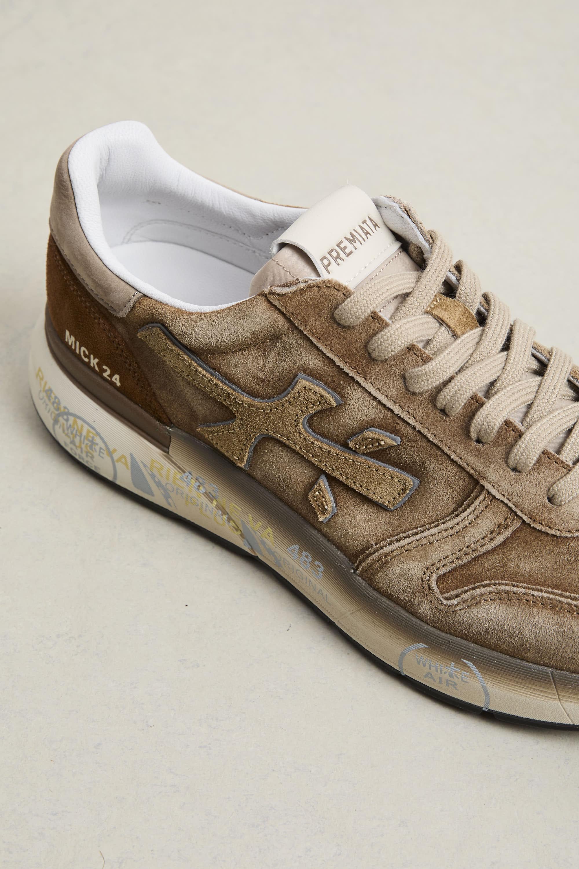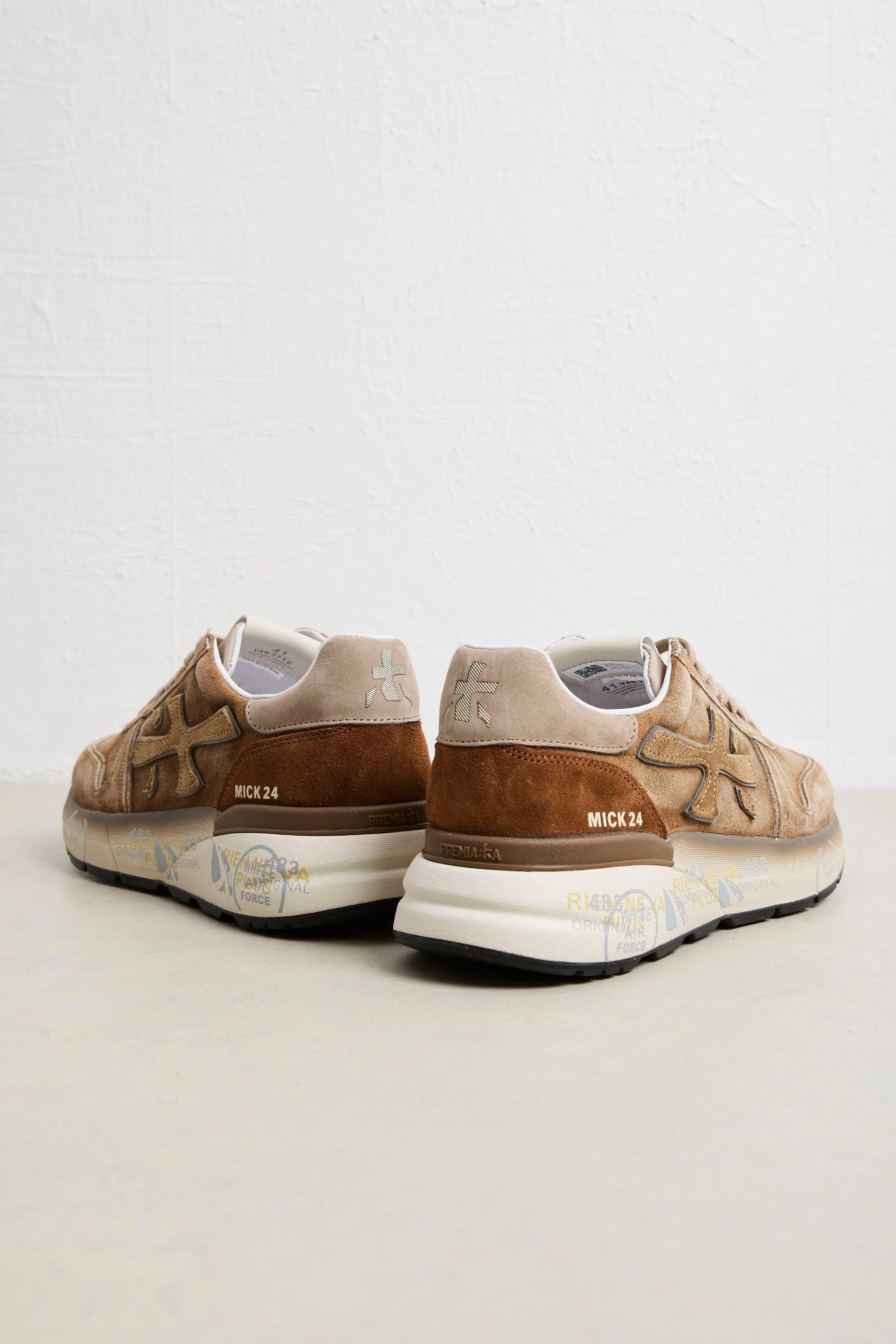 Questa Premiata Mick è la sneakers ideale per chi cerca un look urbano curato senza rinunciare al comfort. La combinazione di pelle scamosciata beige e dettagli in suede ruggine dona carattere e profondità al design, mentre la suola ammortizzata di 4,5 cm assicura sostegno per tutta la giornata. Perfetta per i look invernali, si abbina con cappotti doppiopetto in tonalità neutre, pantaloni in velluto a coste o jogger sartoriali, e completa l’outfit con maglioni over a collo alto o cardigan spessi per un mix elegante e contemporaneo. Modello: Mick 7712 Calzata: regolare Colore: beige con dettagli in suede ruggine Altezza suola: 4,5 cm Logo: branding laterale tono su tono Materiale: tomaia in pelle scamosciata e suede con la fodera in pelle e la suola in gomma