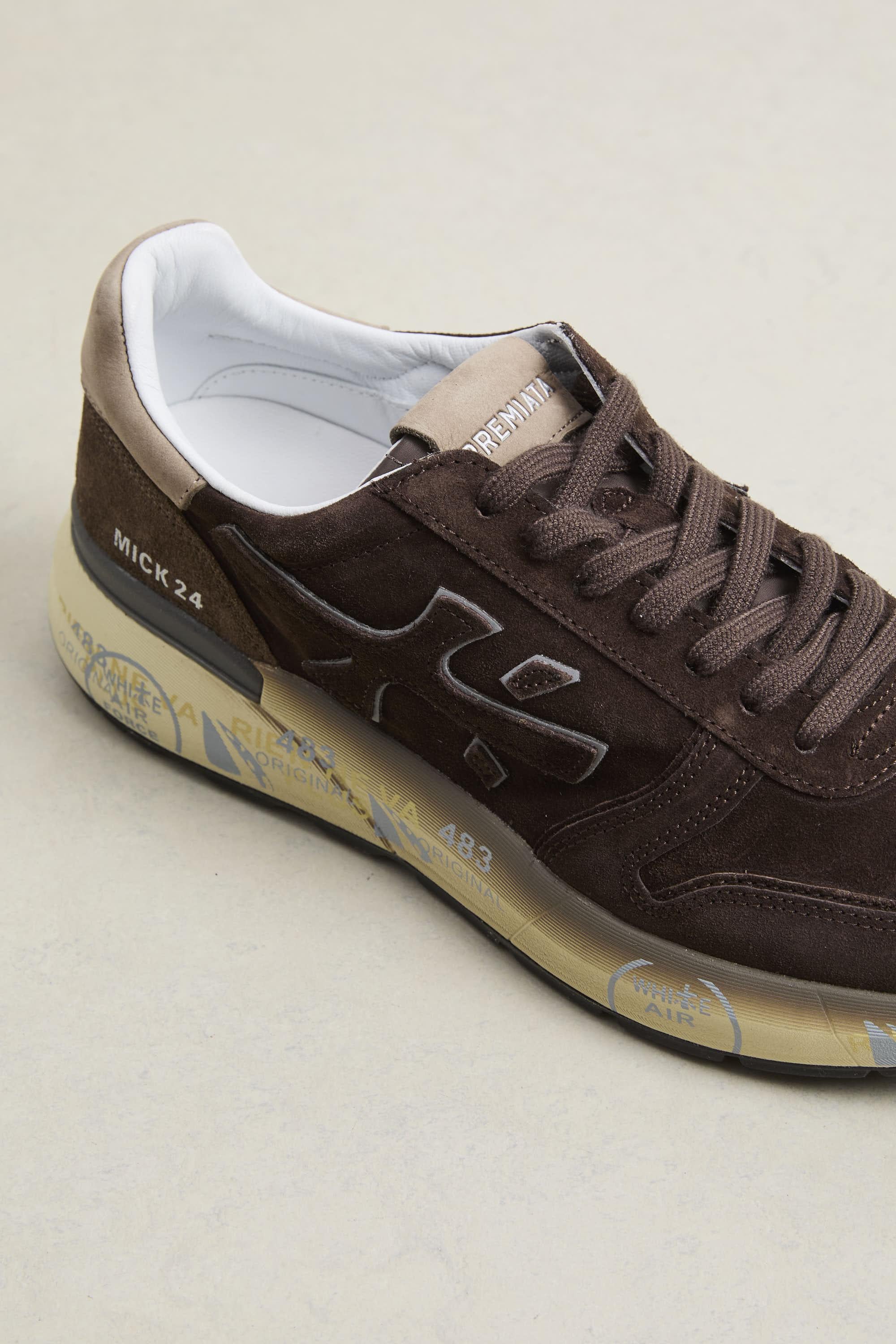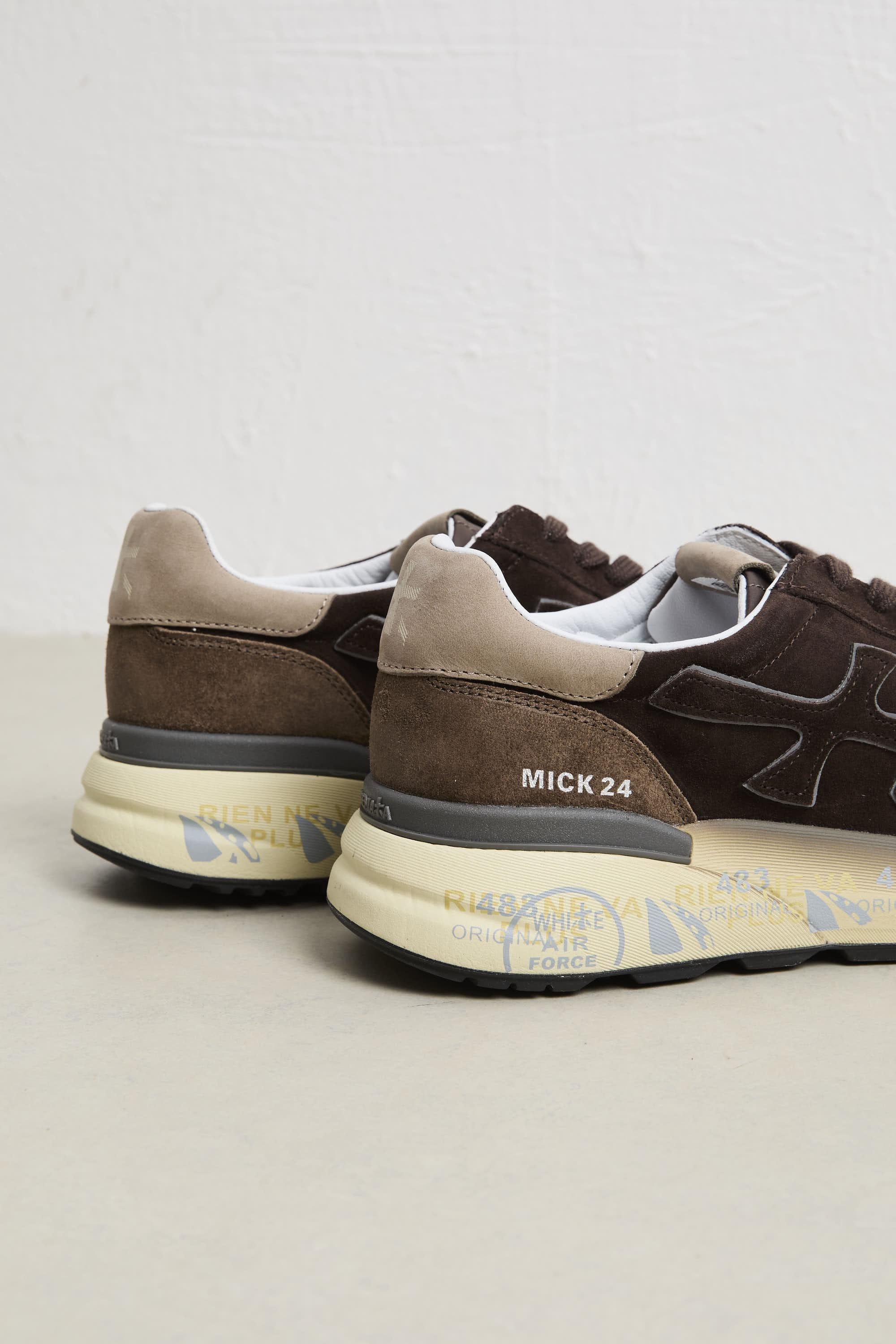 Stile sofisticato e urbano: Premiata Mick è la sneakers pensata per chi desidera un look contemporaneo senza rinunciare al comfort. La combinazione di pelle scamosciata marrone cioccolato e dettagli in suede beige crea un contrasto elegante e versatile, mentre la suola ammortizzata di 4,5 cm garantisce sostegno per tutto il giorno. Perfetta per i look invernali: abbinala a giacche in pelle o parka strutturati, pantaloni cargo o jogger sartoriali, e completa l’outfit con maglioni a collo alto o cardigan spessi per un mix di stile urbano e praticità. Modello: Mick 7898 Calzata: regolare Colore: marrone cioccolato con dettagli in suede beige Altezza suola: 4,5 cm Logo: branding laterale tono su tono Materiale: tomaia in pelle scamosciata e suede. Fodera in pelle. Suola in gomma, EVA e TPU