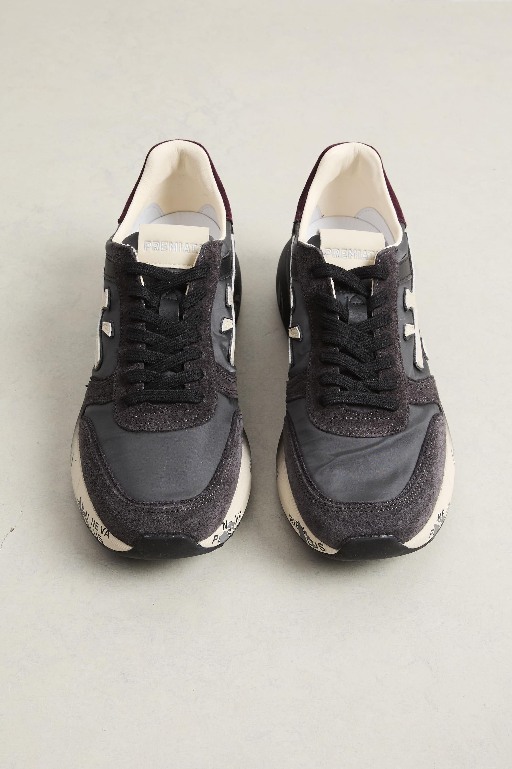 Questa Premiata Mick ha un stile urbano e contemporaneo. La sneakers ideale per chi cerca un look moderno e versatile senza rinunciare al comfort. La combinazione di pelle, suede e dettagli in nylon nero crea un contrasto elegante e dinamico, mentre la suola ammortizzata di 4,5 cm garantisce sostegno per tutta la giornata. Perfetta per i look invernali, si abbina a giacche in pelle o piumini strutturati, pantaloni cargo o jeans scuri, e completa l’outfit con maglioni a collo alto o cardigan spessi per un equilibrio tra stile urbano e praticità, rendendola perfetta sia per look casual metropolitani sia per abbinamenti più ricercati con cappotti in lana o blazer destrutturati. Modello: Mick 7719 Calzata: regolare Colore: nero con dettagli in nylon e pelle Altezza suola: 4,5 cm Logo: branding laterale tono su tono Materiale: tomaia in pelle e suede con inserti in nylon. Fodera in pelle e con la suola in gomma, EVA e TPU