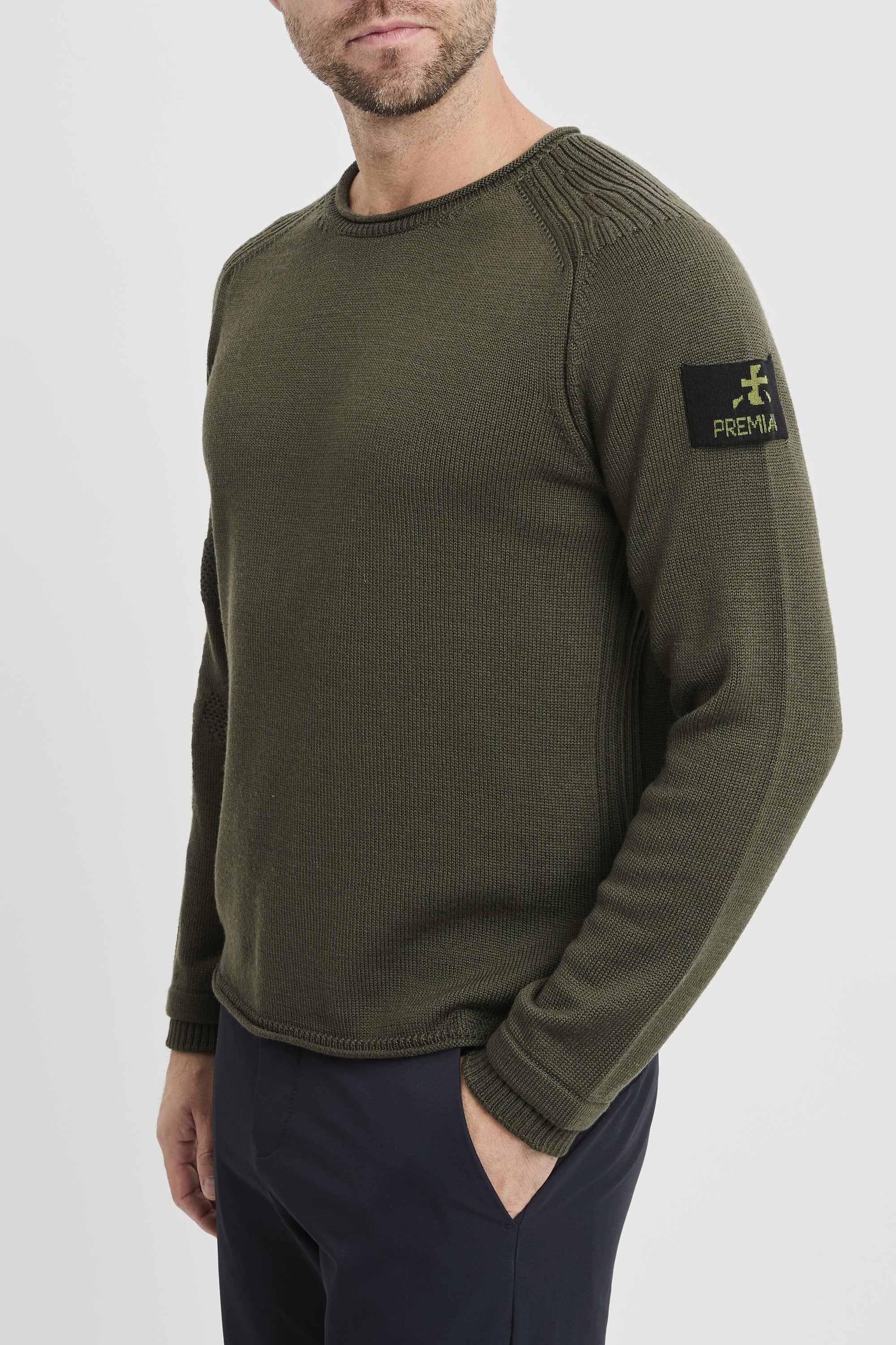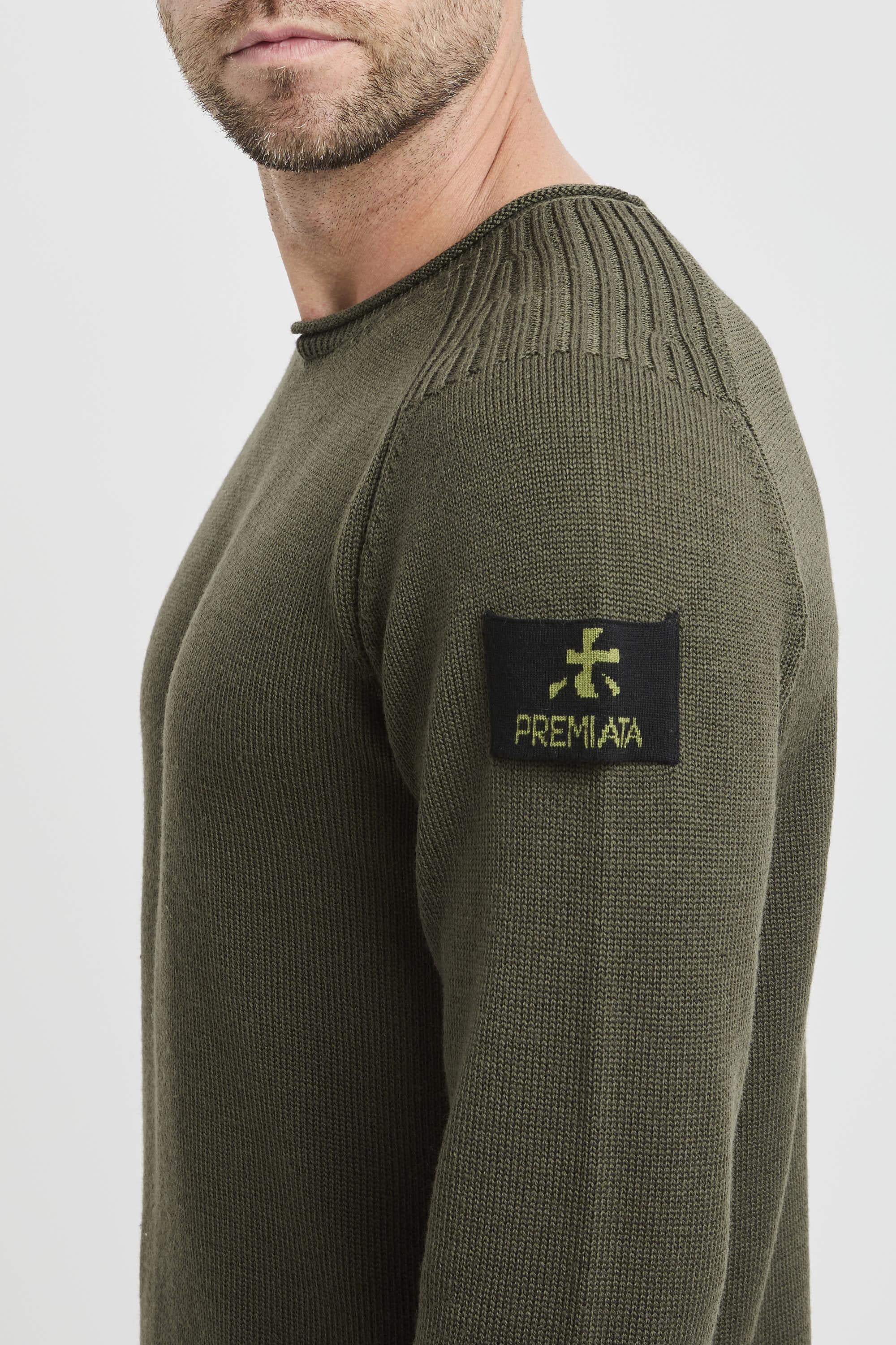 # Maglia in lana a girocollo Premiata.# Maxi logo ricamato a rilievo su manica destra.# Logo a patch ricamato in colore a contrasto e applicato su manica sinistra. # Composizione: 100% lana.