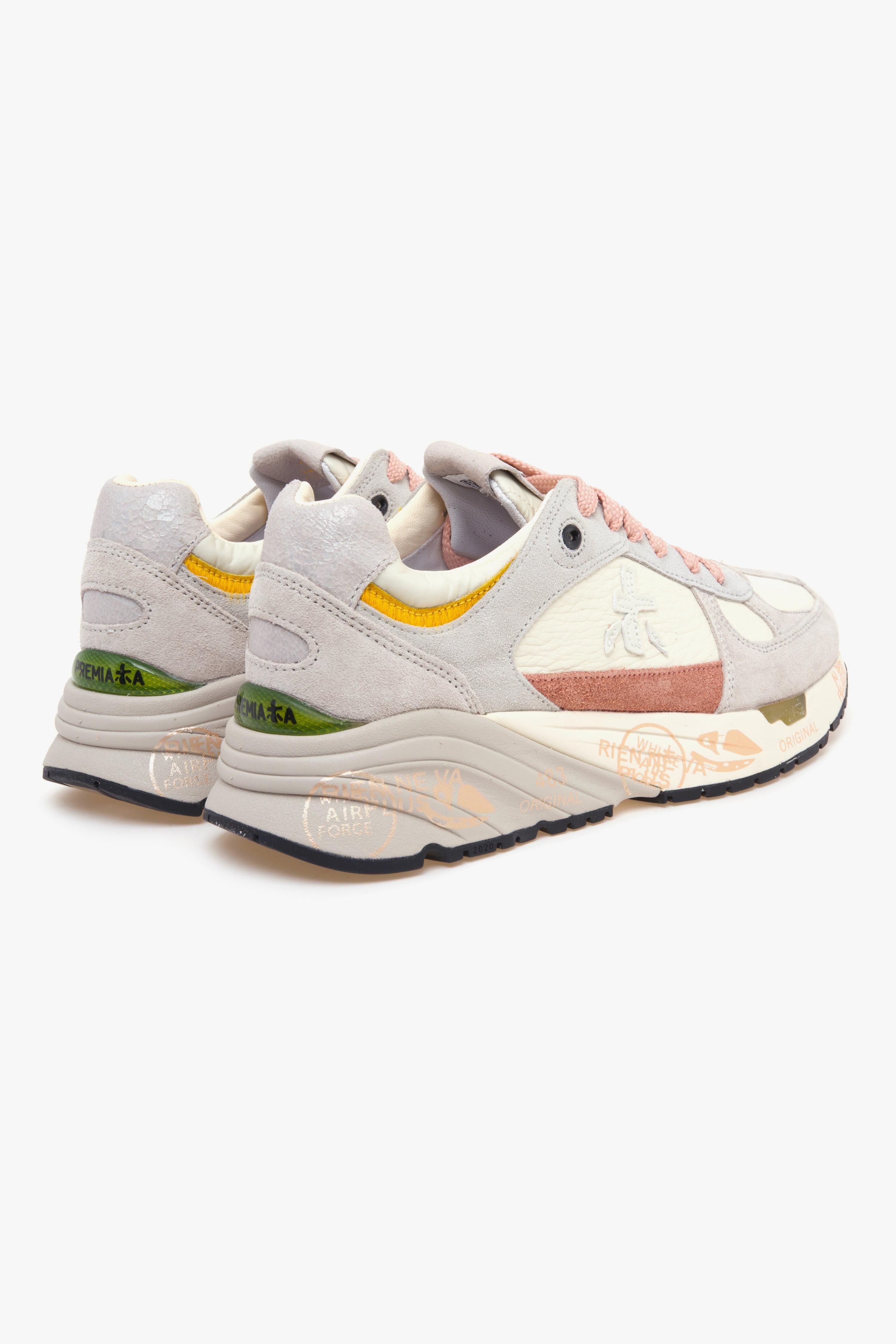 Ispirata allo stile iconico degli anni ’90, Premiata Mase rappresenta un perfetto connubio tra design vintage e materiali pregiati, lavorati artigianalmente per creare una calzatura casual-chic dal carattere unico. Realizzata interamente con materiali accuratamente selezionati in Italia, presenta una tomaia in camoscio e pelle con inserti a contrasto. Completa il look della scarpa un piccolo inserto in cavallino giallo applicato sul lato. La suola, leggera e flessibile, è in gomma soffice ed è caratterizzata dall'inconfondibile livrea brevettata, simbolo distintivo di tutti i modelli Premiata. Ideali per l’uso quotidiano, si abbinano con facilità a qualsiasi outfit, aggiungendo un tocco di stile senza rinunciare al comfort. # Tomaia in camoscio e tessuto. # Fodera in pelle. # Sottopiede estraibile in pelle. # Suola in gomma.