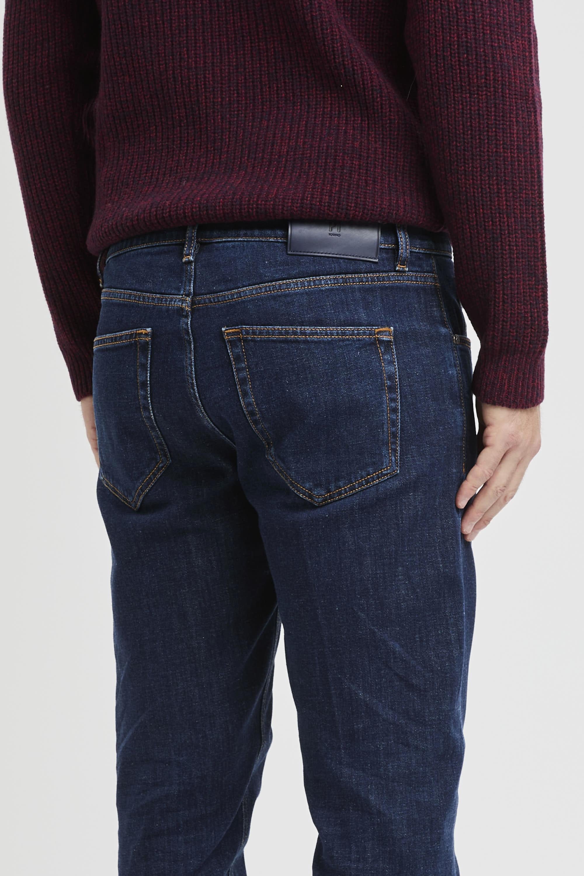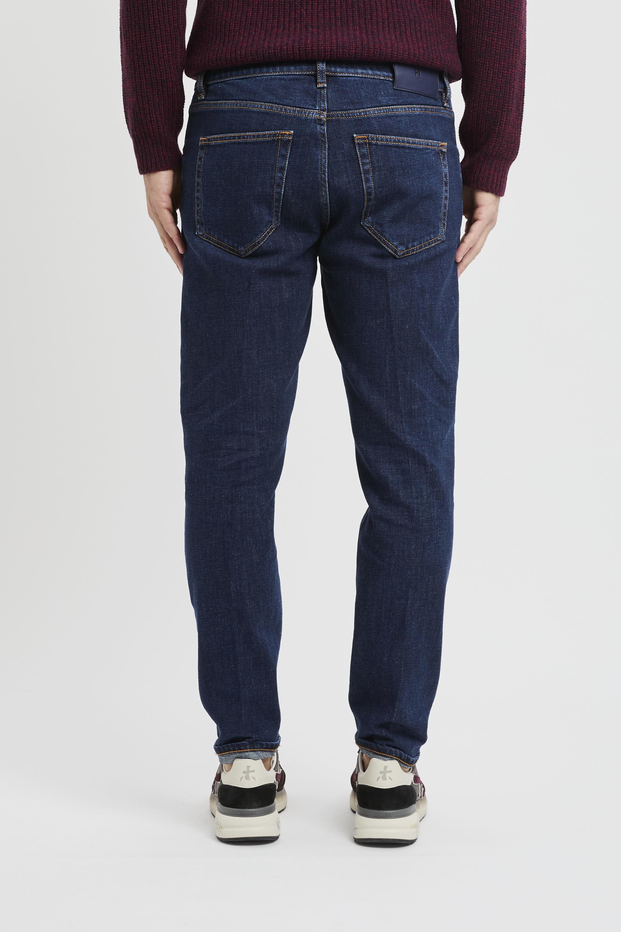 Equilibrio tra pulizia estetica e praticità quotidiana per i jeans PT in denim blu elasticizzato dal fit tapered. La tela da 12 once con lavaggio blu uniforme offre struttura e un aspetto ordinato che regge bene l’uso, mentre il 2% di elastan assicura libertà di movimento e comfort prolungato. La costruzione a cinque tasche e i dettagli firmati ne rafforzano il carattere essenziale, rendendoli una base affidabile per look formali rilassati o casual curati.Caratteristiche principali:# Vestibilità: tapered fit.# Tessuto: denim 12 oz con 2% elastan.# Colore: blu uniforme.# Struttura: 5 tasche con tasche posteriori a toppa.# Chiusura: frontale a bottoni.# Dettagli: bottoni personalizzati PT; salpa in pelle blu con logo PT Torino sul retro.# Made in Italy.