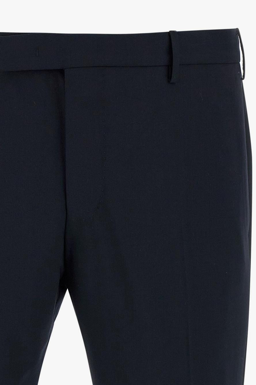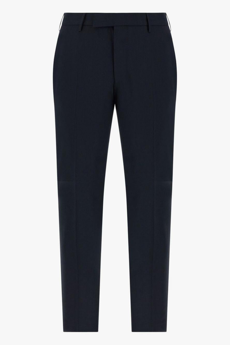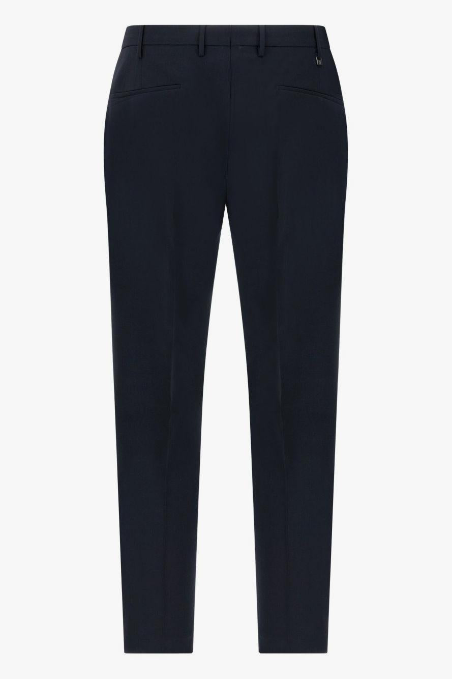 Il design in blu scuro è impreziosito da dettagli sartoriali come la piega stirata, la chiusura con gancio, zip e bottone, e le tasche a filetto sul retro, che conferiscono un tocco di raffinatezza e versatilità. Firmati PT Torino, sono perfetti per look business e occasioni formali.