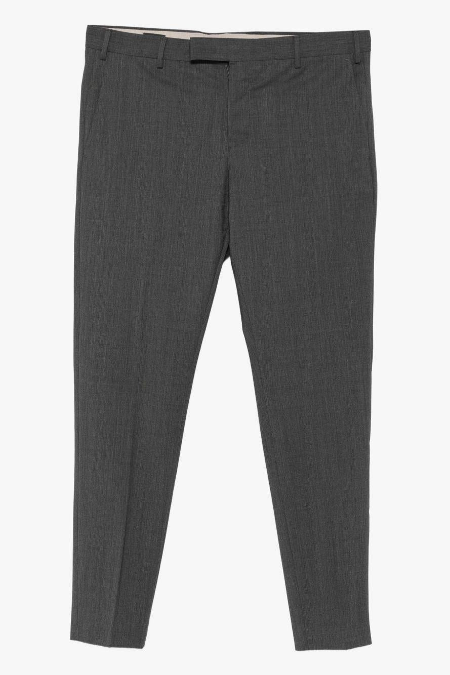 Proposti in una sofisticata tonalità grigio antracite, presentano chiusura con occhiello e zip, due tasche laterali a filetto e due tasche posteriori a filetto, dettagli che riflettono la cura sartoriale e l’essenza senza tempo del brand. Ideali per look business o occasioni formali, rappresentano un must-have del guardaroba maschile.