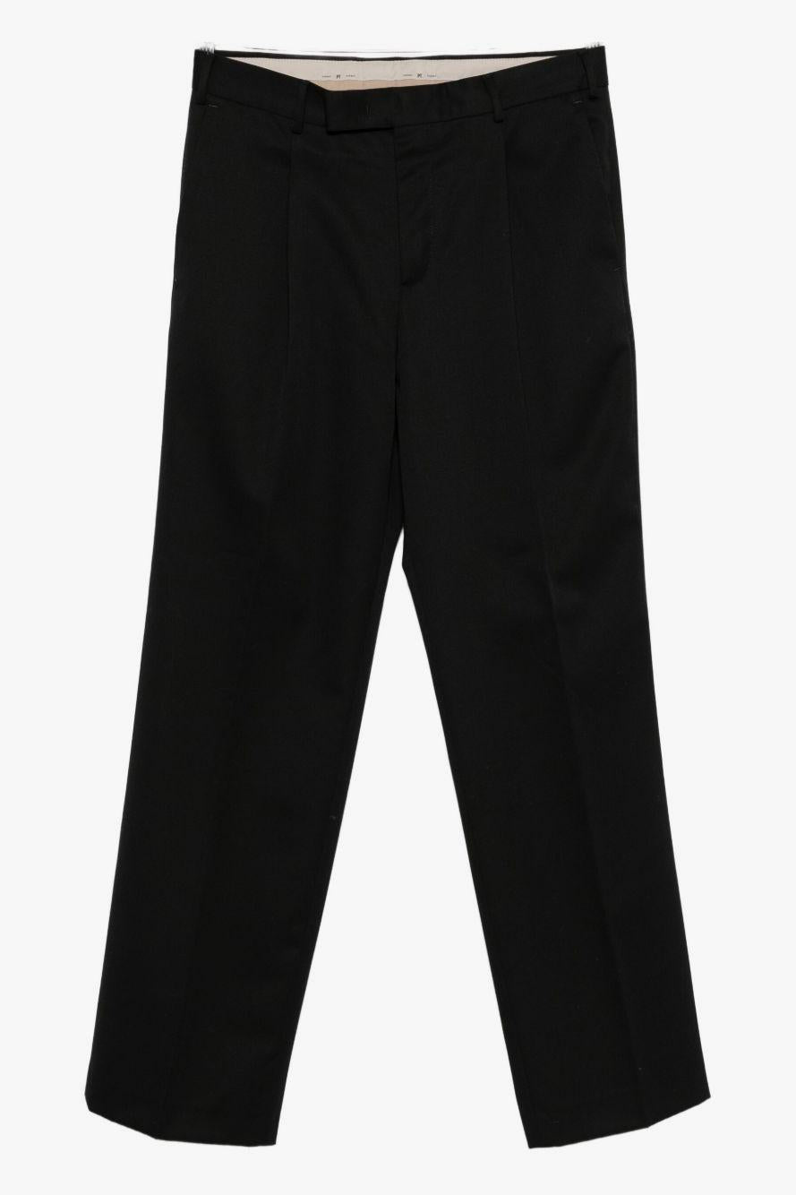 Proposti in nero, presentano pieghe frontali che donano slancio alla silhouette, una chiusura frontale nascosta che assicura una linea pulita e passanti per cintura per un tocco di praticità. Le tasche laterali interne aggiungono funzionalità senza compromettere l’eleganza, mentre la cura dei dettagli riflette la tradizione artigianale e lo stile raffinato tipico di PT Torino.