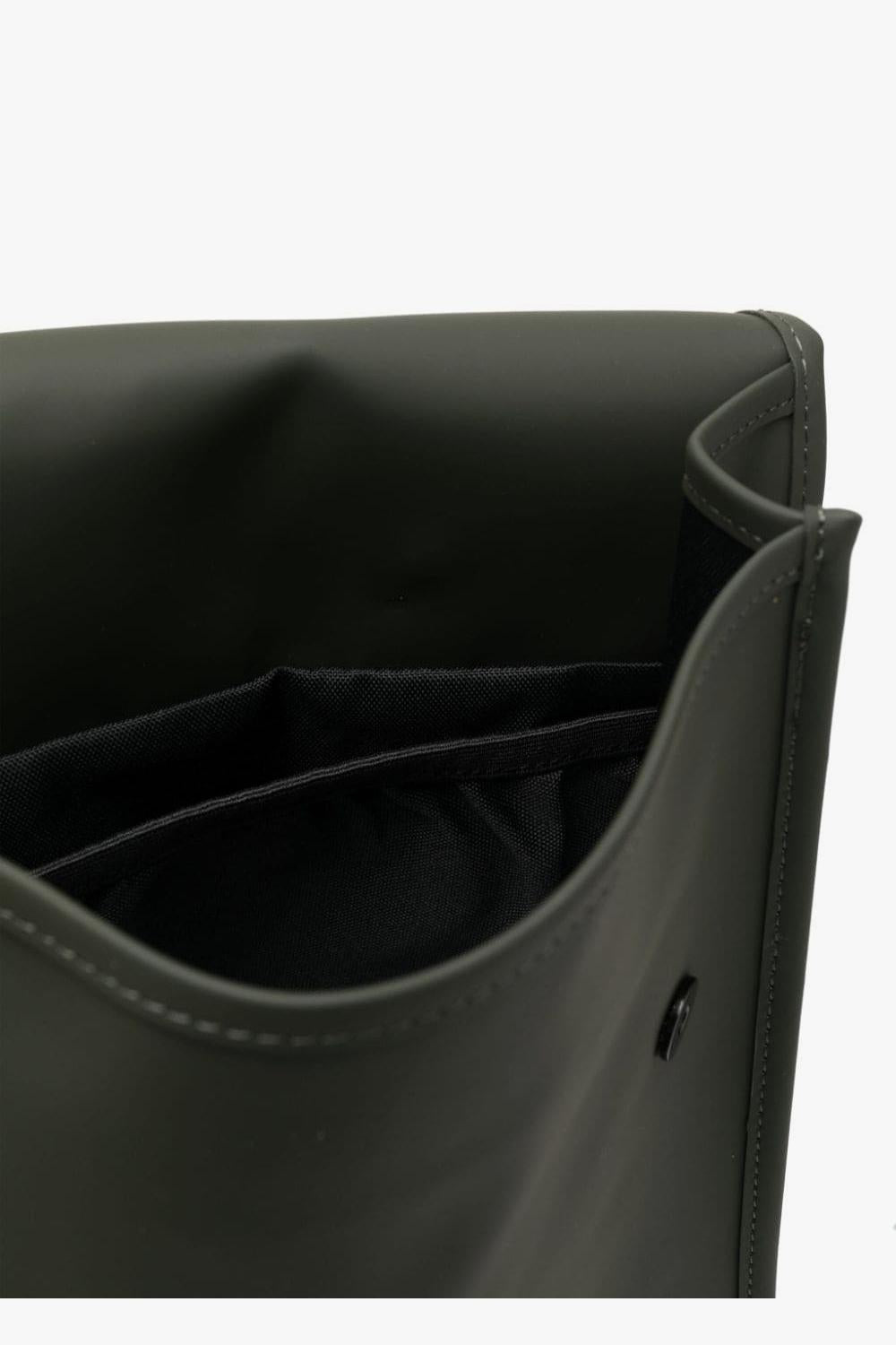 Proposto in tonalità cachi, presenta pattina superiore con chiusura a moschettone, due spallacci regolabili e una tasca posteriore con zip per gli oggetti essenziali. All’interno, uno scomparto unico con tasca per laptop garantisce ordine e praticità, mantenendo il look minimal e distintivo tipico di Rains.