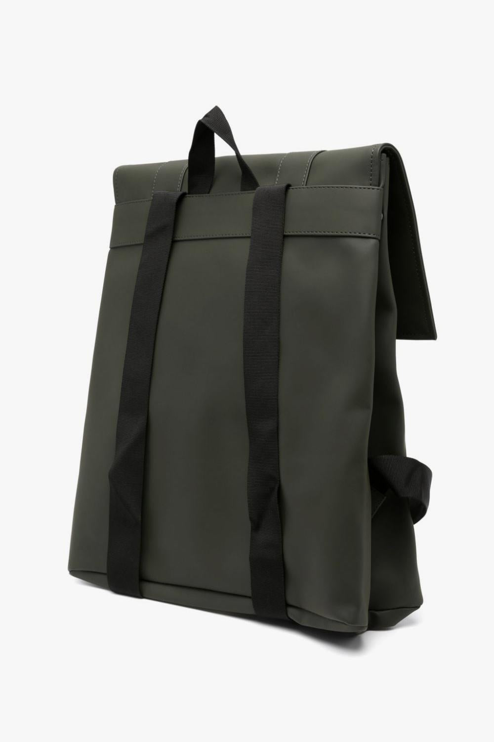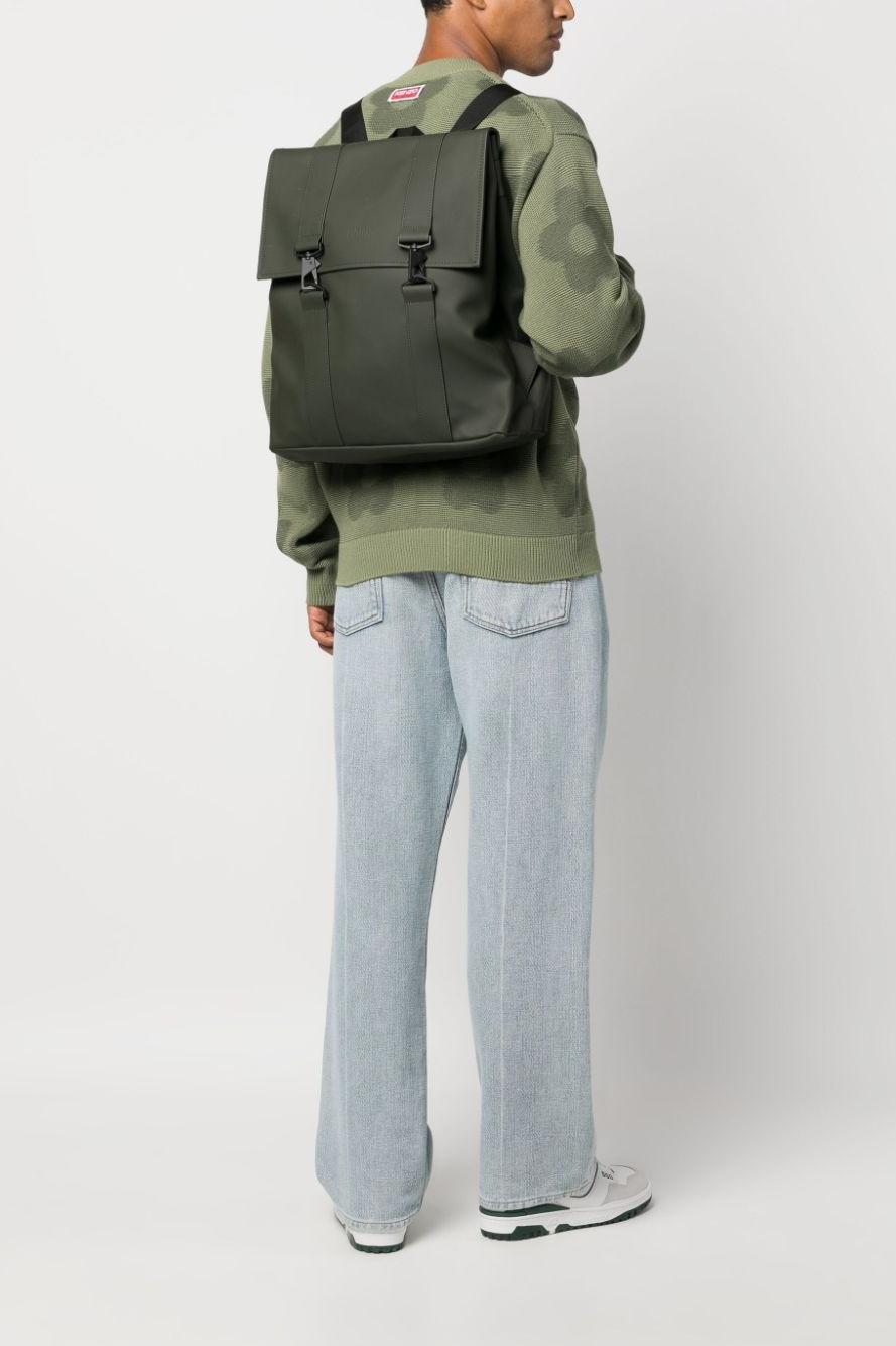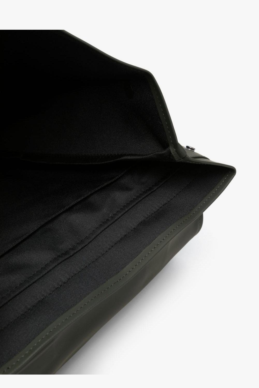 Proposto in verde scuro, presenta logo frontale inciso, manico superiore e due spalline piatte regolabili per un comfort ottimale. La pattina superiore con fibbia frontale custodisce uno scomparto unico ampio e pratico, ideale per laptop e oggetti personali.