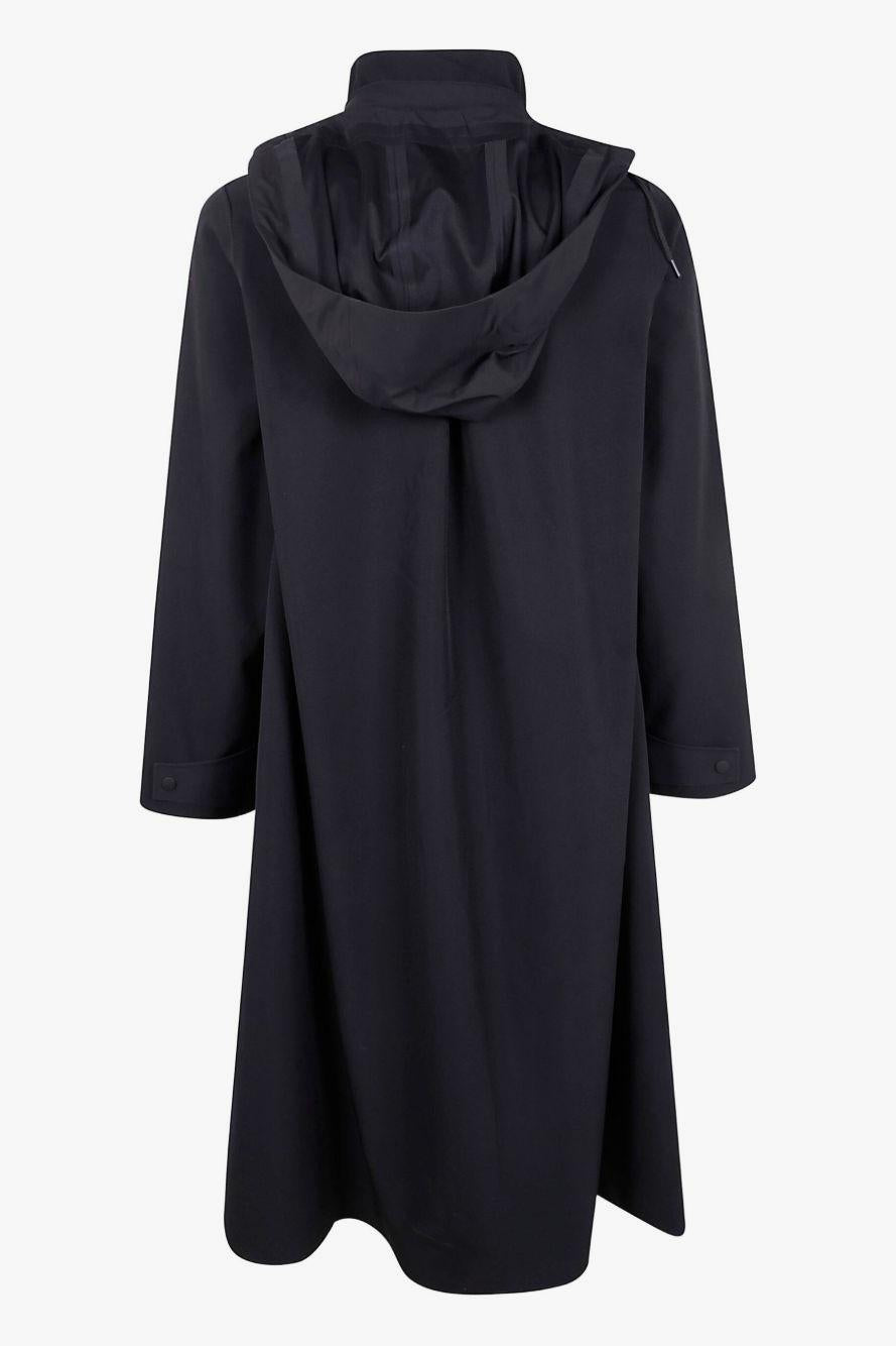 Proposto in nero, presenta una linea svasata che dona movimento e femminilità, un collo alto e un cappuccio regolabile per la massima protezione. La chiusura frontale con zip assicura praticità, mentre le tasche laterali aggiungono funzionalità al design minimalista tipico di Rains. Le maniche lunghe e la struttura morbida del tessuto garantiscono una vestibilità confortevole e raffinata.