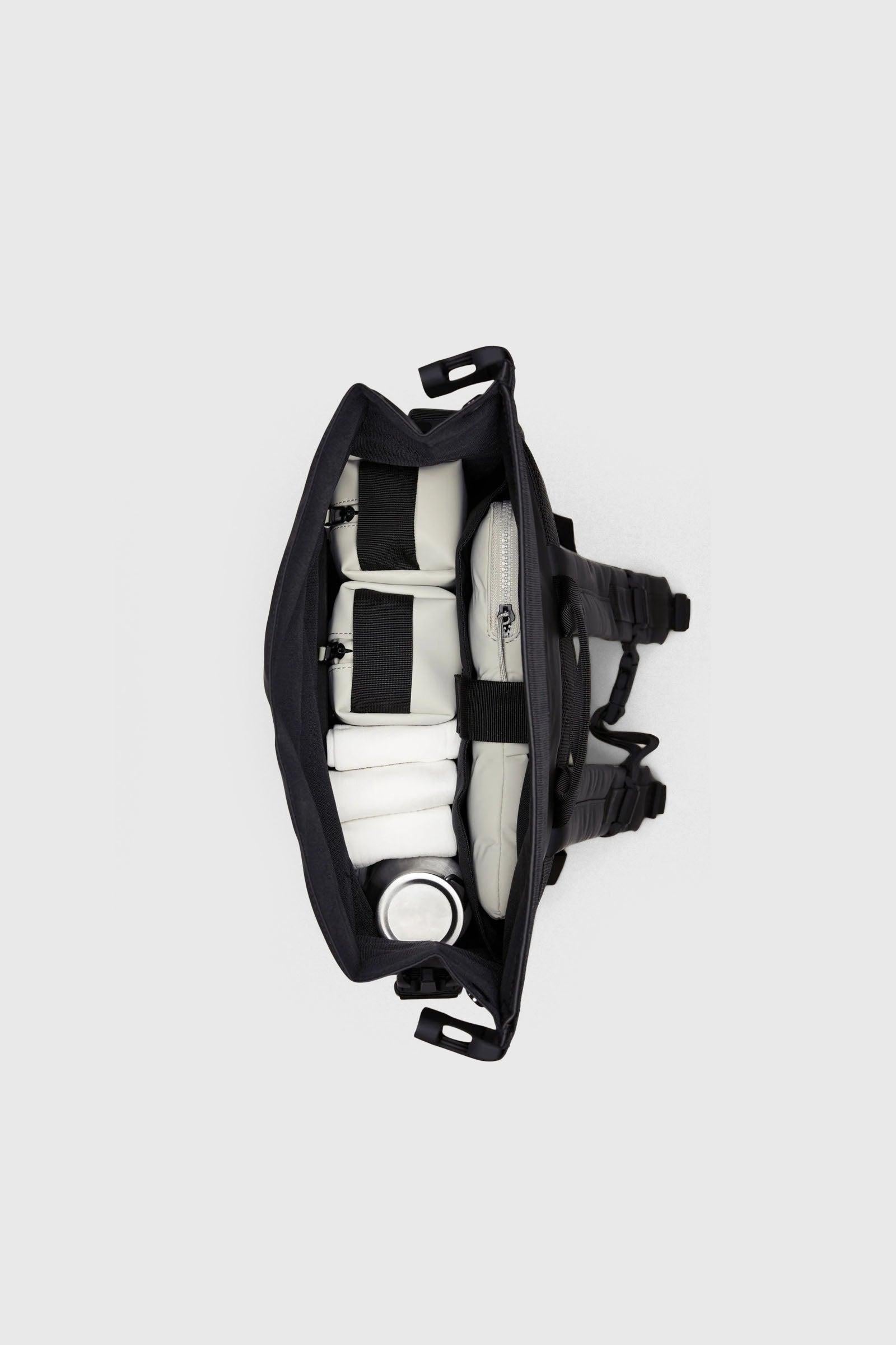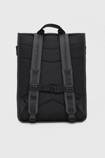 Il Trail Rolltop Rucksack è un punto di riferimento da città, sportivo e utilitaristico, perfetto per gli spostamenti in bicicletta o a piedi. Per proteggere gli effetti personali dalla pioggia, arrotola la parte superiore in modo stretto fissandolo per mezzo del moschettone con il logo del marchio. Lo zaino presenta inoltre una tasca interna imbottita per il computer portatile, una tasca frontale con cerniera e un pannello posteriore imbottito. Il design è rifinito con una fascia toracica chiusa da una fibbia, per una vestibilità sicura a prova di pedalata.Il Trail Rolltop Rucksack è realizzato in tessuto PU impermeabile firmato Rains, progettato per essere robusto, resistente e piacevole al tatto.Dimensioni: Alt. 47 cm x Lungh. 36 cm x Largh. 13 cmCapacità: 19LSKU: 14320BLACK/SS25