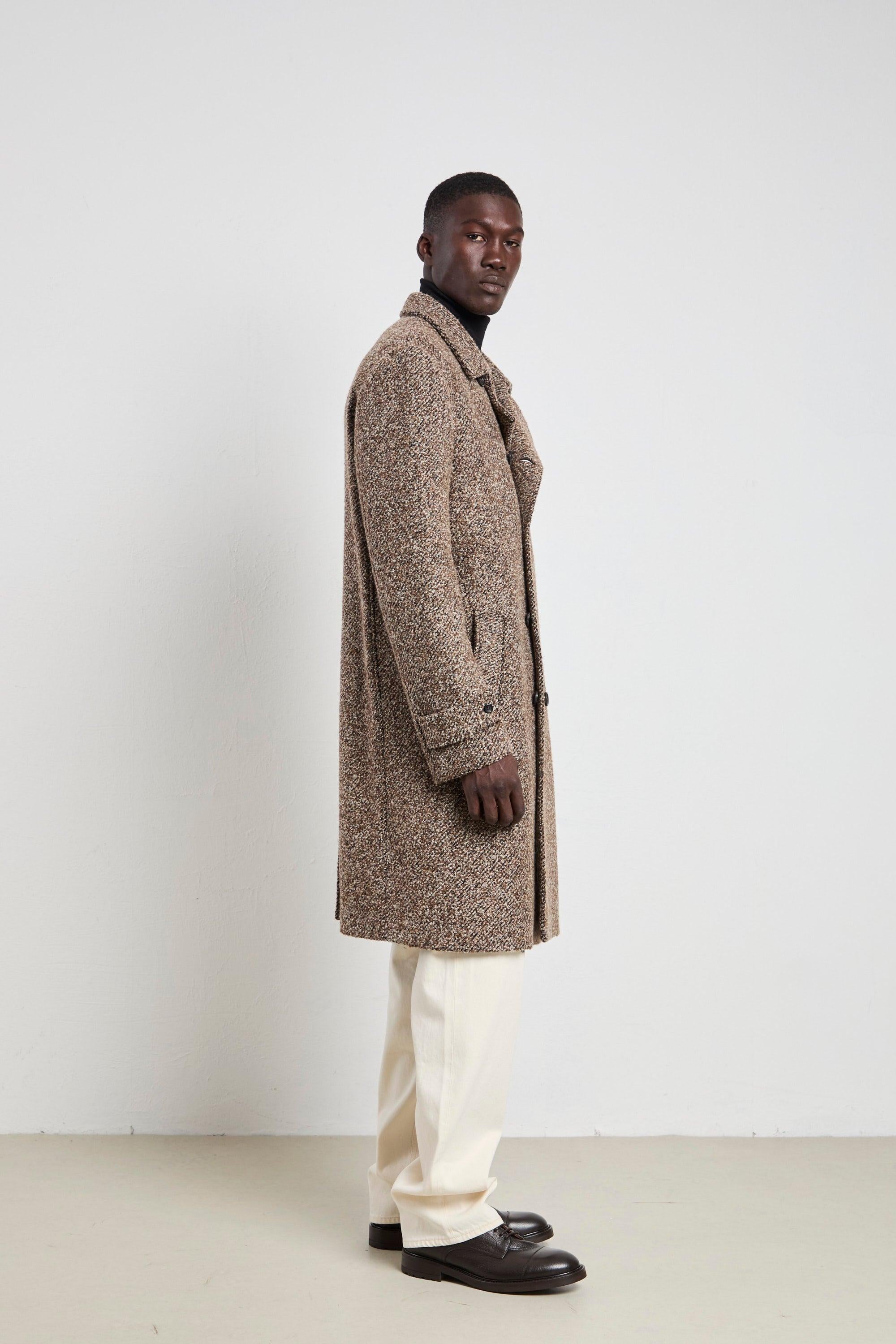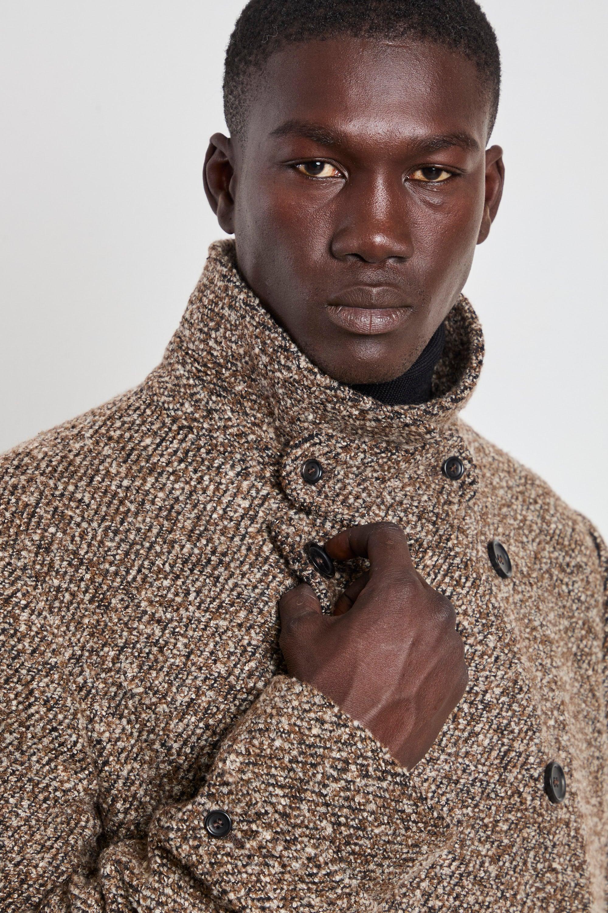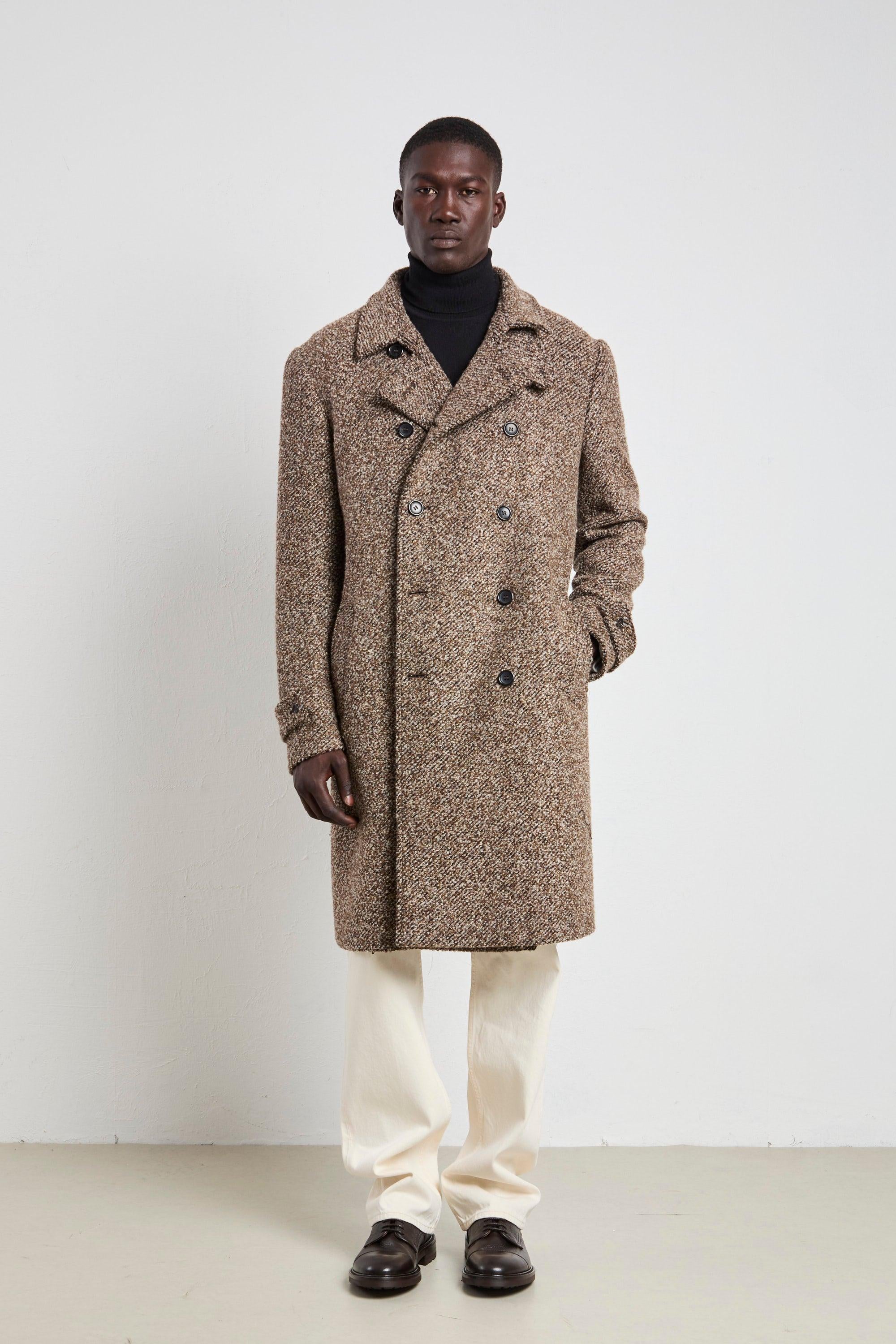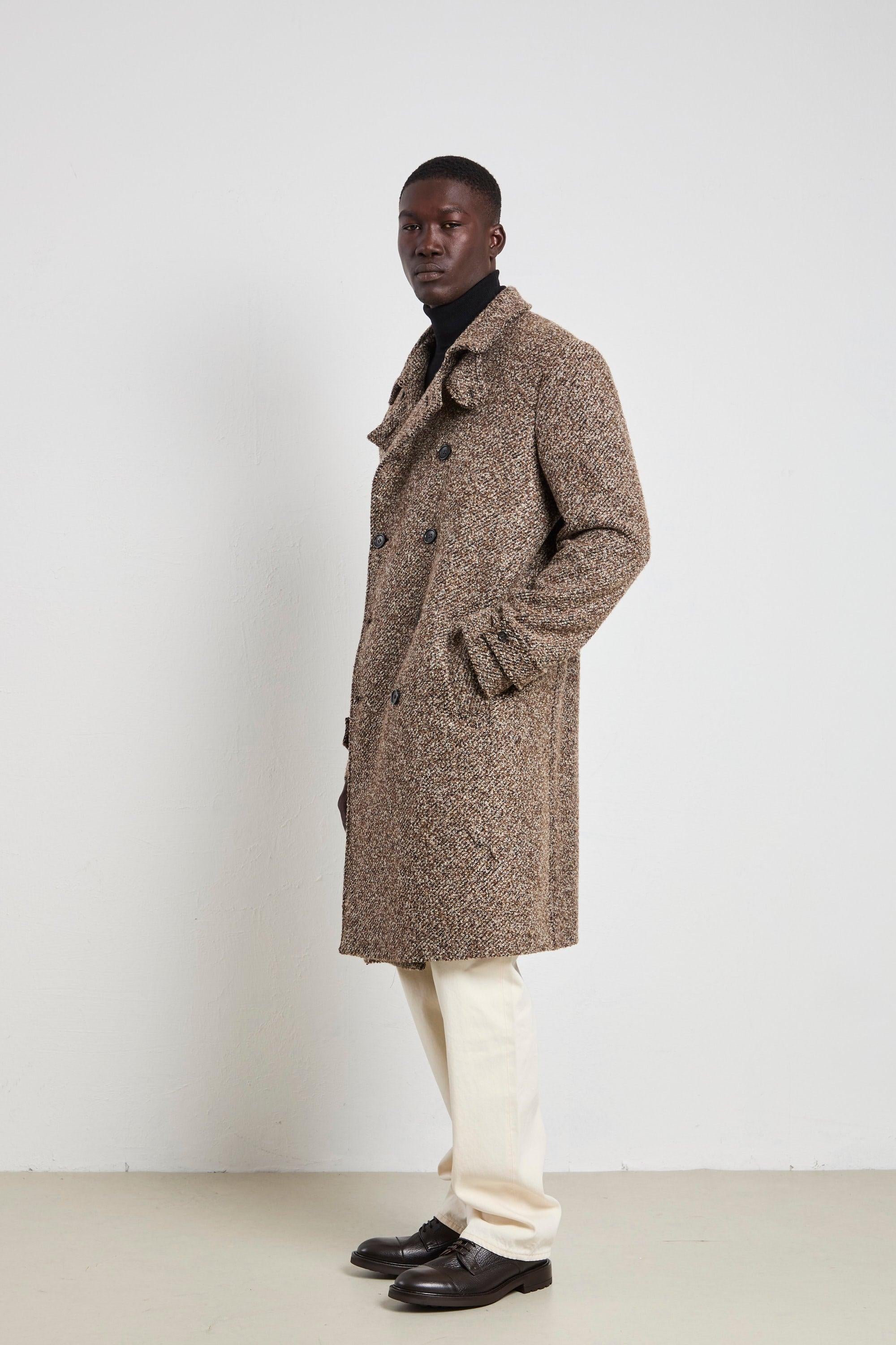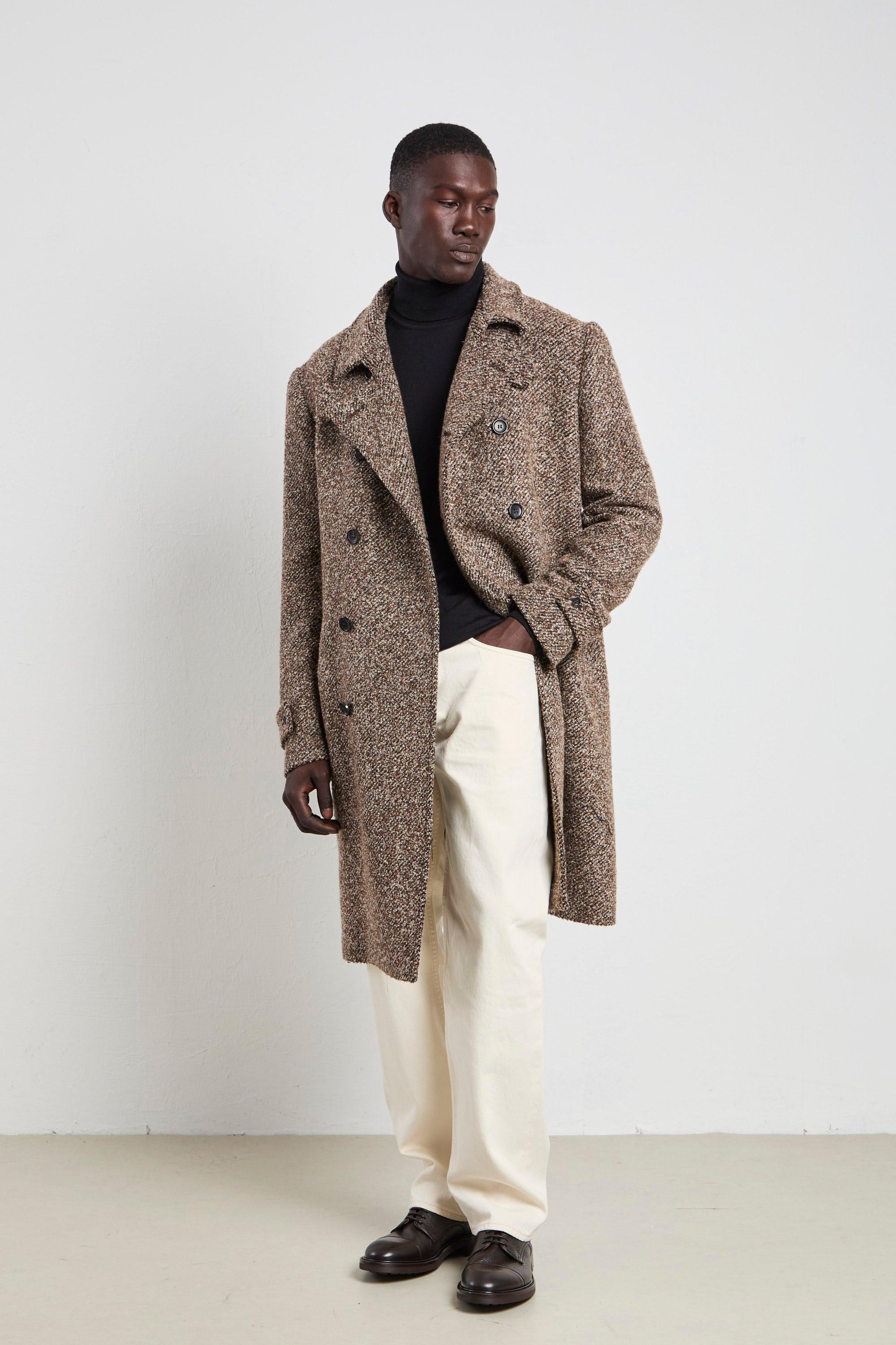 Il cappotto doppiopetto mouliné Reveres è il perfetto equilibrio tra eleganza e comfort. Con il suo taglio classico e il tessuto caldo, morbido e avvolgente, è l'ideale per affrontare le giornate fredde con stile. Indossalo sopra un maglione a collo alto e pantaloni grigi per un look sofisticato, oppure con una tmaglia basic e sneakers per un abbinamento più casual ma sempre raffinato. Un capo versatile e senza tempo, che si adatta ad ogni occasione. Modello: Cappotto doppiopetto mouliné foderato, due tasche interne e esterne, spacco centrale Vestibilità: Regolare Composizione: 55% poliestere, 45% poliammide Taglia indossata: 52 Colore: Sale e pepe marrone Made in Italy Logo discreto sulla parte interna