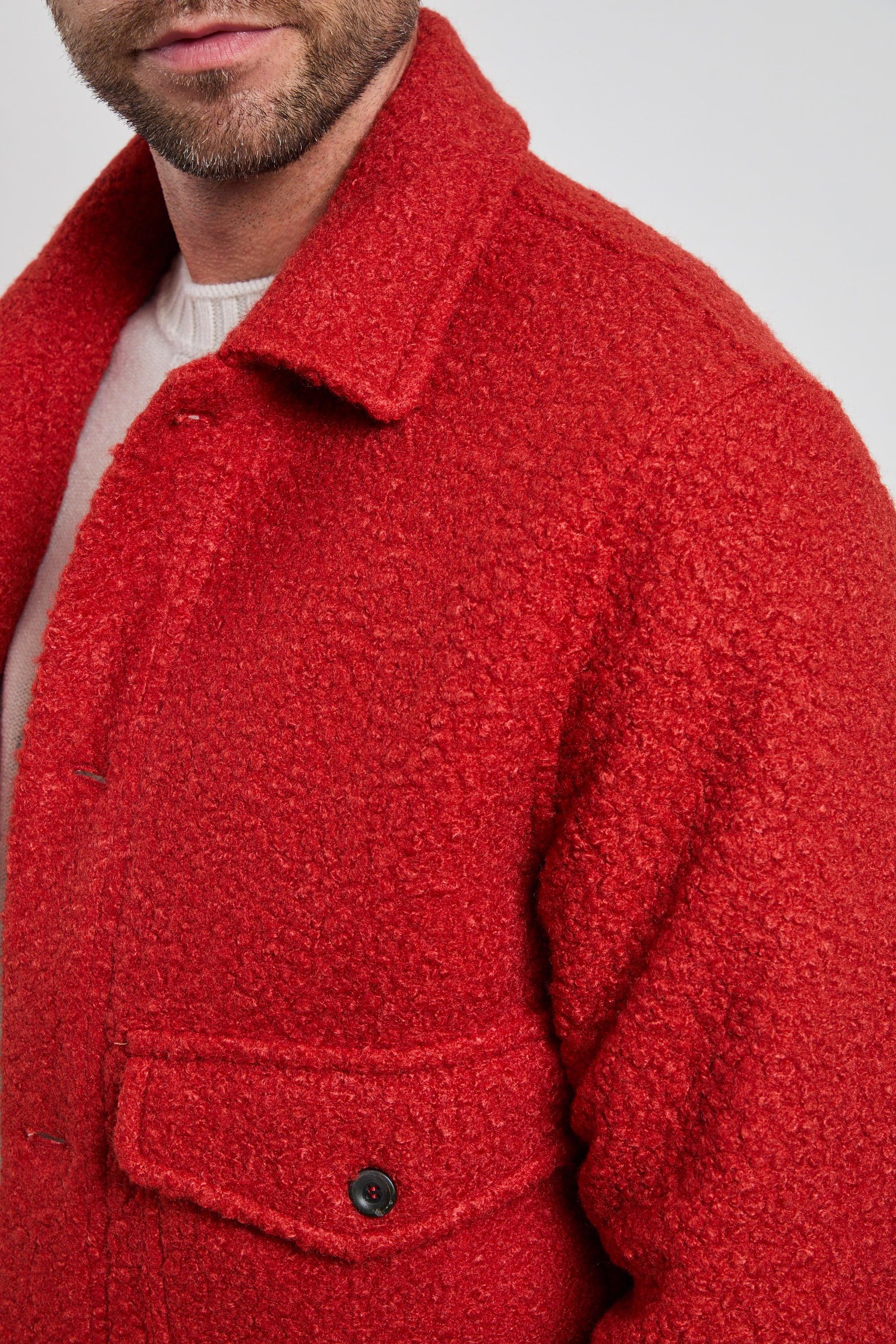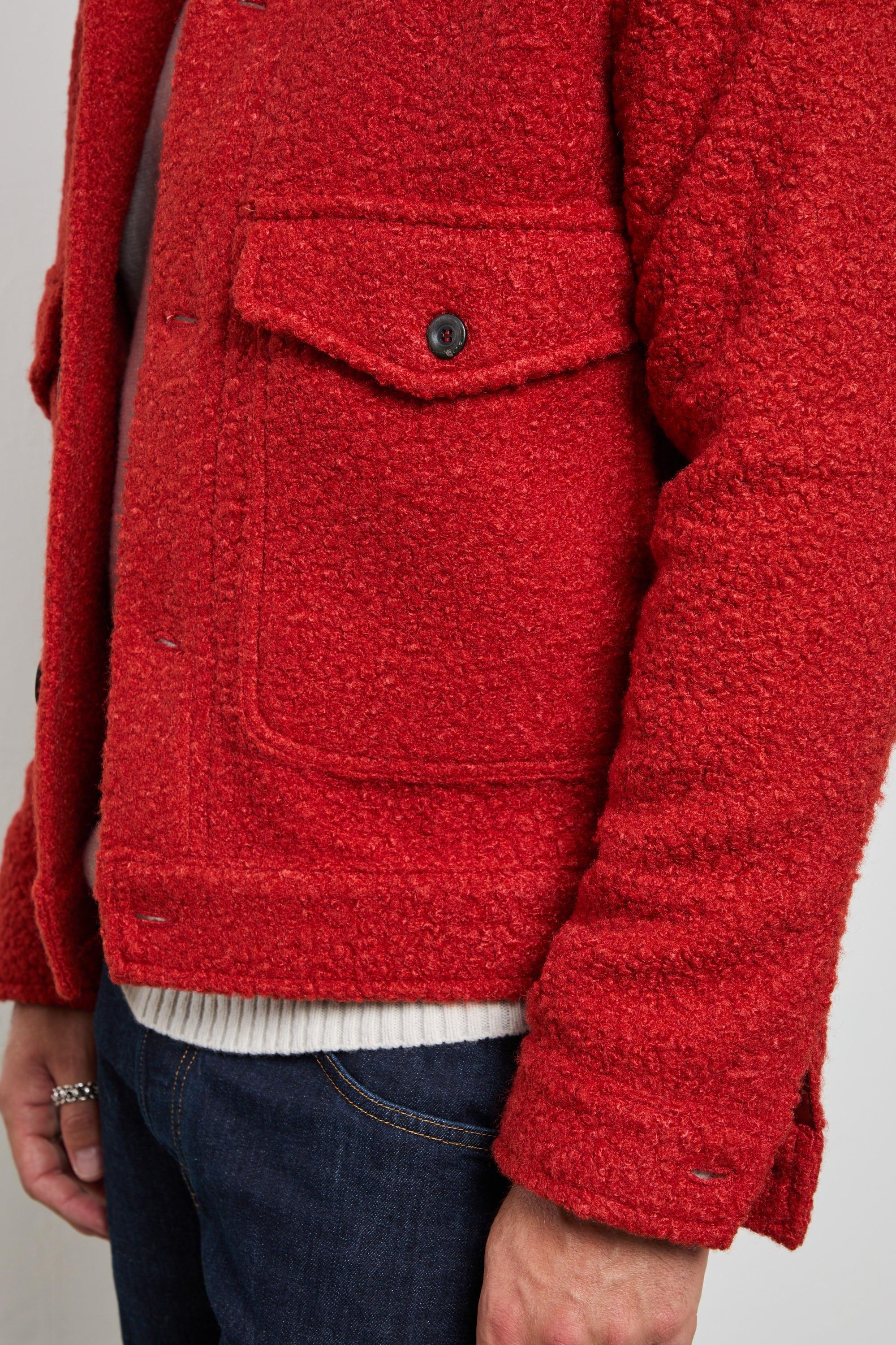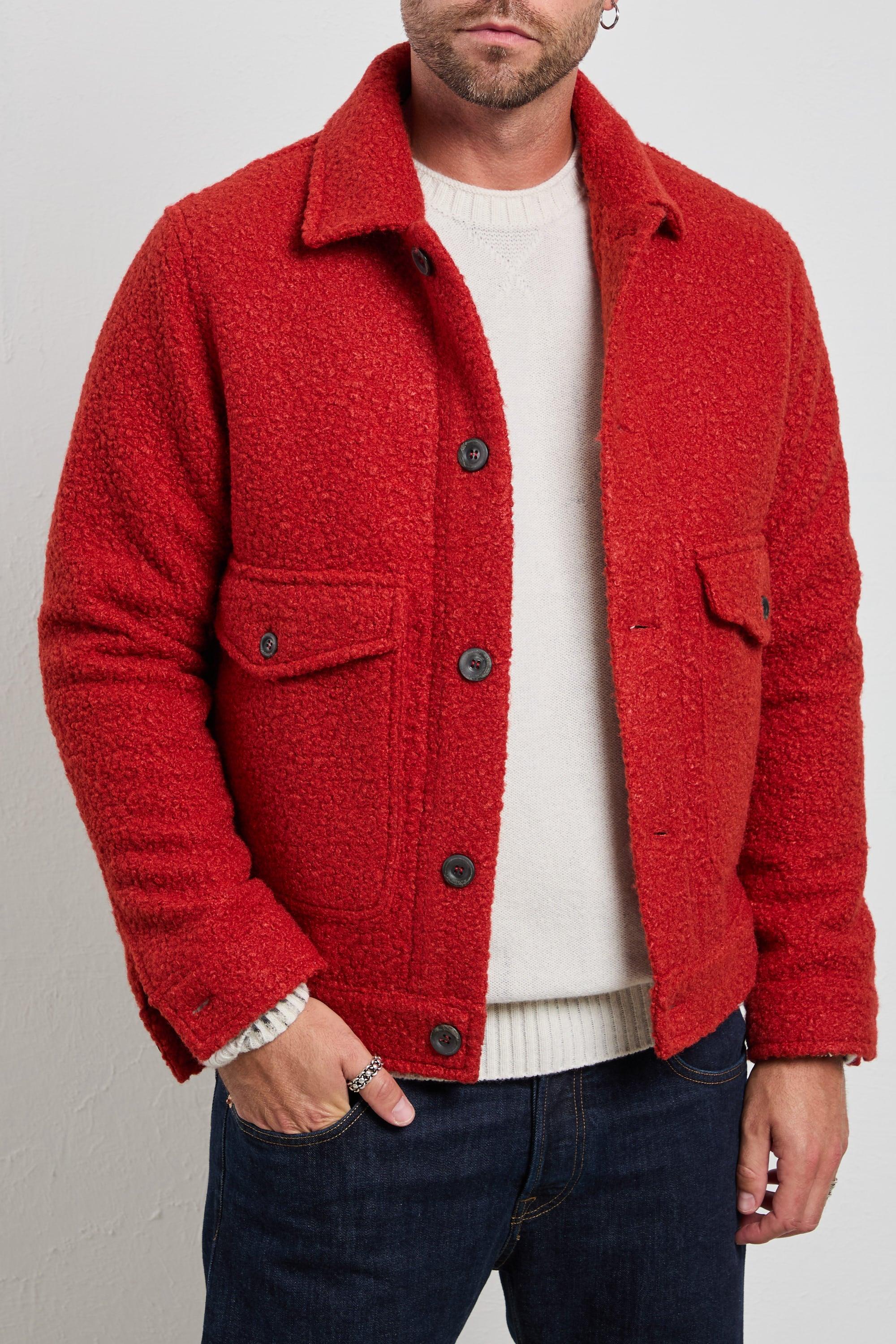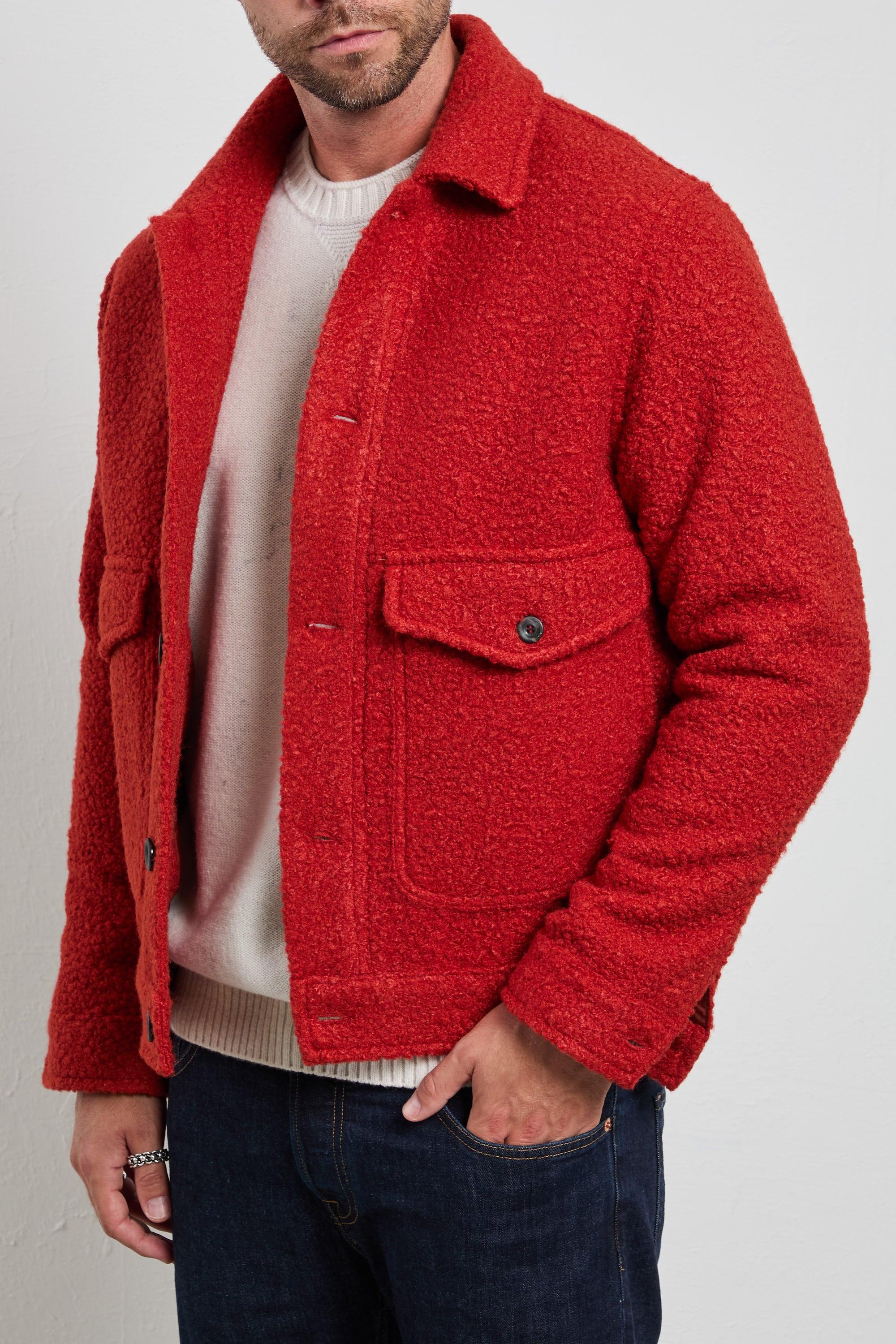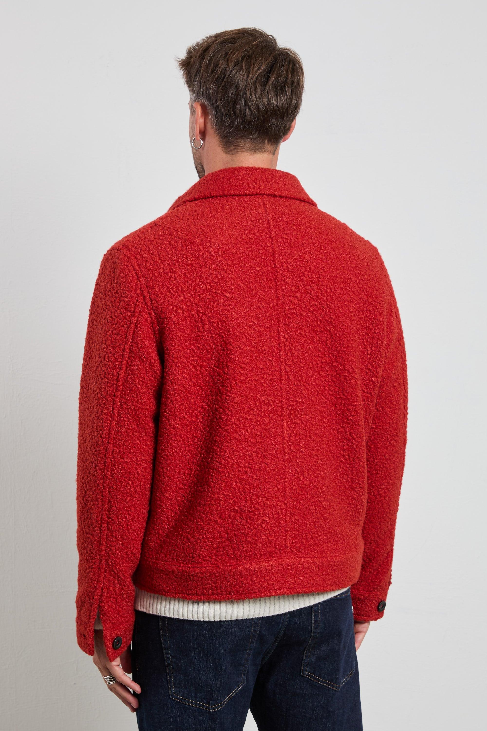 Giacca overshirt in tessuto bouclé foderato, dal carattere deciso e contemporaneo. La texture corposa e morbida la rende perfetta per la stagione fredda, mentre il taglio regolare garantisce comfort e stile. Da portare con denim scuro e stivaletti per un look casual sofisticato, o sopra un dolcevita neutro per un’eleganza metropolitana. Modello: overshirt in tessuto bouclé con bottoni e tasche applicate Vestibilità: regular, strutturata e confortevole Vita: fondo dritto che segue la linea naturale del corpo Composizione: tessuto bouclé medio-peso, calda e morbida al tatto Loghi: assenti, design pulito ed essenziale Colore: rosso coccio, intenso e deciso