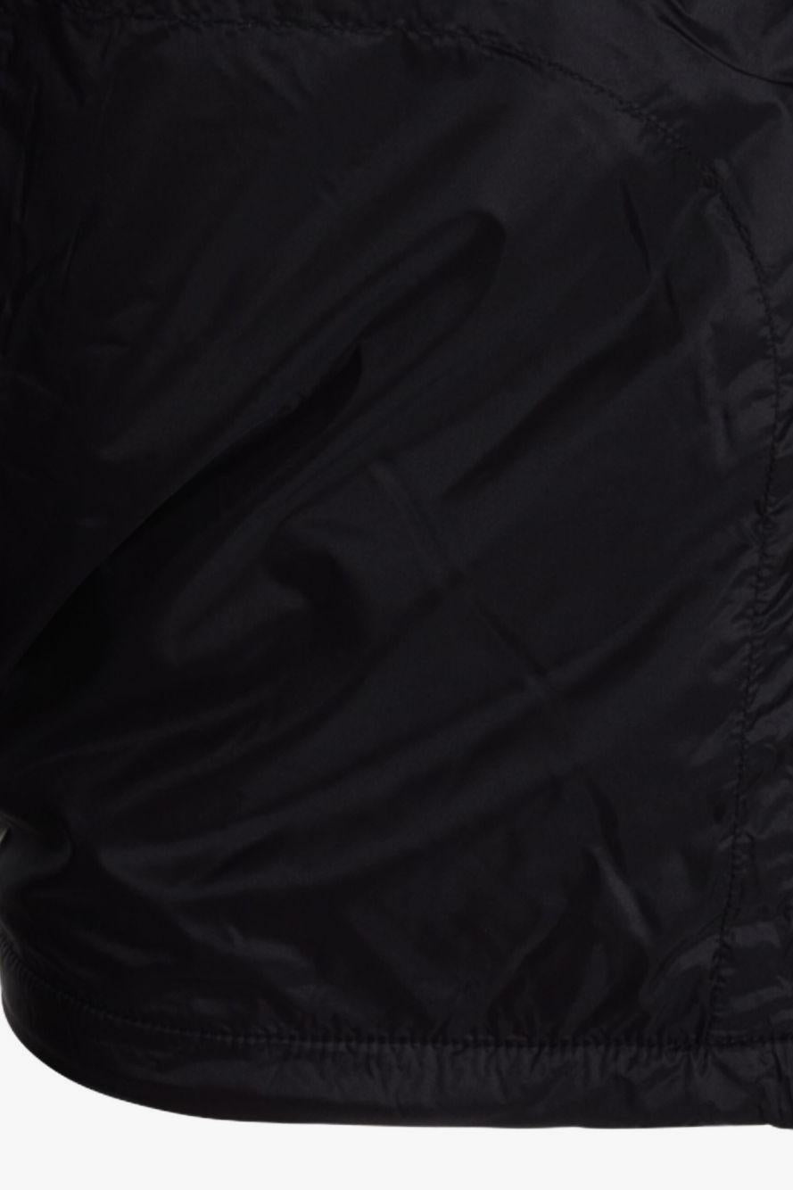 Il colore nero, iconico e immancabile nel linguaggio stilistico di Rick Owens, enfatizza le linee pulite del modello. Il cappuccio, la chiusura con zip e le maniche lunghe aggiungono praticità e protezione, mentre l’orlo elasticizzato garantisce una vestibilità più aderente e un look strutturato. L’insieme crea una silhouette urban, versatile e coerente con lo stile DRKSHDW.