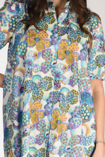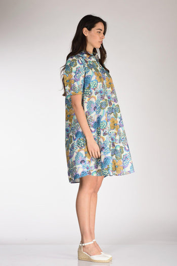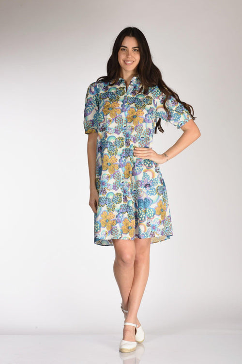 Descrizione: Eleganza e freschezza si fondono nell'Abito Chemisier Fintal di Robert Friedman, perfetto per la stagione calda. Con la sua affascinante stampa floreale multicolore, questo abito è una celebrazione della femminilità e della comodità. Il colletto è arrotondato e la manica al gomito termina con un raffinato polsino ad un bottone, aggiungendo un tocco di sofisticatezza al design.