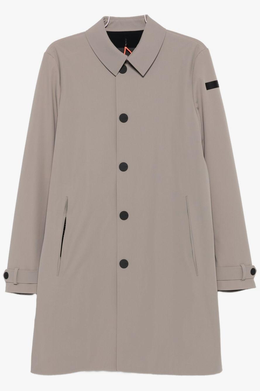 Proposto in beige, presenta colletto classico a punta, chiusura frontale con bottoni e tasche laterali a filetto. I polsini con bottoni e il taglio pulito donano al capo un’eleganza senza tempo, ideale per affrontare la stagione con funzionalità e raffinatezza.