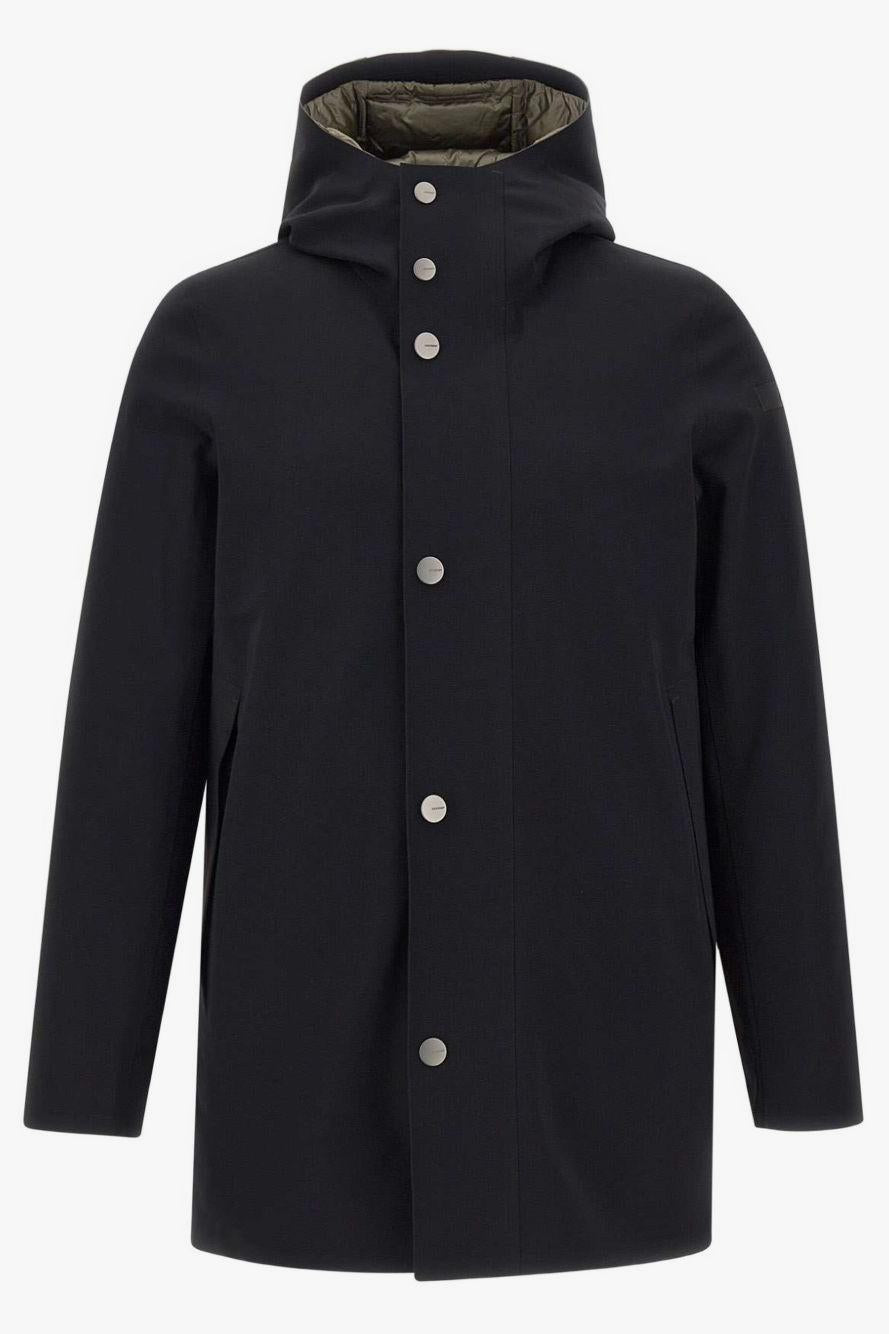 Proposto in nero, presenta cappuccio integrato, chiusura frontale con bottoni a pressione e tasche a filetto, per un look pulito ed essenziale. Il taglio moderno e i materiali performanti riflettono la cura sartoriale e la tecnologia esclusiva di RRD, ideale per affrontare la stagione fredda con stile.