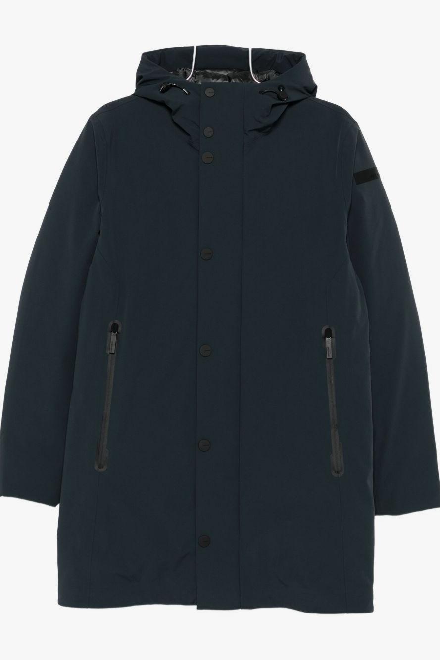 Proposta in blu, presenta cappuccio integrato, chiusura frontale con bottoni e dettaglio con zip e maniche lunghe, per una vestibilità comoda e funzionale. Il taglio pulito e la costruzione sartoriale riflettono l’eccellenza tecnica e stilistica di RRD, ideale per chi cerca un outerwear elegante e performante.