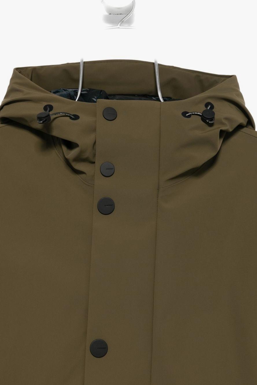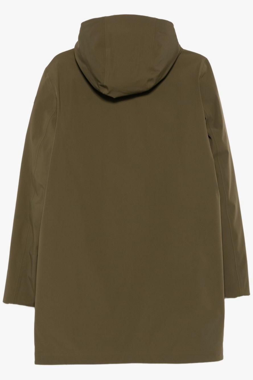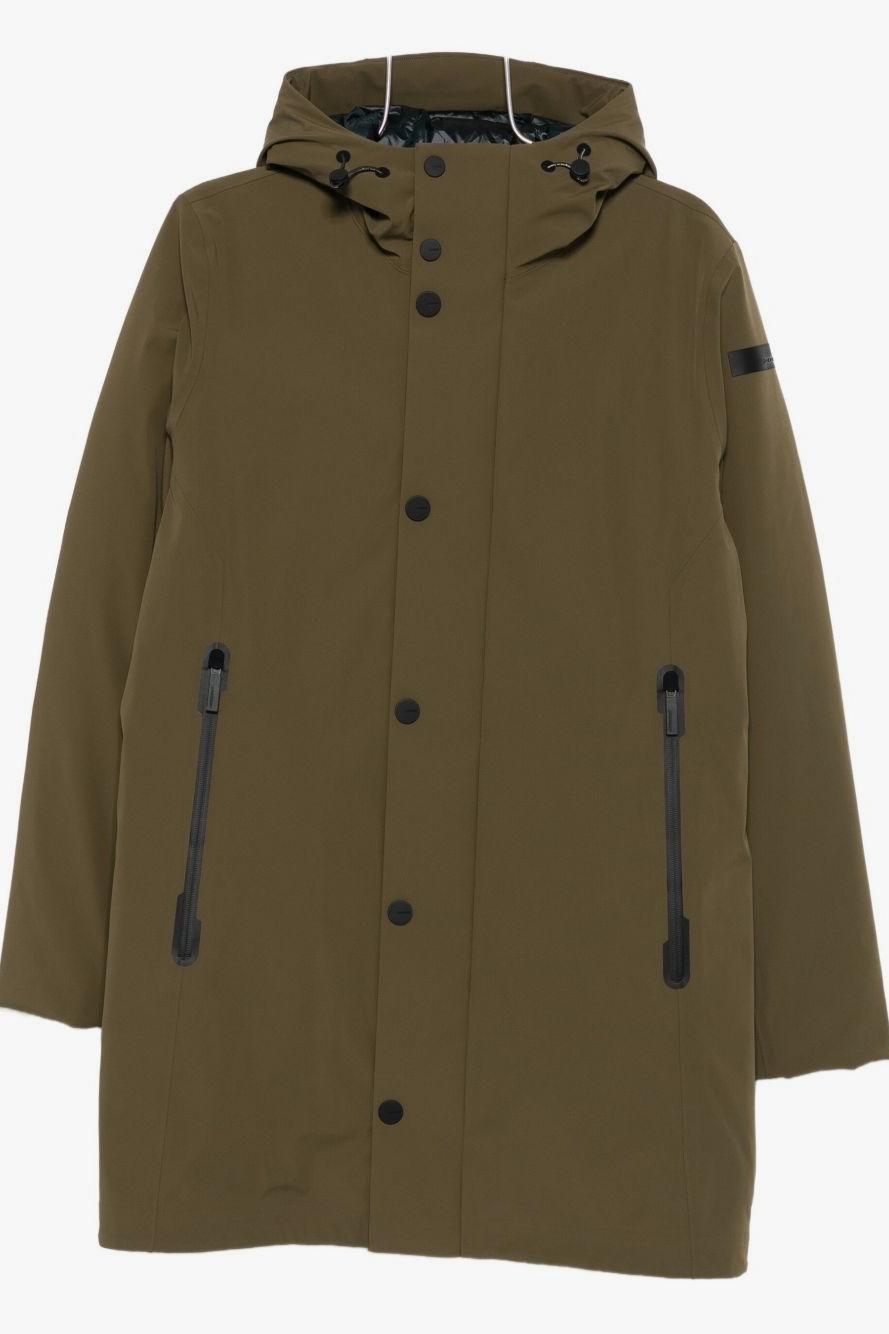 Proposta in verde chiaro, presenta cappuccio integrato, chiusura frontale con bottoni e zip, maniche lunghe e orlo dritto per un look moderno e pulito. Il design essenziale, arricchito da finiture tecniche e materiali di alta qualità, riflette l’equilibrio perfetto tra funzionalità e stile firmato RRD.