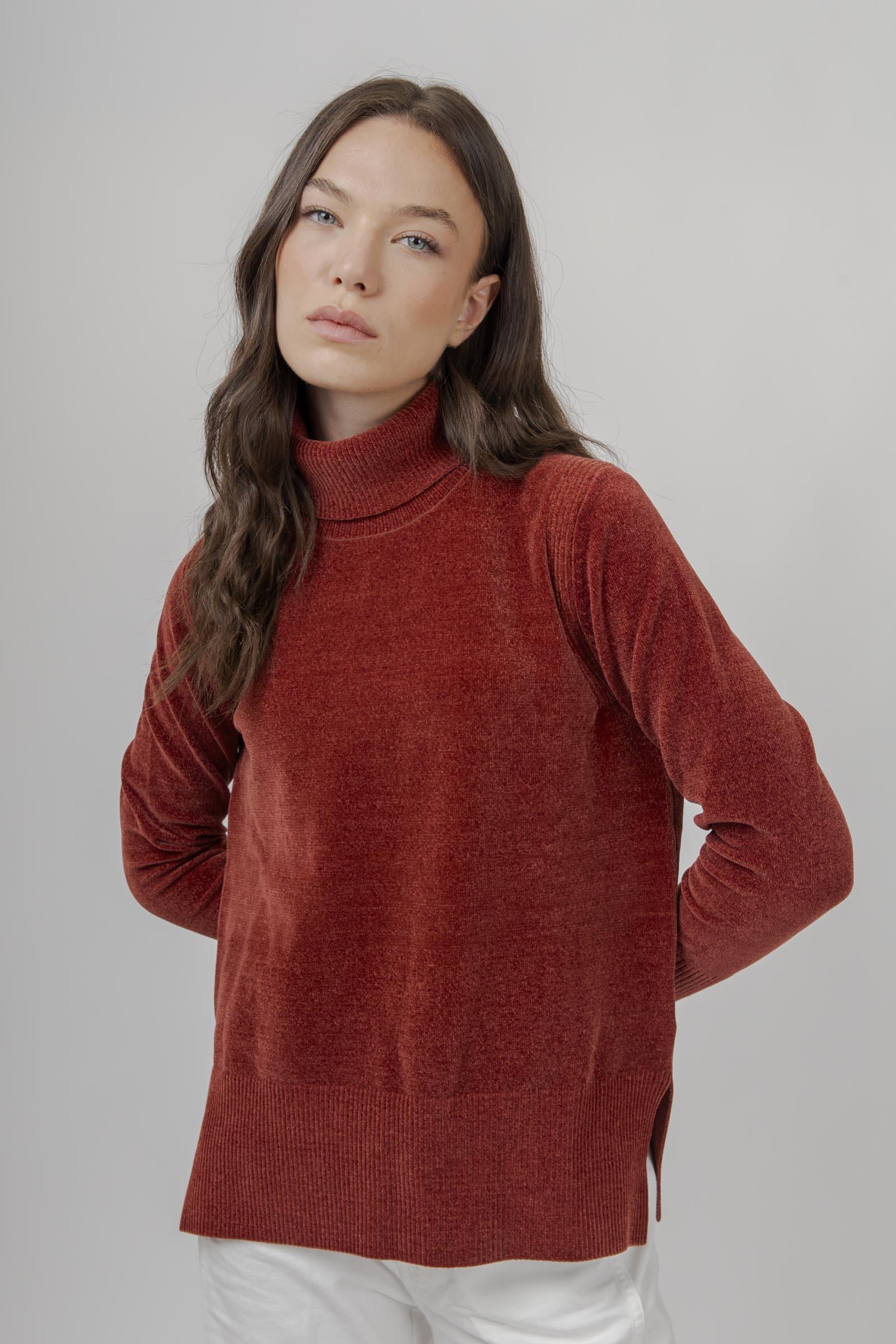 rrd Maglia Velvet Vent Turtleneck Wom Bordeaux Donna