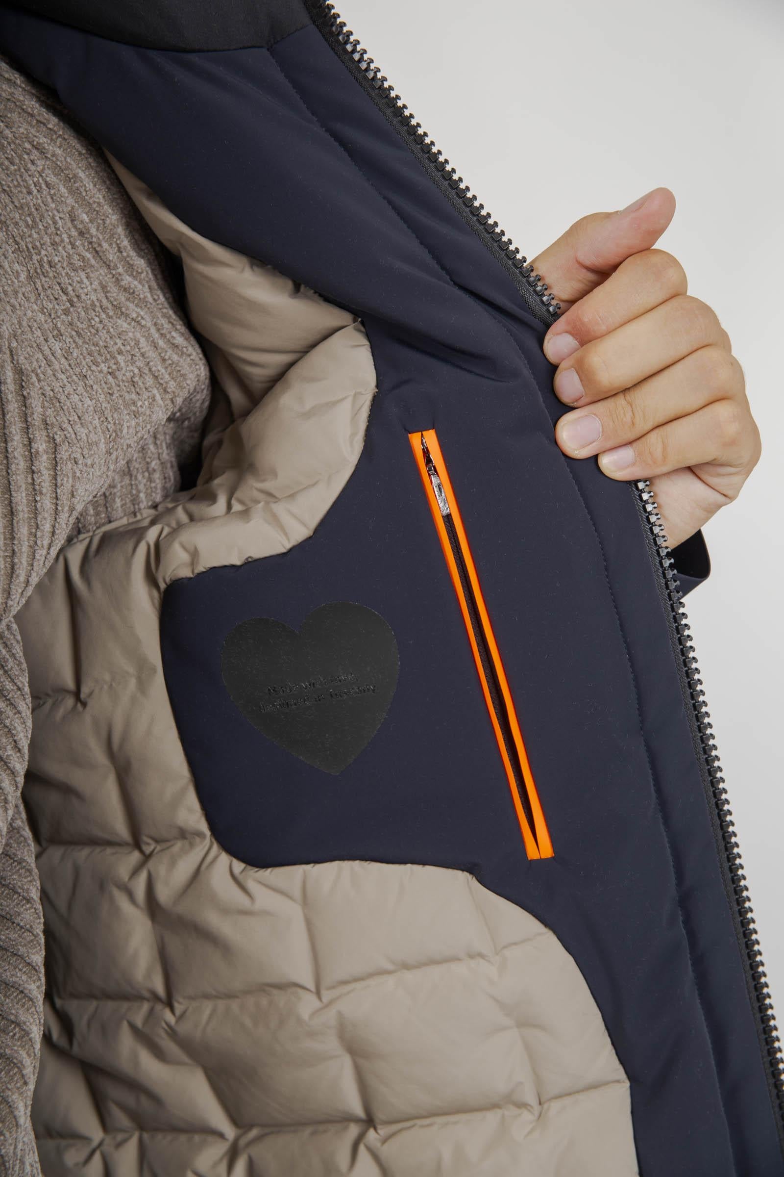 Un’evoluzione della classica giacca militare, questa field jacket si distingue per un design minimale e asciutto, pensato per affrontare freddo, vento e pioggia con stile e funzionalità. Il tessuto Stratofabric#3 con membrana traspirante e finitura opaca (esterno in Montecristo) conferisce impermeabilità e protezione dal vento, mentre la costruzione Laser Glue Lock (senza cuciture) dona un look pulito e contemporaneo. - Cappuccio a scomparsa nel colletto verticale- Chiusura frontale con zip e patta con bottoni a pressione- Tasche laterali tagliate a vivo, con zip termosaldate e incollate- Imbottitura in piuma d’anatra 90/10 con tecnologia Floating Shield per isolamento e comfort- Vestibilità dritta, elegante e funzionale- Logo microiniettato nero sulla manica sinistra- Tag cuore "Made with love, designed in Tuscany"- Doppio filetto arancione nel taschino interno- Esterno & interno: 83% poliammide, 17% elastan- Imbottitura: 90% piumino d’anatra, 10% piumaSKU: W2505560