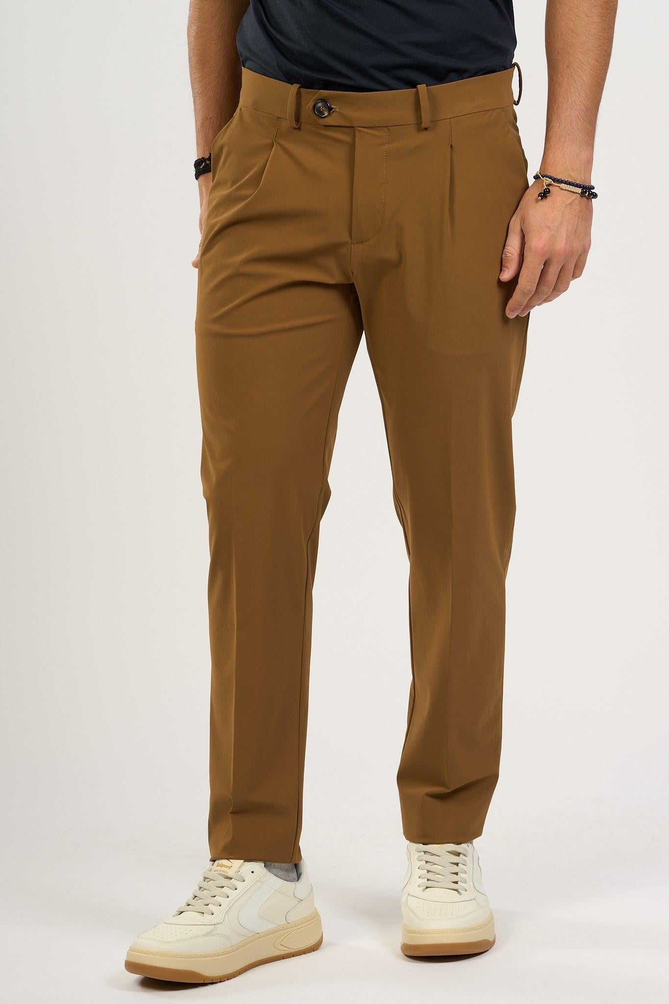 Scopri l'eleganza e il comfort dei Pantaloni Revo Chino Pence Bruciato di RRD, ideali per l'uomo che ricerca stile e innovazione nei suoi capi di abbigliamento. Questo pantalone chino è realizzato in un sofisticato tessuto tecnico opaco nel tono ricercato del marrone tabacco. La composizione del tessuto, 79% poliammide e 21% elastan, offre una texture ultraleggera e una flessibilità senza eguali per movimenti senza restrizioni.