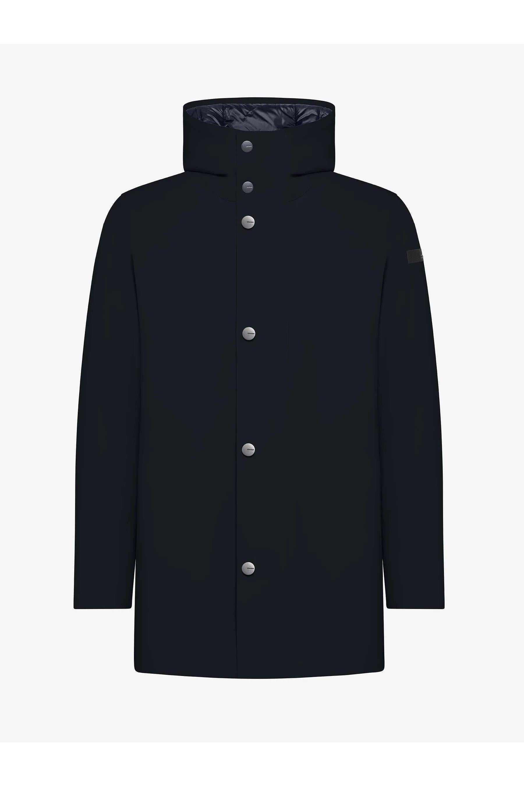 È l'ispirazione stilistica che soffia dall'oceano, a disegnare l'eleganza minimalista di questo parka caldo e protettivo, dotato di cappuccio fisso avvolgente. La raffinatezza tecnologica del modello si esprime nella costruzione Laser Glue Lock, totalmente priva di impunture, del tessuto a membrana Stratofabric #3, che rende il capo assolutamente impermeabile alla pioggia e agli agenti atmosferici. Il look super opaco dell'esterno in esclusivo SURFLEX® esalta l'essenzialità dello stile, vivacizzato dai bottoni metallici a pressione che chiudono la patta sul davanti. Questa nasconde la zip integrale a doppio cursore metallico, affiancata dalle ampie tasche laterali a pistagna. L'imbottitura in soffice e calda piuma d'anatra 90/10 è racchiusa nei canali tubici nell'innovativo sistema Floating Shield, che consente una vestibilità impeccabile e un maggiore comfort all'indosso. L'interno presenta il taschino chiuso dalla zip invisibile con doppio filetto arancione fluo e la tag a cuore "Made with love, designed in Tuscany". Il logo a microiniezione nero sulla manica sinistra conferisce una nota di stile inconfondibile al design.