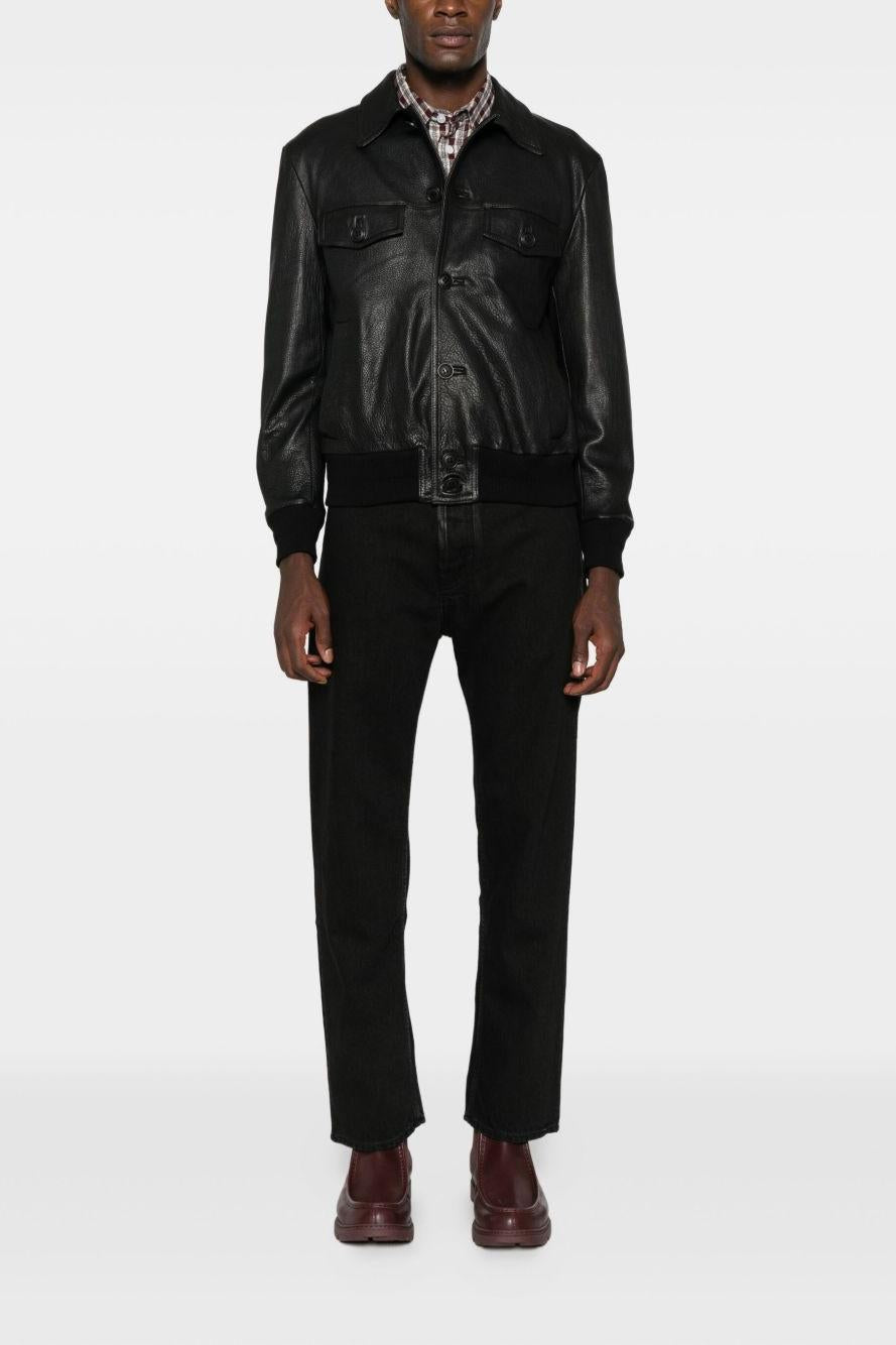Proposta in nero, presenta chiusura frontale con bottoni, colletto classico e due tasche con patta sul petto. Le maniche lunghe e gli orli a coste donano un tocco contemporaneo e una vestibilità confortevole. Perfetta per completare look casual chic o per aggiungere carattere a un outfit urbano.