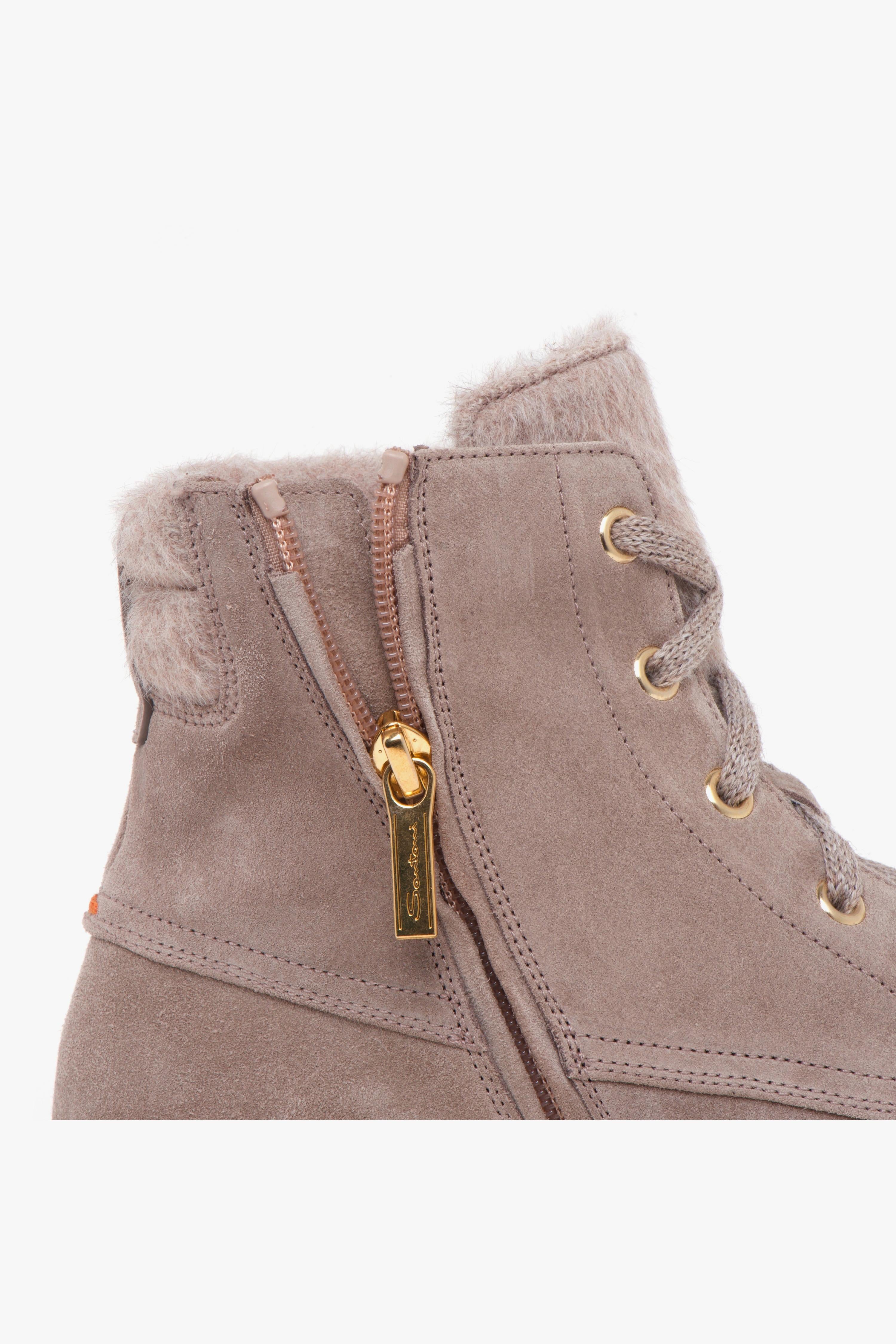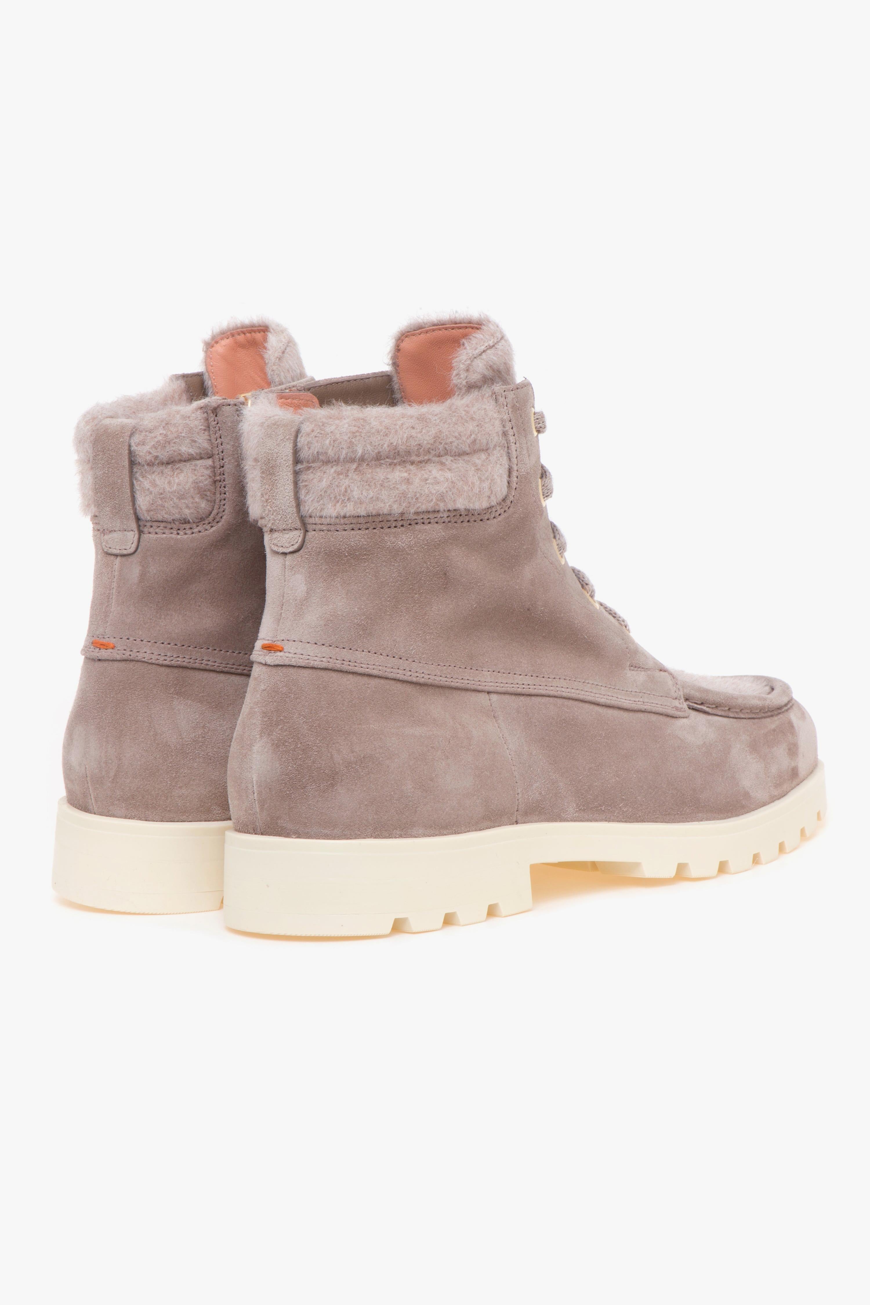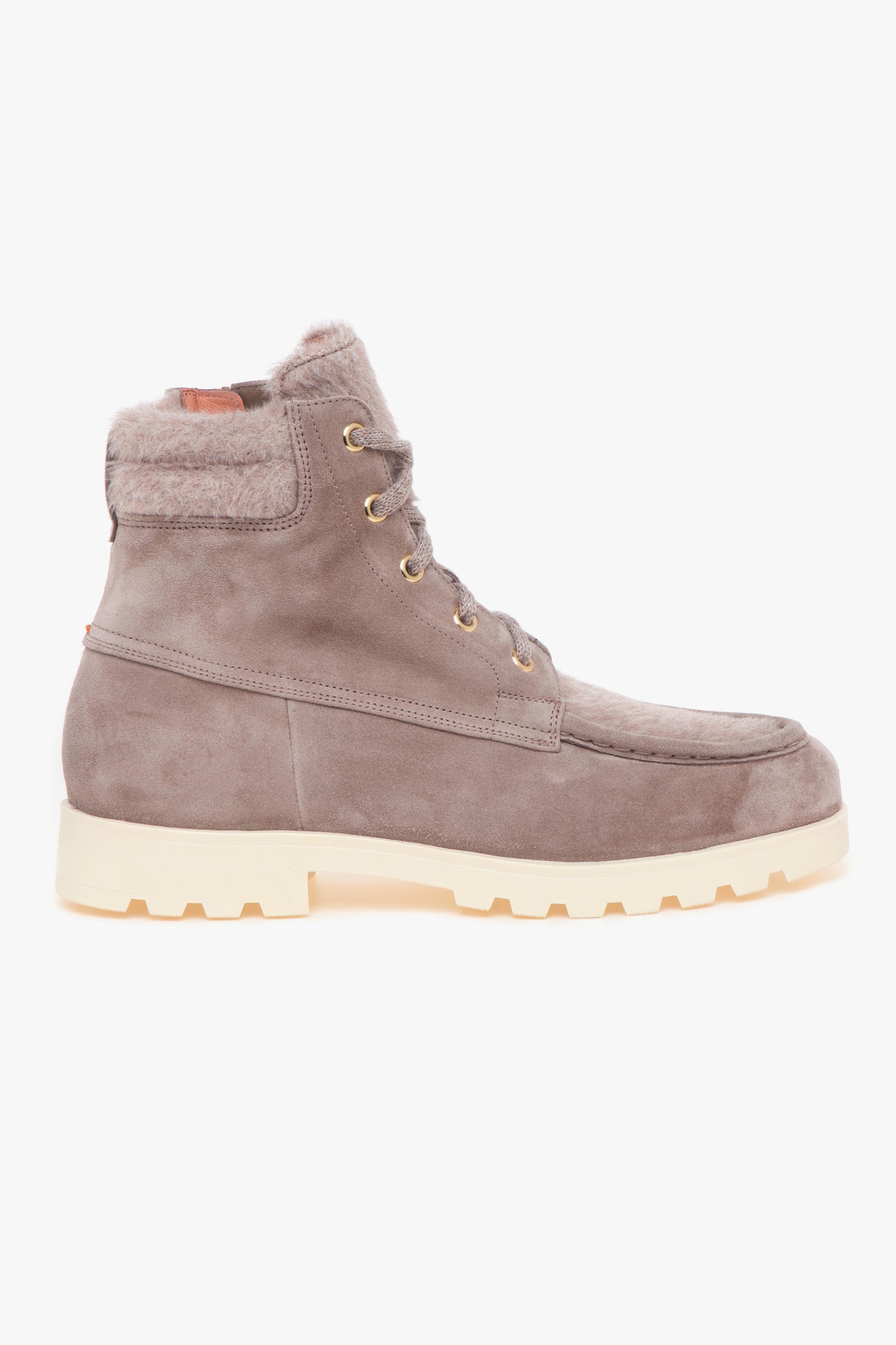 santoni Polacco in camoscio con vaschetta e linguetta in lana