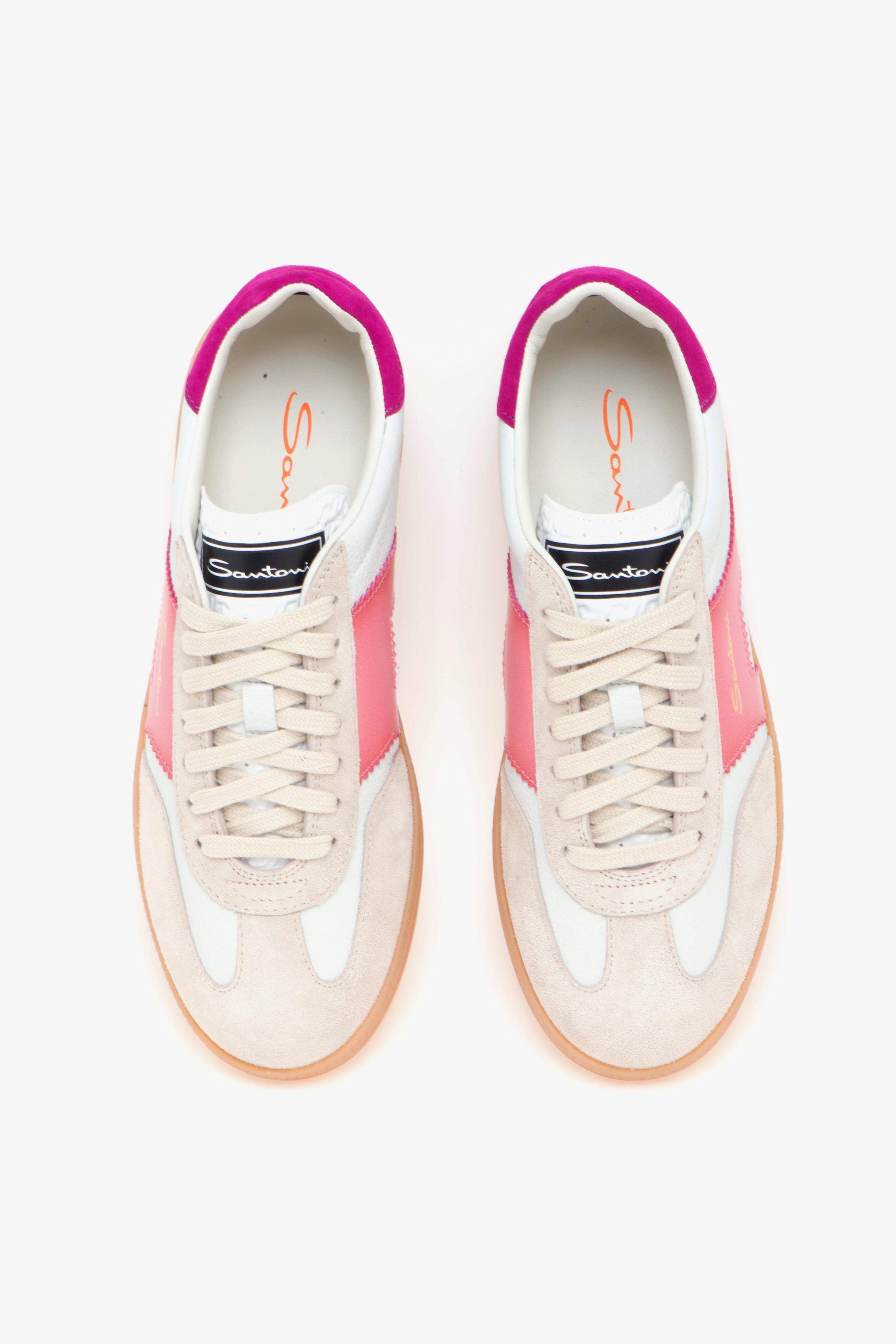 DBS Olympic è la nuova sneaker firmata Santoni ispirata alla calzature che hanno fatto la storia negli anni '70. Presenta una silouette slanciata ed impreziosita dall'iconica "doppia fibbia" stilizzata e in colore sfumato che rende inconfondibile ogni modello del brand. Lo stesso tema del logo con doppia fibbia viene riproposto anche nel pattern della linguetta, realizzata in pelle stampata. La tomaia è in pelle e camoscio con inserti a contrasto color rosa e ciclamino mentre la suola è in gomma extra light. Nel complesso la scarpa è estremamente leggera e flessibile garantendo un confort senza pari durante tutto il giorno. # Tomaia in pelle martellata e camoscio con inserti in pelle anticata. # Fodera in pelle. # Sottopiede estraibile in pelle. # Suola in gomma. # Made in Italy.