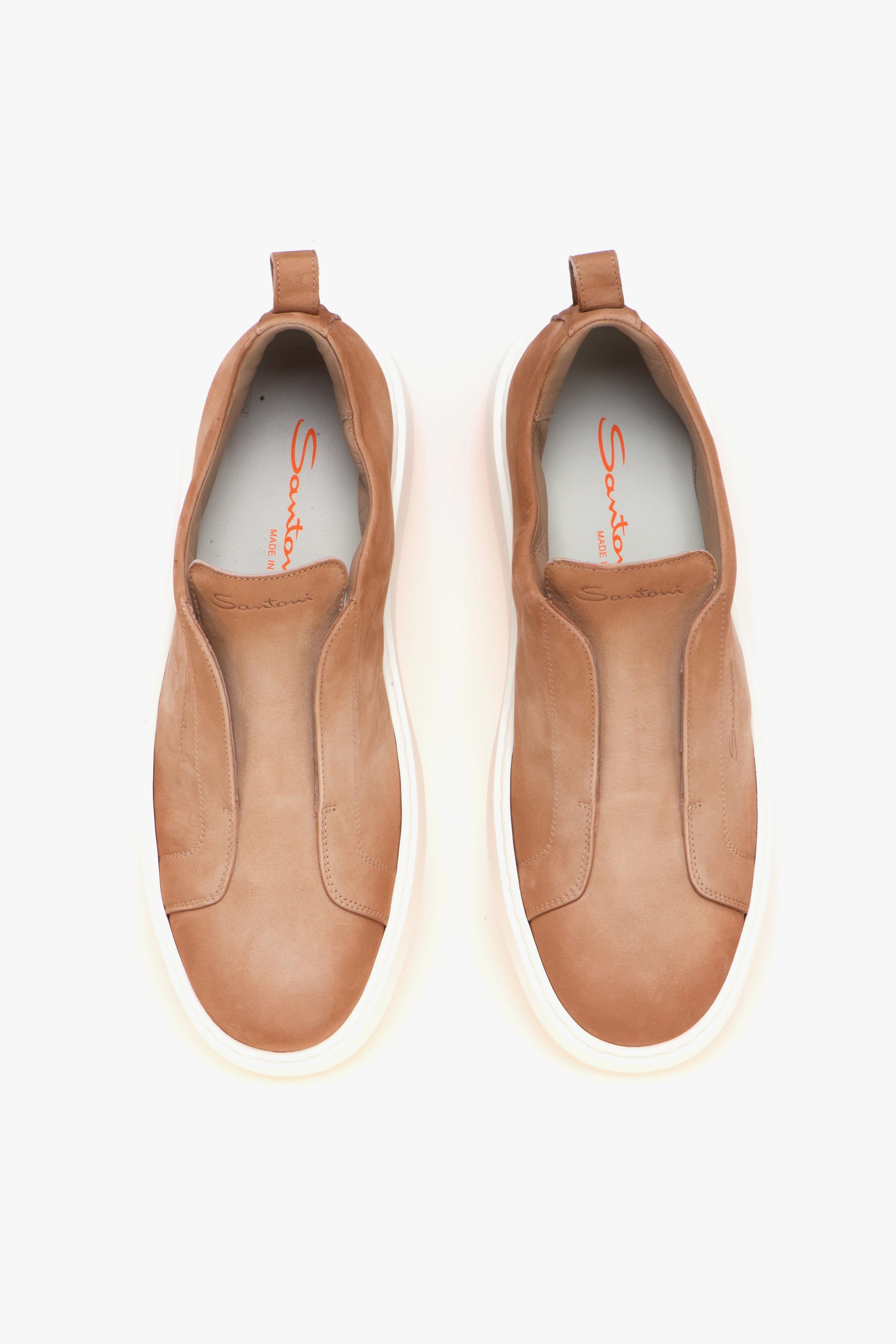Realizzata ispirandosi a uno dei modelli più iconici del brand Santoni, questa nuova slip-on incarna un equilibrio perfetto tra eleganza e stile. La tomaia, in morbido nabuk anticato, aggiunge un esclusivo dettaglio di lusso, mentre il logo Santoni, stampato in oro sul lato, conferisce un tocco distintivo e raffinato. Ideata per chi desidera un tocco di raffinatezza in ogni occasione, questa sneaker si distingue per il suo design straordinario, perfetto sia per il tempo libero che per l’ufficio. La suola è realizzata in gomma extra light per garantire comfort e leggerezza, mentre il battistrada è impreziosito da un decoro arancione che richiama l'iconica doppia fibbia, simbolo inconfondibile del brand. Versatile e sofisticata, si abbina con disinvoltura a un abito formale o a un look casual, esaltando ogni outfit con classe senza tempo.# Tomaia in morbido nabuck anticato.# Fodera in pelle. # Sottopiede estraibile in pelle. # Suola in gomma. # Made in Italy.