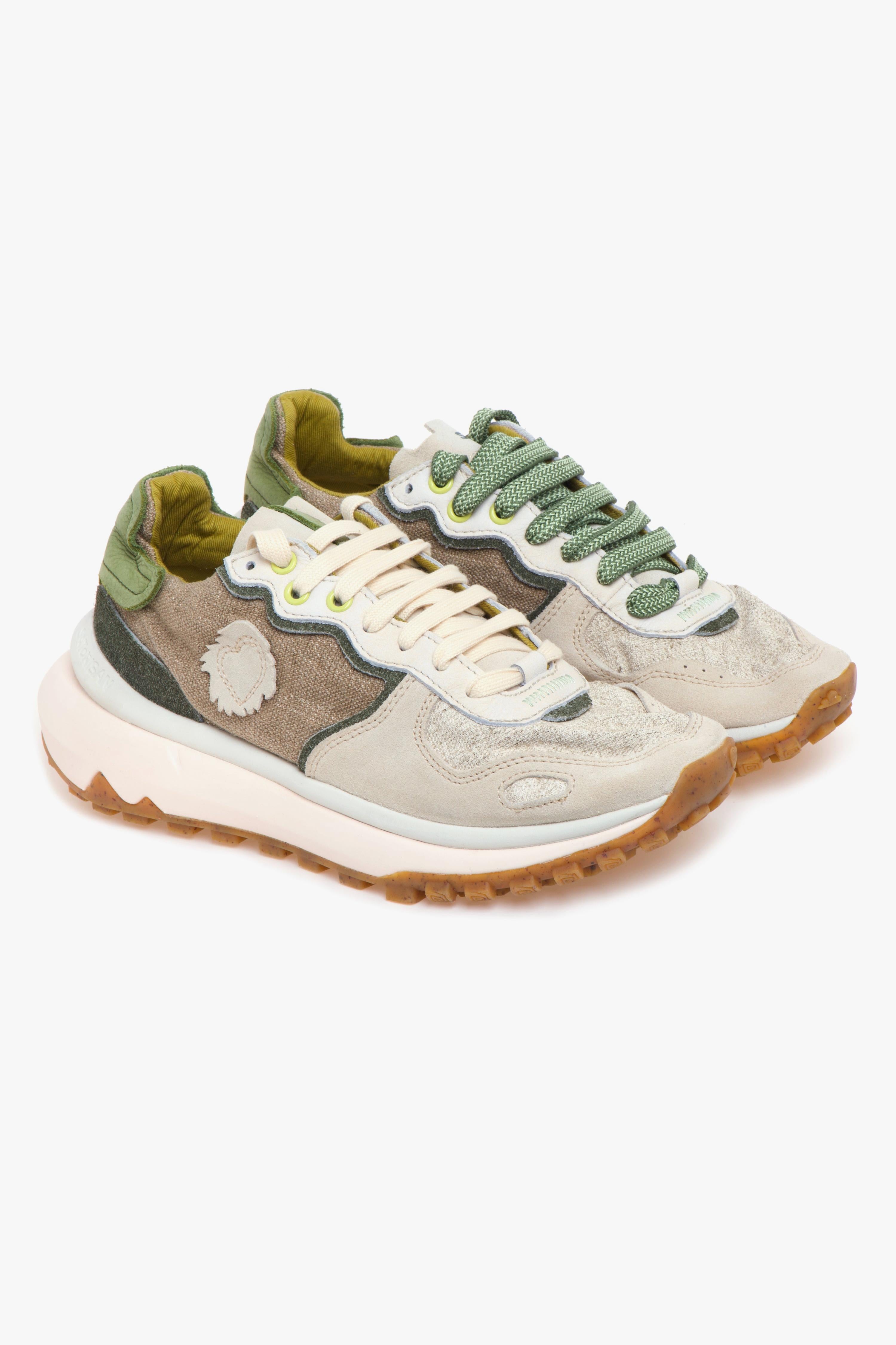 Linee pulite, materiali naturali e una palette cromatica delicata definiscono la nuova evoluzione della Chacrona Metta. Un modello che interpreta lo spirito autentico di Satorisan con un’estetica equilibrata, pensata per chi cerca una sneaker versatile e sostenibile, adatta al quotidiano.Realizzata in lino Whitewisp e camoscio, la tomaia offre un gioco di texture materiche e leggere. La finitura sbiancata del lino crea un effetto vissuto discreto e contemporaneo, mentre i lacci colorati aggiungono una nota personale. L’interno è foderato in cotone biologico al 100% per una sensazione naturale e confortevole, anche a piedi nudi.La suola Metta Love, robusta e leggera, è realizzata con materiali a basso impatto ambientale, come sughero, gomma naturale e EVA riciclata. Completano la costruzione pelli classificate Oro dal Leather Working Group e lacci in TENCEL, RPET e nylon. Ogni elemento è progettato con attenzione alla durata e al rispetto per l’ambiente.Da abbinare a pantaloni chino e polo o a jeans dritti e camicia in lino, per uno stile rilassato ma consapevole.# Colore indicato dal produttore: 001 ALGUE.Caratteristiche# Tessuto di lino Whitewisp: la sua finitura sbiancata conferisce un effetto leggermente invecchiato e sbiadito.# Fodera interna in cotone biologico al 100%.# Esclusivi lacci extra colorati per un tocco distintivo.Materiali: I materiali utilizzati da Satorisan rispettano la natura e contribuiscono così a ridurre il nostro impatto sul pianeta.# Lino grezzo italiano.# 100% cotone biologico.# Pelli classificate Oro dal Leather Working Group (LWG).# Lacci: TENCEL 100% fibra naturale; RPET e Nylon