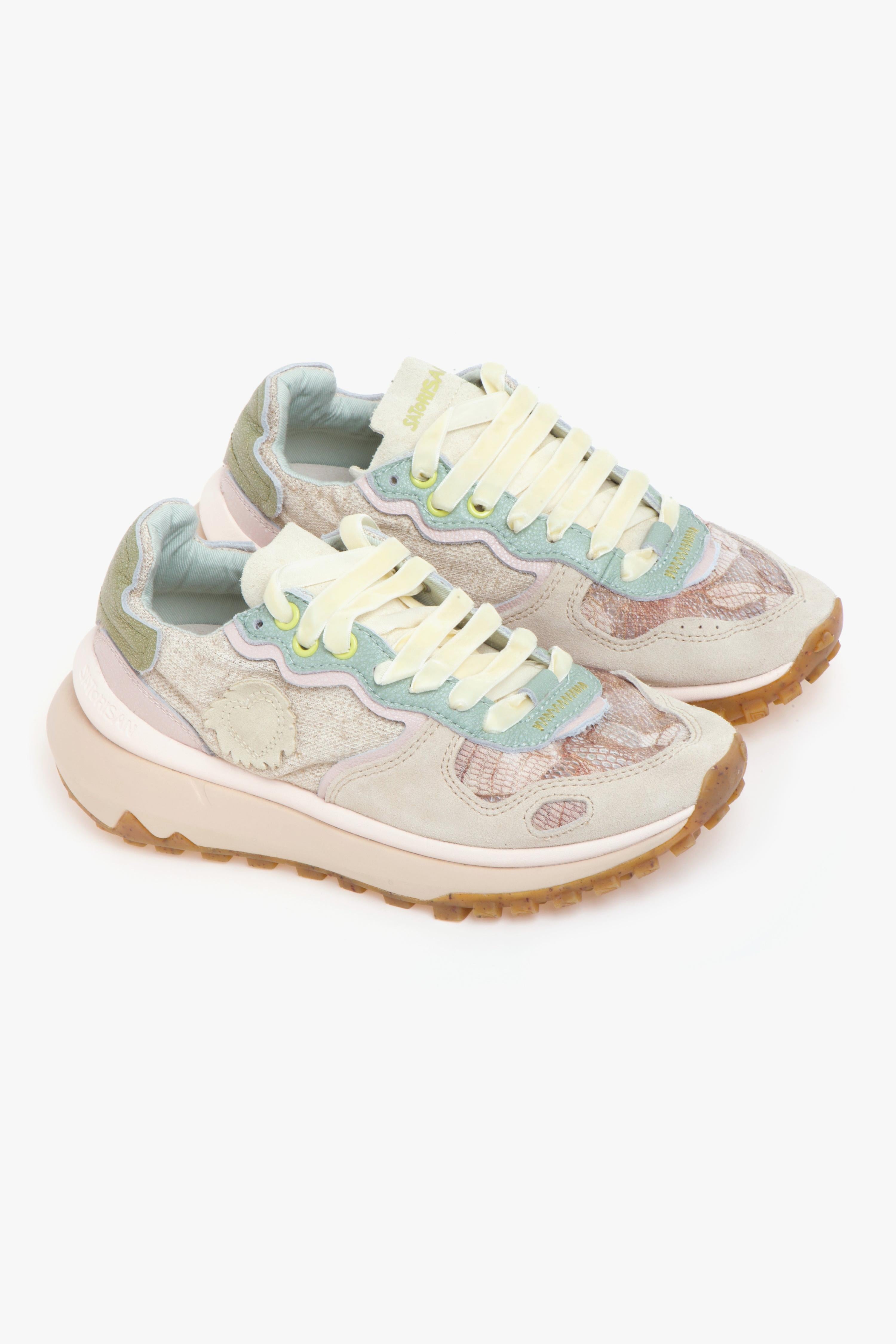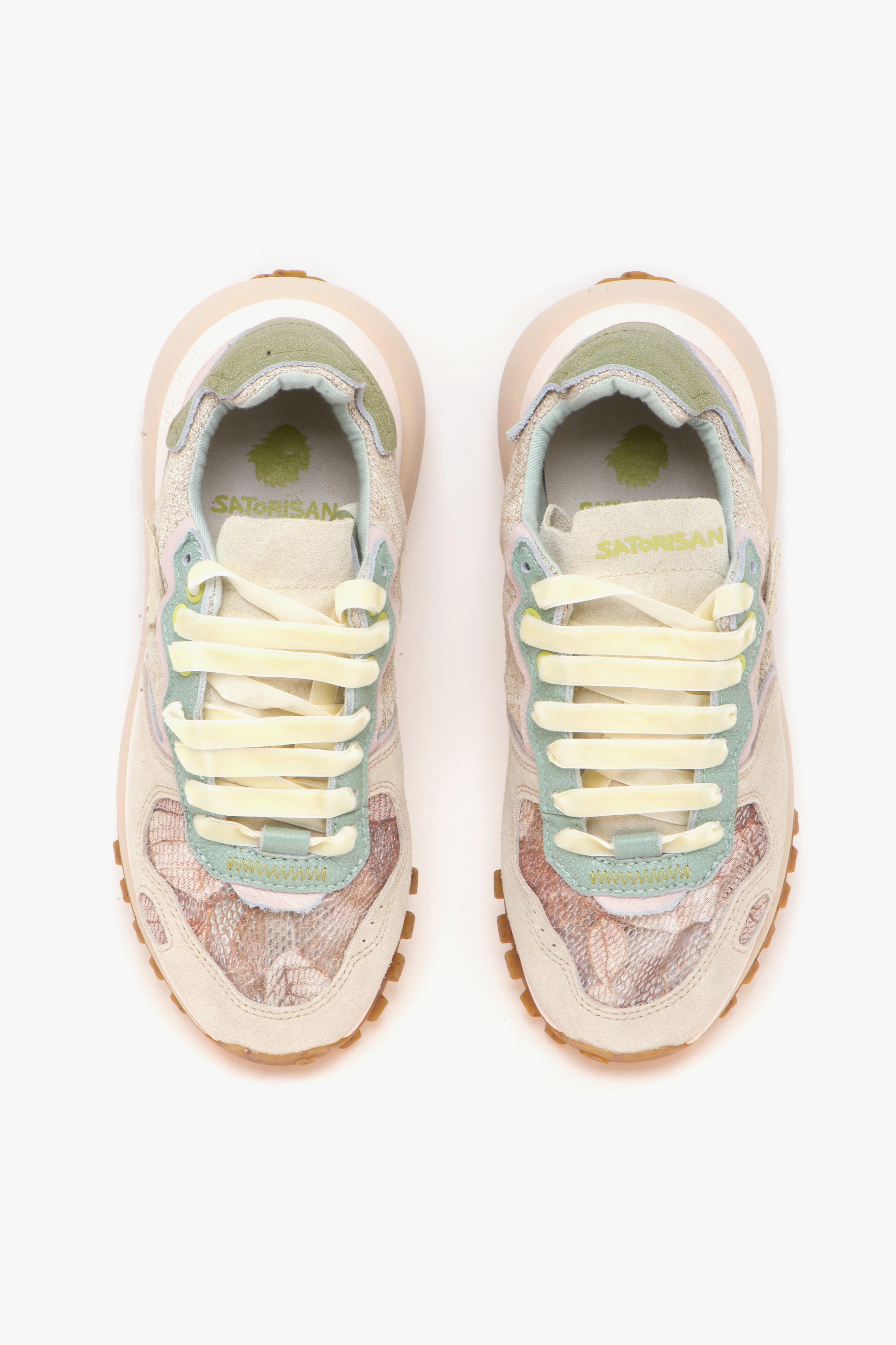 L’anima autentica di Satorisan si esprime in una nuova versione della Chacrona Metta, dove dettagli ricercati e materiali consapevoli si fondono in una sneaker dal carattere delicato e deciso al tempo stesso. La palette di colori tenui si abbina perfettamente alla suola Metta Love, solida ma leggera, mentre le texture naturali e i ricami femminili sulla tomaia donano profondità e personalità al design.La tomaia combina lino Whitewisp, dalla finitura leggermente sbiancata e vissuta, con inserti in camoscio e un talloncino in pelle a contrasto. I ricami sulla punta aggiungono un tocco sofisticato, esaltato dalla morbidezza dei lacci extra con finitura vellutata. L’interno è foderato in cotone biologico 100%, per una sensazione naturale a contatto con la pelle.La costruzione sostenibile si riflette in ogni componente: pelli classificate Oro dal Leather Working Group, lacci in TENCEL e nylon naturale, suola in EVA modellata con gomma e sughero. Una sneaker pensata per durare e per accompagnare ogni passo con comfort e leggerezza.Perfetta con un look monocromatico in lino o con un abito midi in popeline, per uno stile che parla di autenticità, equilibrio e consapevolezza.# Colore indicato dal produttore: 357 - MULTI GREEN.Caratteristiche:# Tessuto di lino Whitewisp: la sua finitura sbiancata crea un effetto leggermente invecchiato e sbiadito.# Dettagli in tessuto ricamato sulla punta per un tocco sofisticato e femminile.# Fodera interna in cotone biologico al 100%.# Lacci extra con finitura vellutata.Materiali consapevoli:# I materiali utilizzati da Satorisan rispettano la natura e contribuiscono così a ridurre il nostro impatto sul pianeta.# Lino grezzo italiano e tessuto Gynko - 100% cotone biologico.# Pelli classificate Oro dal Leather Working Group (LWG).# Lacci: TENCEL e nylon 100% naturali con finitura vellutata.