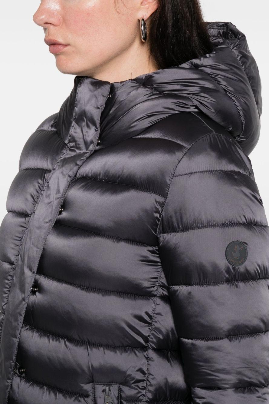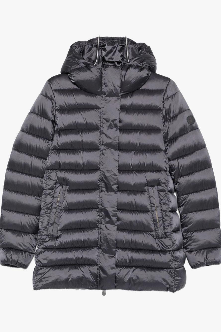 Proposto in un elegante tono grigio ebano, presenta un design imbottito, cappuccio integrato, maniche lunghe e tasche frontali che rendono il capo funzionale e versatile. L’iconica applicazione con logo Save The Duck aggiunge un tocco distintivo, simbolo di sostenibilità e innovazione.
