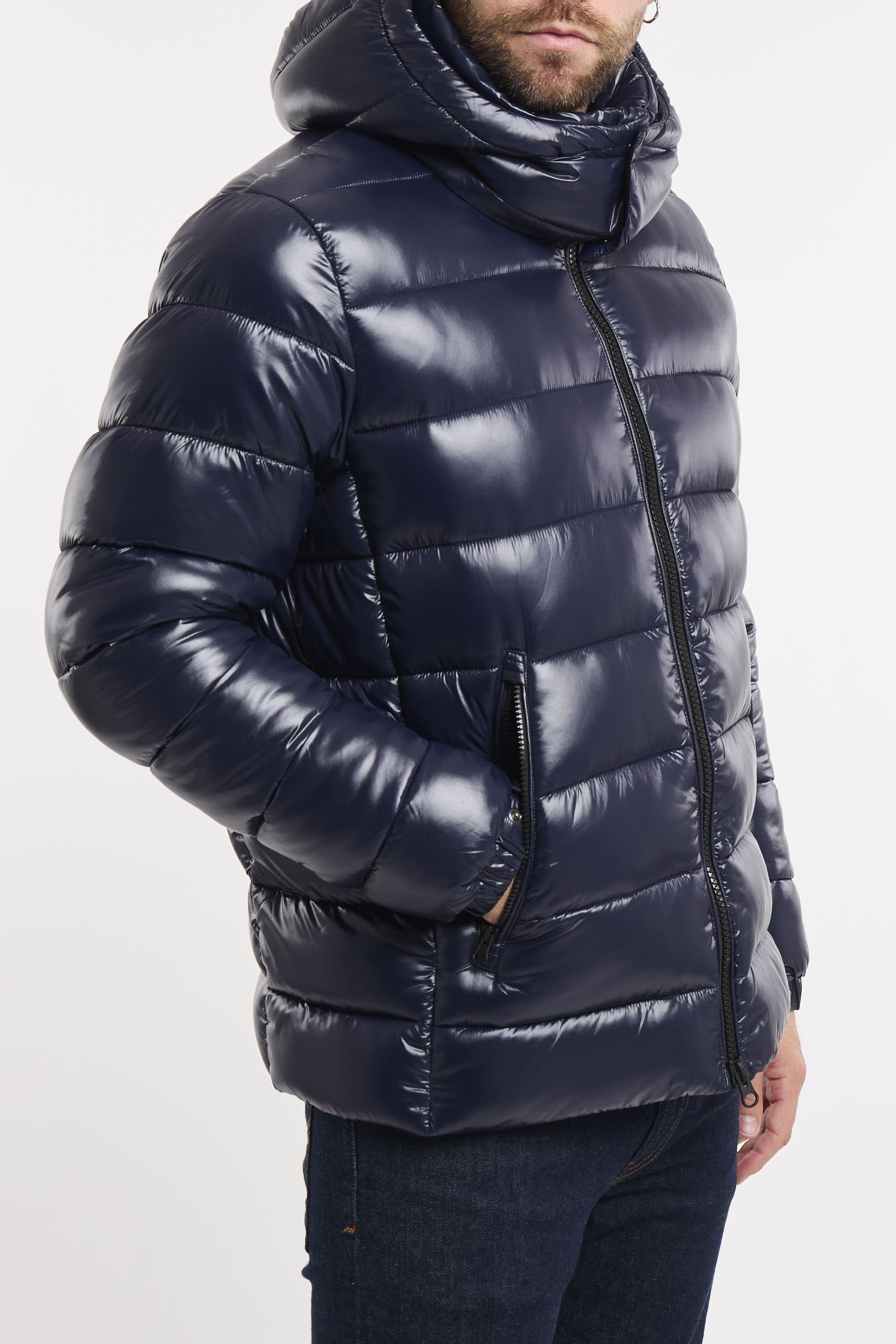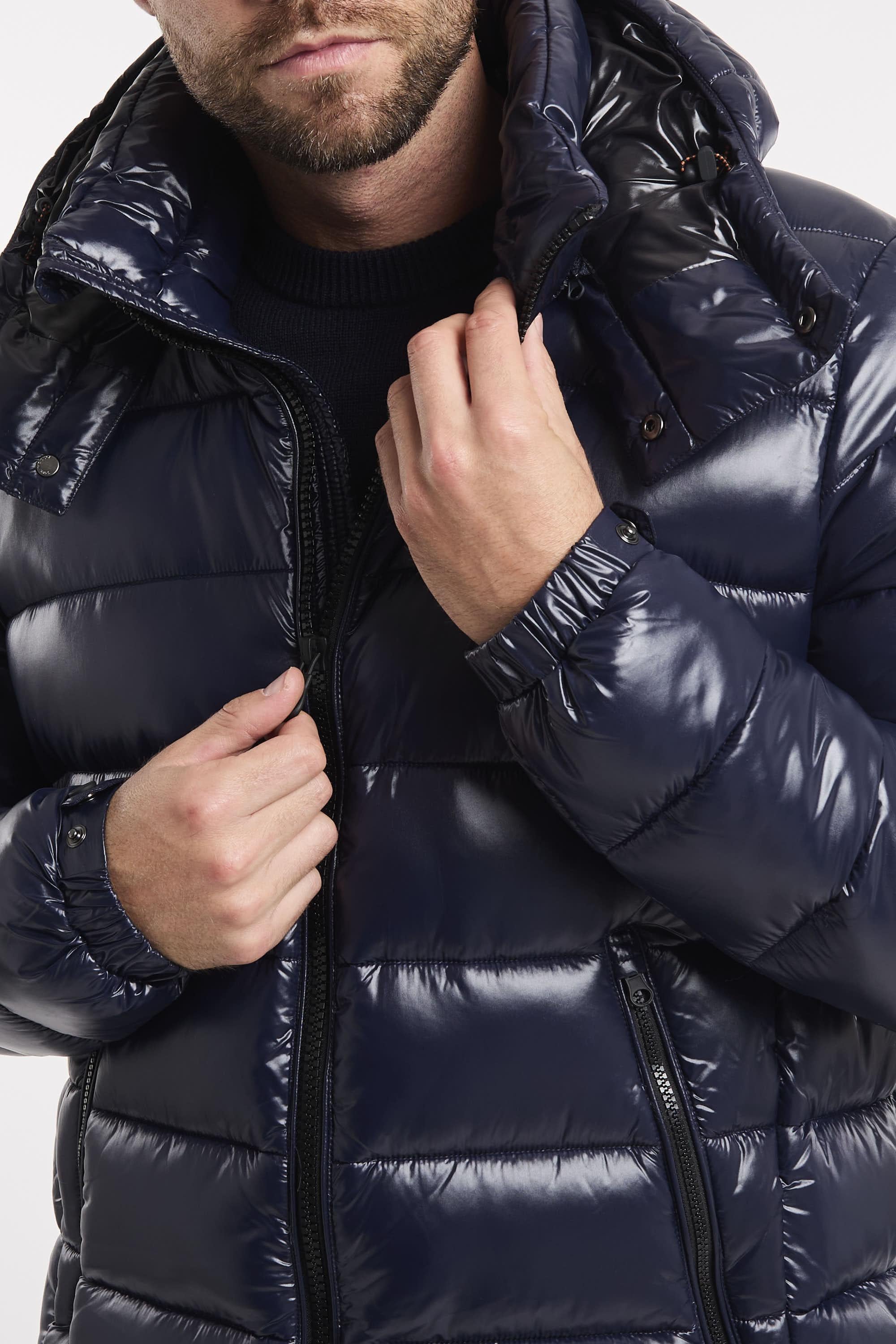 Piumino Florian con cappuccio. Realizzato con un guscio tecnico lucido, trapuntato e imbottito. Dotato di cappuccio rimovibile e regolabile, si distingue per il tirazip personalizzato e il logo tondo sulla manica. Polsini elastici con bottoni a pressione offrono una vestibilità comoda, mentre le tasche zippate e la tasca interna al petto assicurano che tu possa portare con te tutto il necessario. Tessuto molto leggero e compatto, dalla mano morbida e liscia. Ha eccellenti prestazioni "antivento", grazie alla sua costruzione ad alta densità. La sua particolare rifinitura gli conferisce un aspetto setoso e luminoso. Il modello è alto 187cm e indossa la taglia L.Materiale: 100% Nylon riciclato
