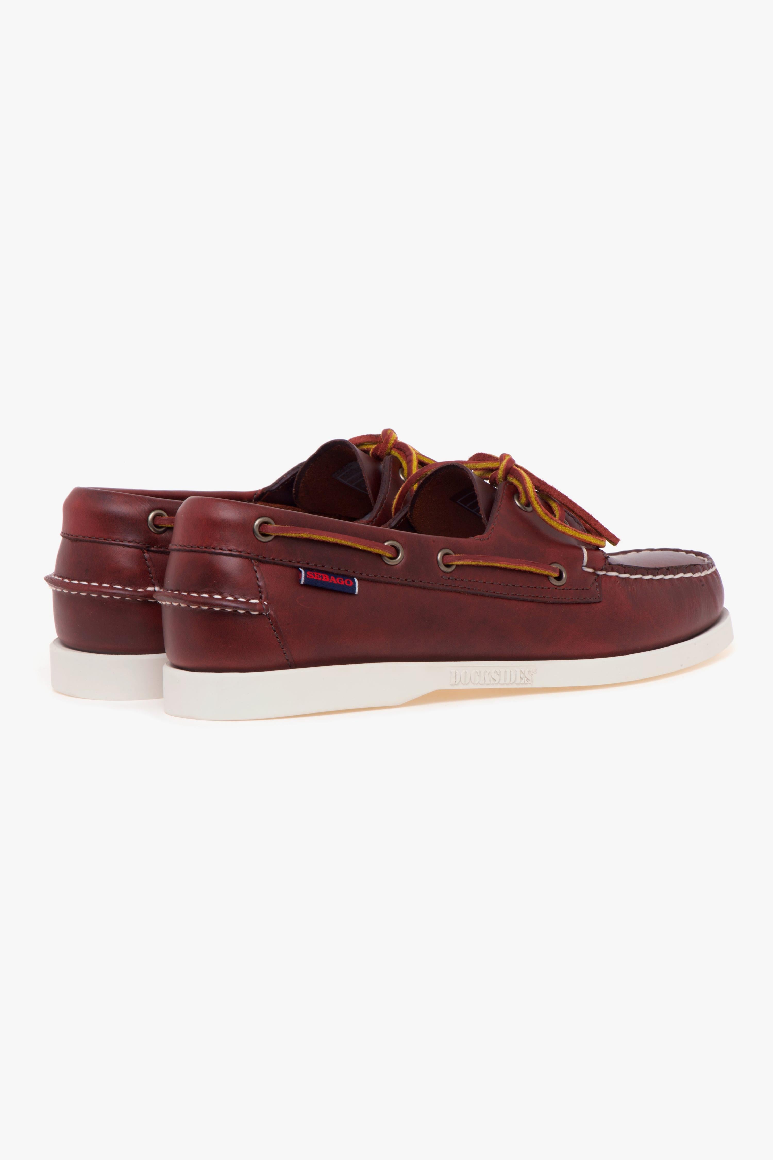 Realizzato in pelle cerata di alta qualità e costruito artigianalmente a partire da un unico pezzo di pelle, il mocassino Sebago Docksides Portland rappresenta un’icona intramontabile nel mondo della calzatura nautica e non solo. Si distingue per il suo stile intramontabile e per il confort che che lo caratterizza. La tomaia, lavorata in modo artigianale con una ricca miscela di olii e cere, offre un aspetto naturalmente lucido e levigato, mentre la cucitura a mano testimonia l’eccellenza manifatturiera del brand. La fodera in pelle e camoscio assicura comfort e traspirabilità, mentre il sottopiede in pelle garantisce un appoggio solido e confortevole.Il sistema di allacciatura a 360° in cuoio consente una calzata personalizzata e sicura, completata dalla suola in gomma striata antiscivolo e non-marking, ideale anche su superfici bagnate. Pensato per affrontare qualsiasi condizione atmosferica, questo modello riflette lo spirito marittimo di Portland, porto del New England, da cui prende il nome.Perfetto in abbinamento con pantaloni chino, camicia di lino e giacca leggera, per un look casual ricercato dal gusto marinaro. # Tomaia in pelle cerata a mano. # fodera in pelle e camoscio. # Sottopiede in pelle.# Suola in gomma anti scivolo e non-marking in colore burro.