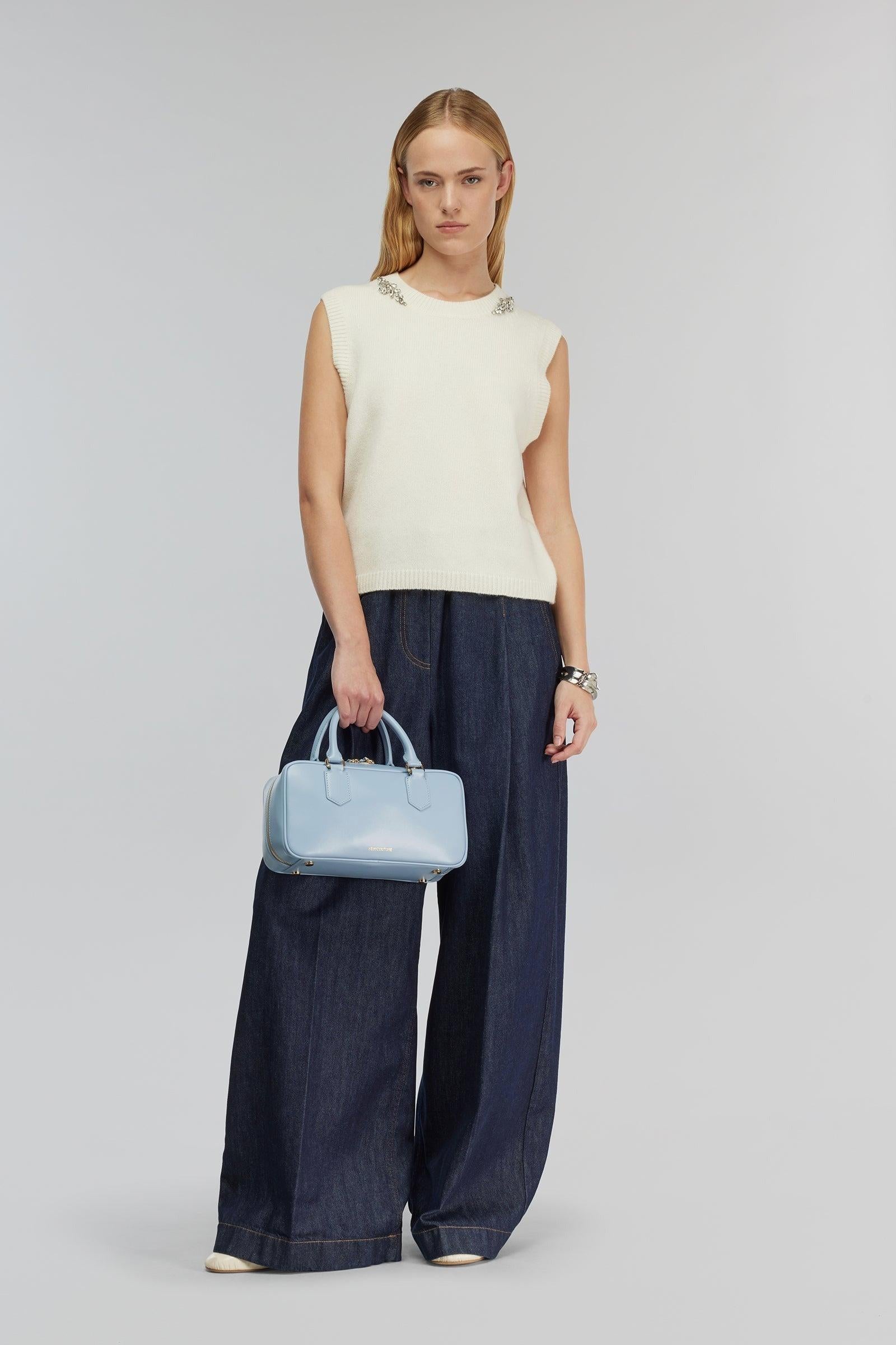 Gilet in misto cashmere dall’eleganza essenziale con un tocco luminoso: l’applicazione di strass lungo la scollatura accende il profilo senza rinunciare alla pulizia delle linee. La vestibilità regular e la lunghezza vita lo rendono perfetto per il layering di stagione — sopra camicie o dolcevita second-skin — garantendo calore leggero e una mano morbida grazie alla percentuale di cashmere. Un alleato trasversale per look day-to-night, capace di dare carattere all’outfit con un dettaglio brillante ma misurato.Caratteristiche principali: # Gilet in misto cashmere.# Applicazione di strass sulla scollatura.# Vestibilità regular, lunghezza vita.# Filato: 90% lana vergine, 10% cashmere.# La modella è alta 174 cm e indossa 42/M.# Misure taglia M: lunghezza 52 cm · torace 46 cm · spalla 38 cm.# Scarto taglia: ~2 cm tra le taglie.# Consiglio taglia: ordinare la misura abituale; se tra due, valutare una in meno per un fit più aderente.