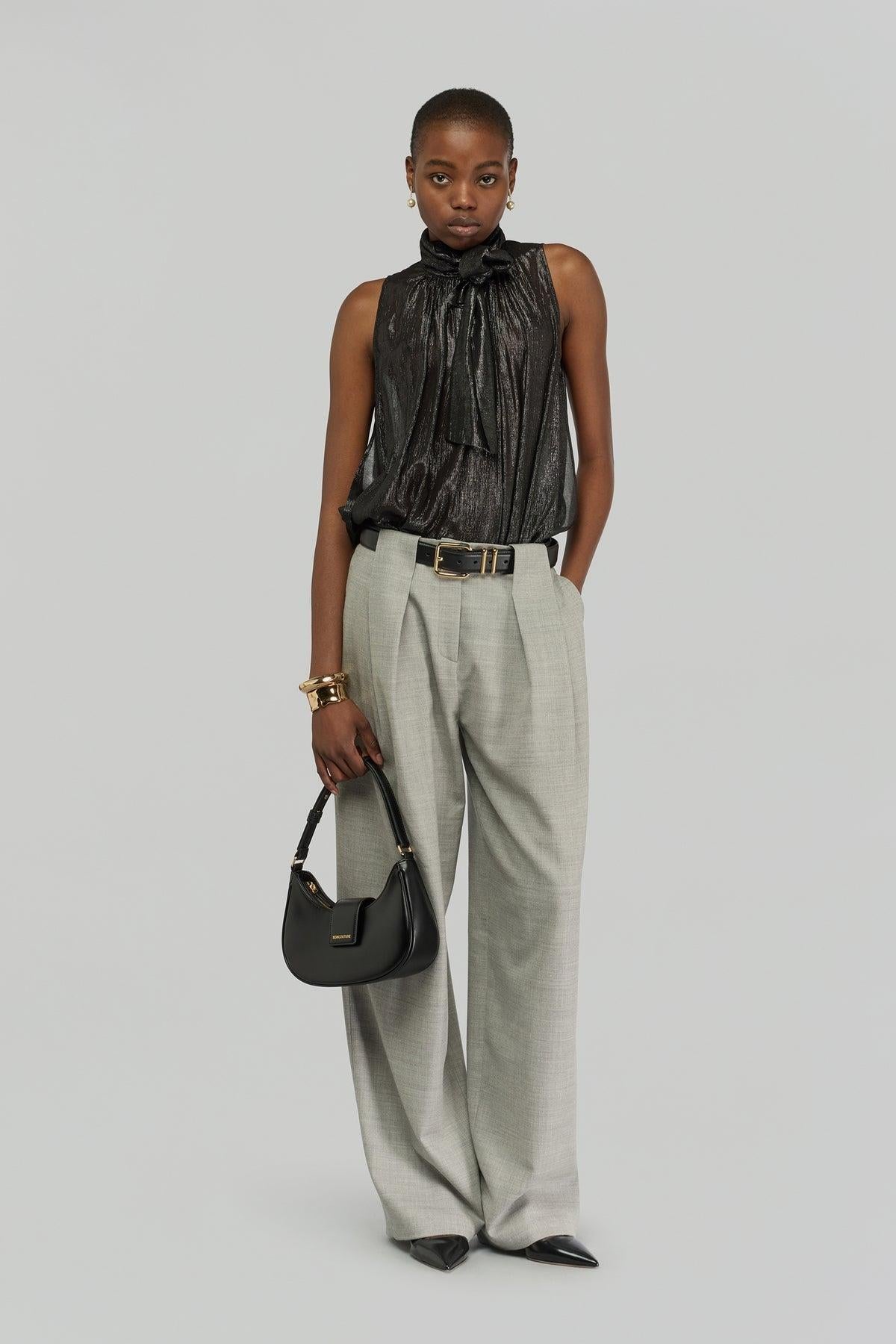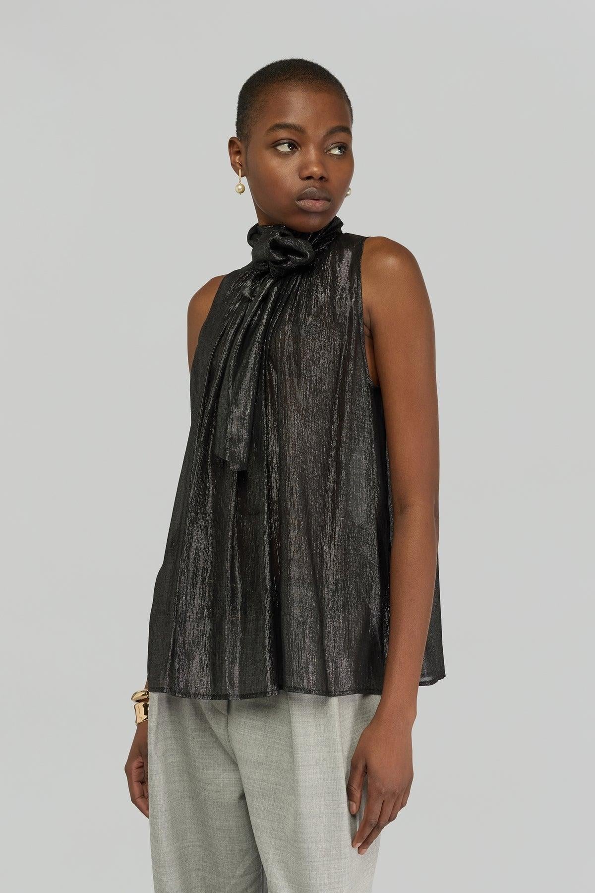 Il Top Josefa in versione metallic viscose è un capo dal carattere sofisticato e contemporaneo: realizzato in 84% viscosa e 16% poliammide, questo modello Made in Italy presenta un colletto alto con fiocco, una vestibilità regolare e lunghezza fino ai fianchi. Il tessuto metallico dona un effetto leggermente luminoso e raffinato, perfetto per chi vuole un top elegante ma con un dettaglio distintivo.Caratteristiche principali# Composizione: 84% viscosa, 16% poliammide. # Colletto alto con fiocco: conferisce un tocco femminile e formale.# Vestibilità regolare, lunghezza fianchi: adatta a molteplici abbinamenti. # Colore: “Black Metallic Viscose”.Perché scegliere questo modelloQuesto top si inserisce perfettamente in un guardaroba che ricerca l’equilibrio tra eleganza e modernità. Il colletto con fiocco e il tessuto metallico lo rendono ideale per occasioni in cui vuoi distinguerti, senza esagerare. Allo stesso tempo, la vestibilità regolare e la lunghezza fino ai fianchi lo rendono funzionale e versatile.