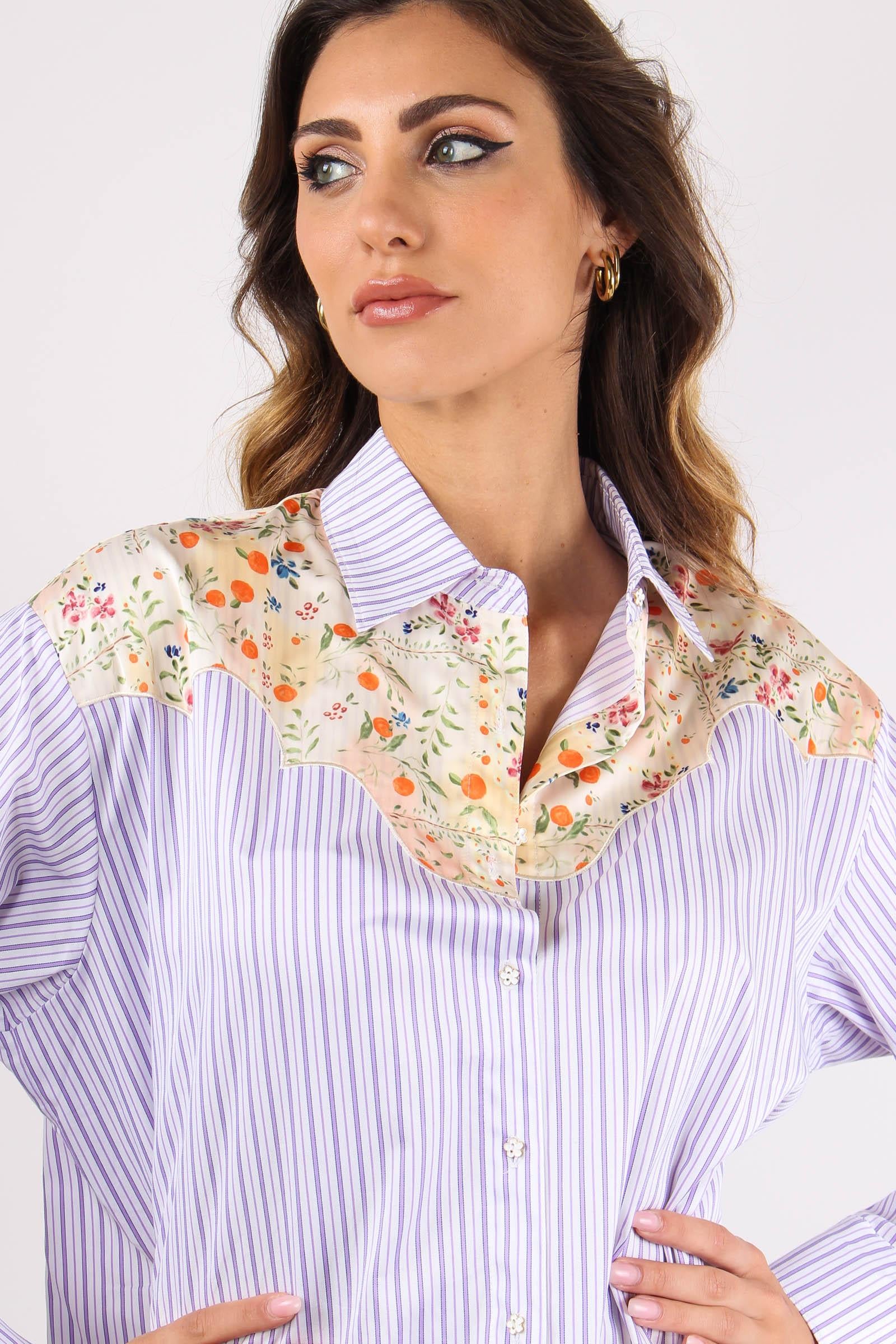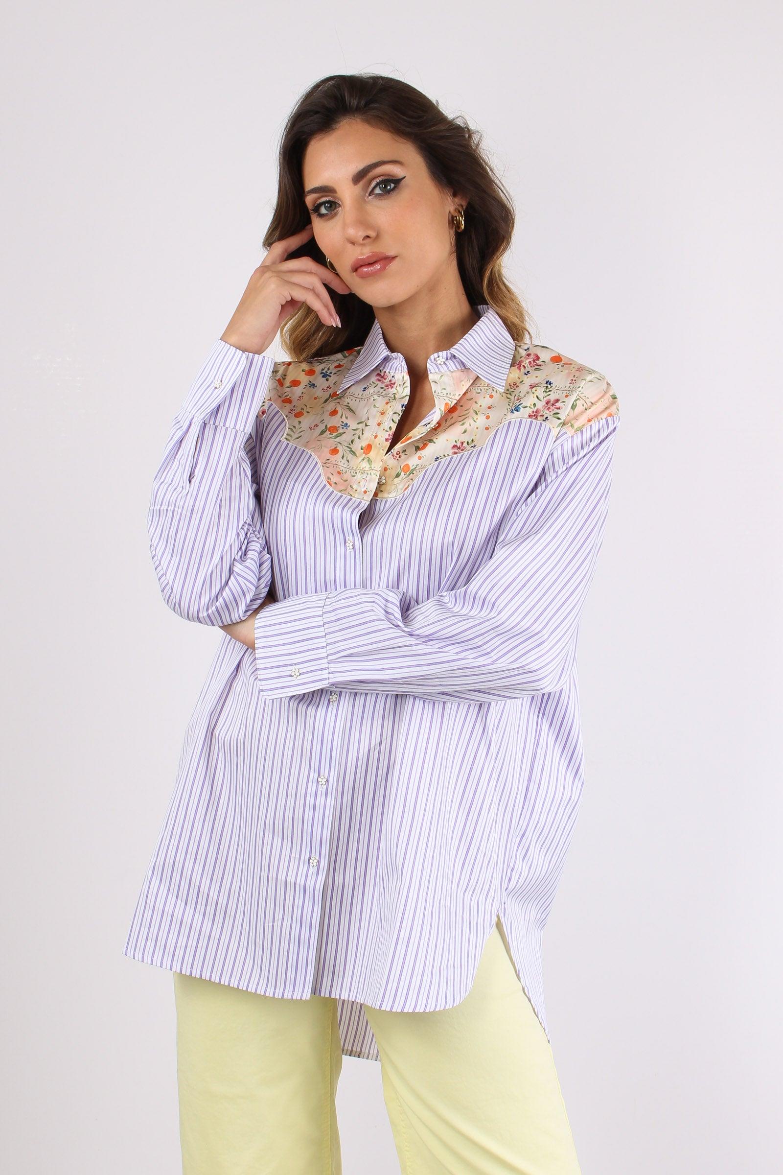 sincere Camicia Riga Inserto Fantasia Bianco/lilla