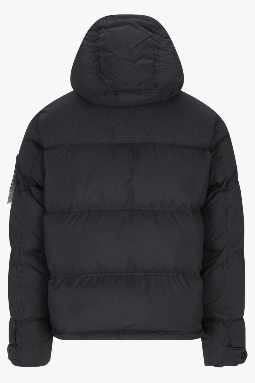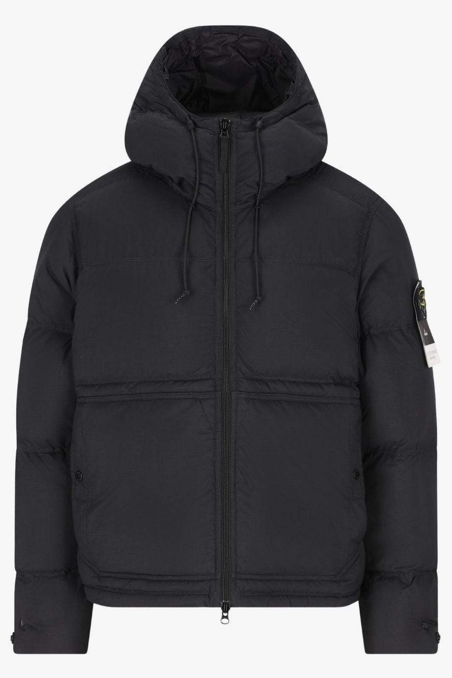 Proposta in nero, presenta design trapuntato, chiusura frontale con zip e cappuccio regolabile con coulisse per una vestibilità personalizzata. L’attenzione ai dettagli e la qualità dei materiali riflettono l’innovazione e l’estetica funzionale tipiche di Stone Island.