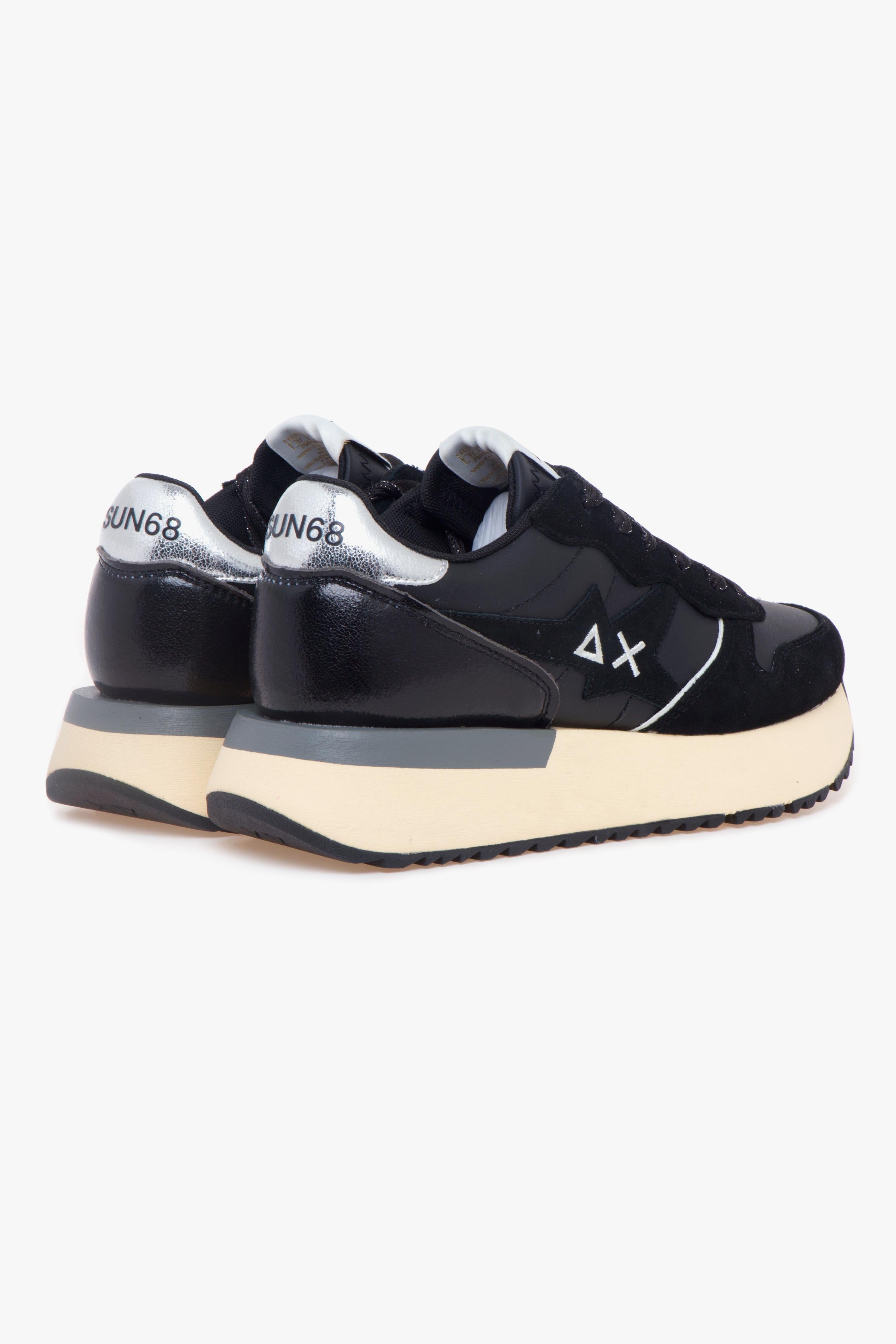 SUN68 Big Stargirl nasce dall’incontro tra ispirazione sport e look metropolitano: la tomaia combina similpelle e suede con dettagli laminati e bagliori glitter che accendono il profilo senza rinunciare alla praticità. L’etichetta logata con stella sulla linguetta e la patch laterale con logo ricamato definiscono l’identità del modello, mentre i lacci in lurex aggiungono un tocco luminoso. Internamente, la fodera in micro mesh favorisce la traspirazione; sotto, la suola in phylon — leggera e ammortizzata — lavora con il battistrada in gomma per un’aderenza affidabile su fondi urbani.Caratteristiche principali:# Sneaker da donna SUN68 Big Stargirl, stile running.# Tomaia in similpelle e suede con dettagli laminati e accenti glitter.# Etichetta logata con stella sulla linguetta.# Patch con logo ricamato sul lato.# Chiusura con lacci in lurex.# Fodera in micro mesh traspirante.# Suola in phylon leggera e ammortizzata.# Battistrada in gomma per grip quotidiano.
