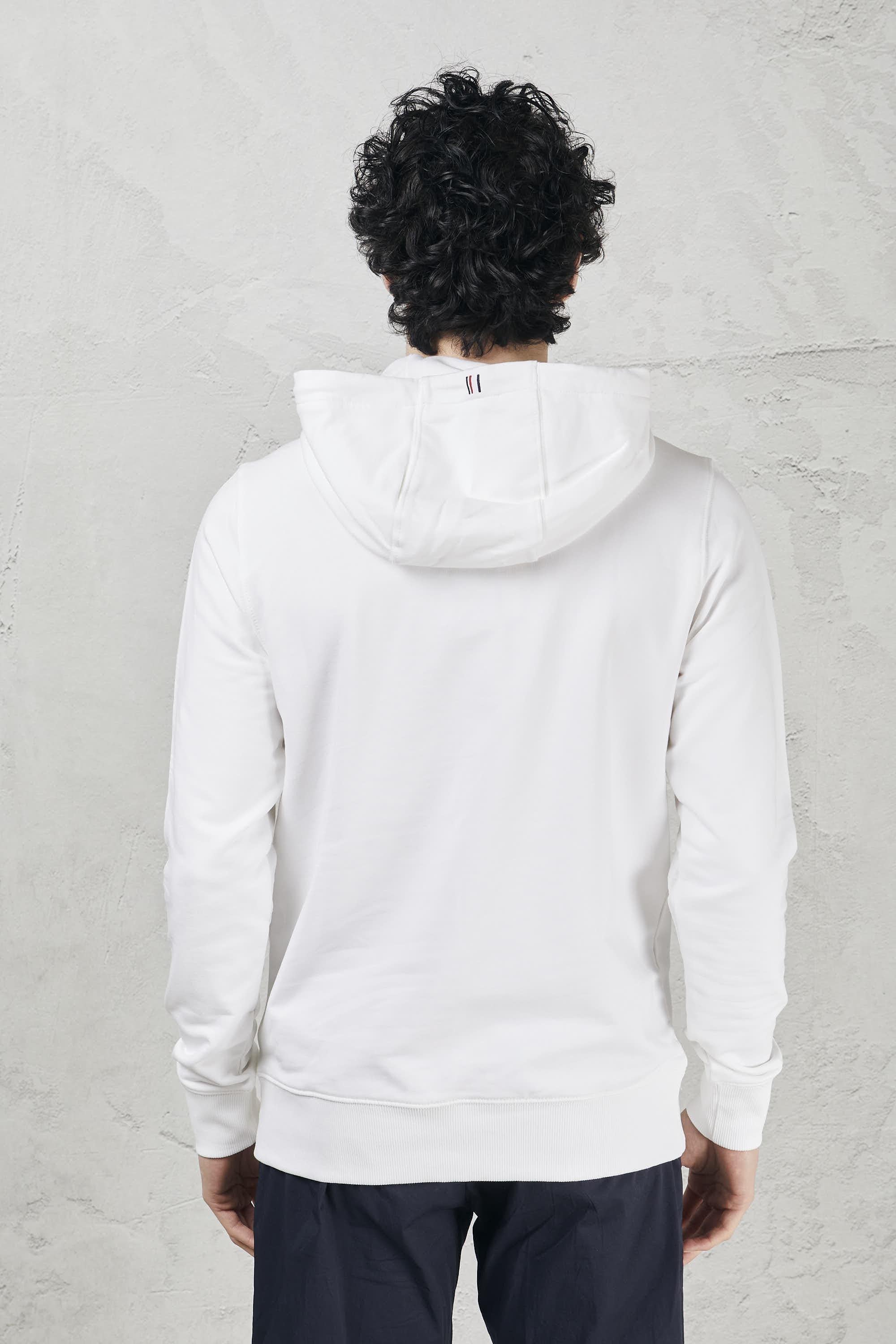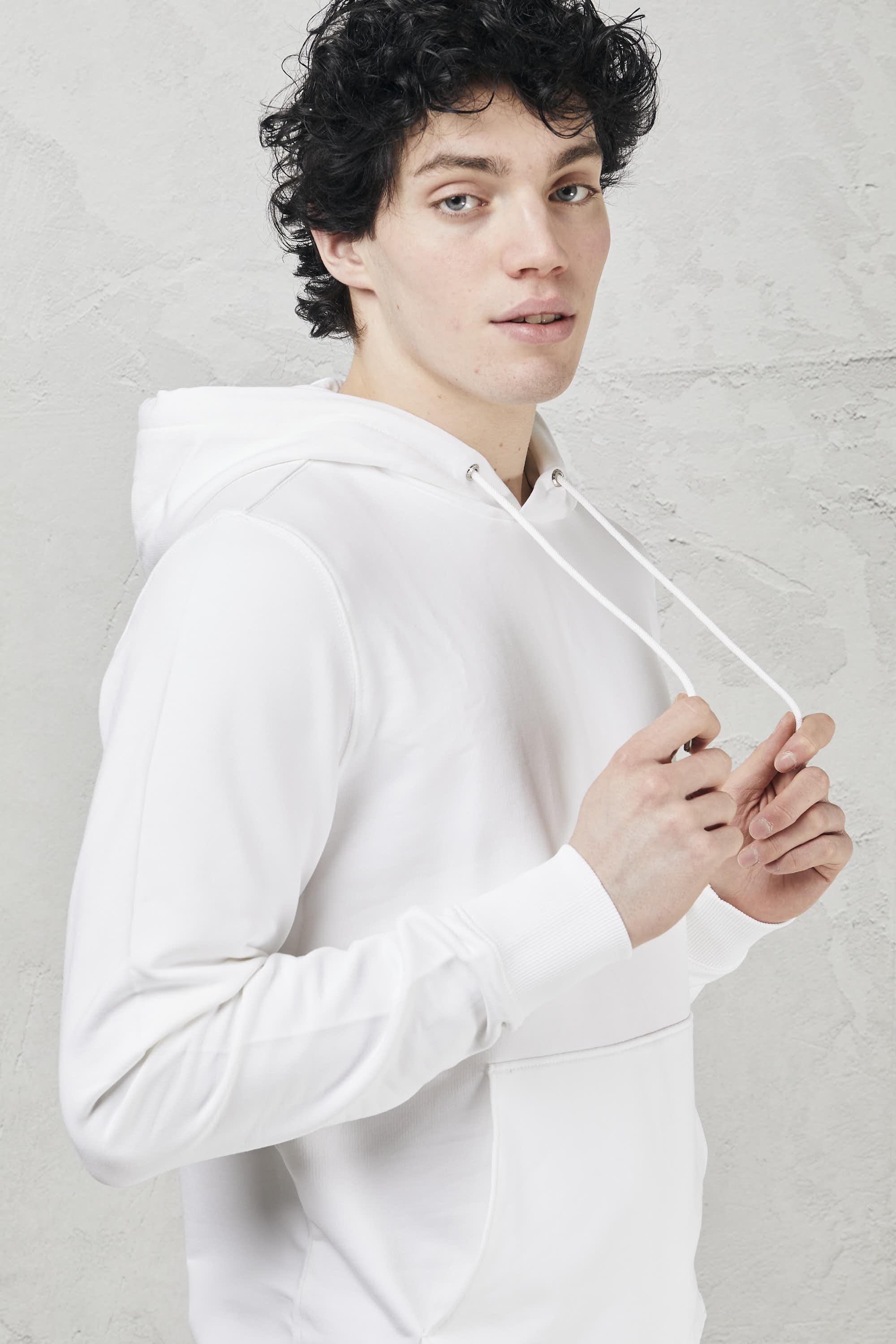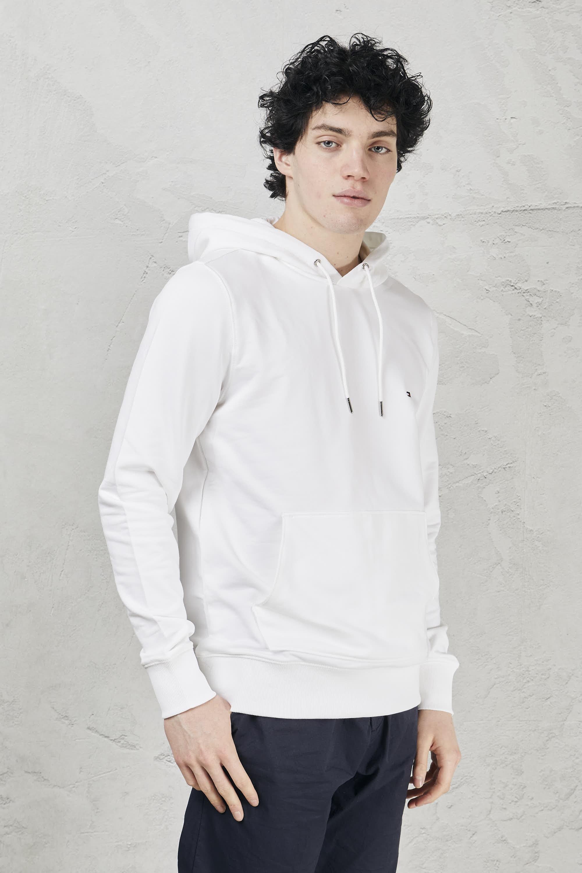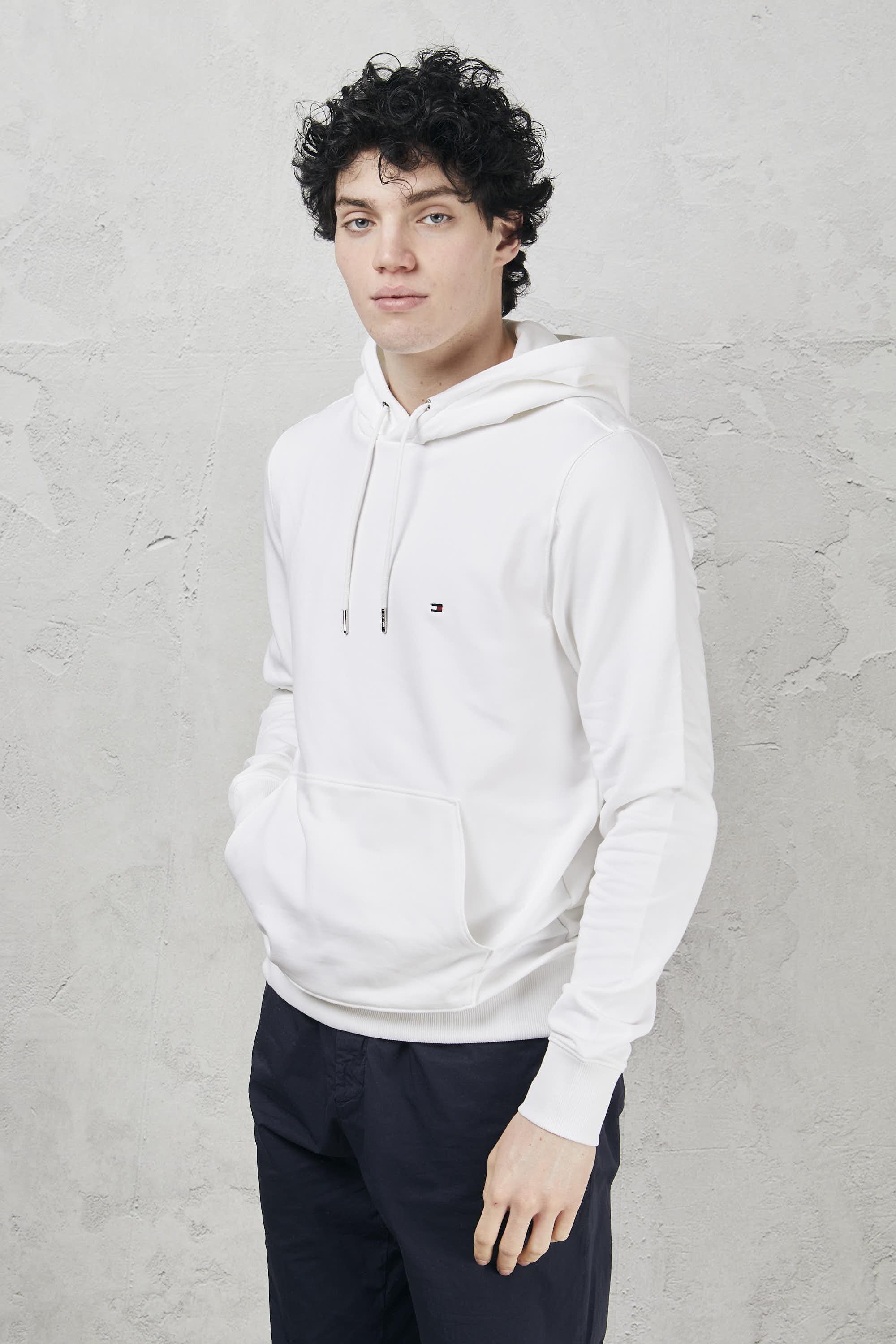 Felpa con cappuccio e lacci, tasca a marsupio e bandierina Tommy Hilfiger ricamata sul petto. Il modello è alto 187 cm e indossa la taglia L.Materiale: 65% Cotone biologico 30% Cotone 5% Elastan
