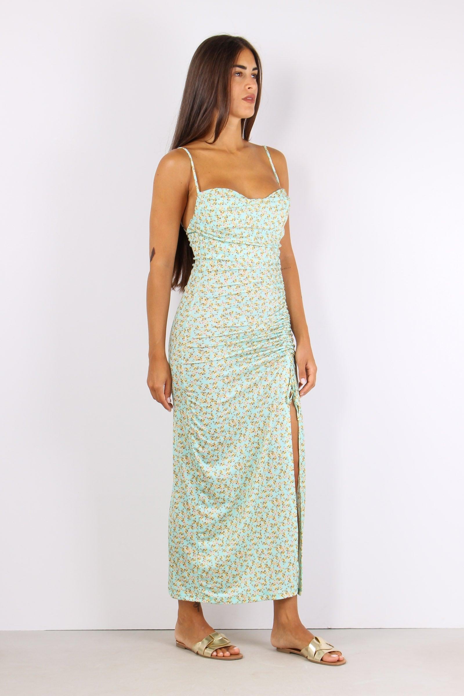 too white Abito Arriccio Fantasia Fiori Azzurro