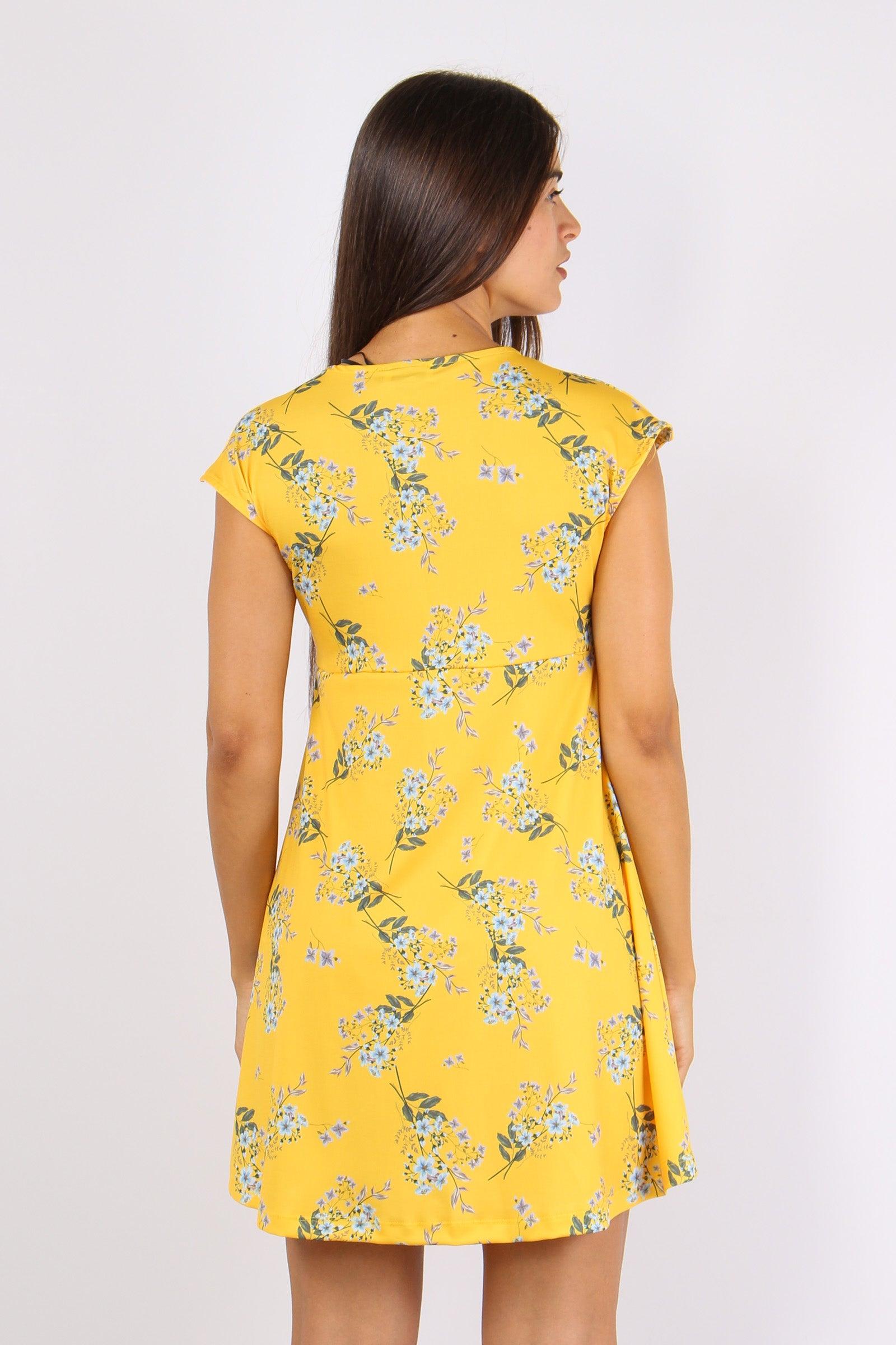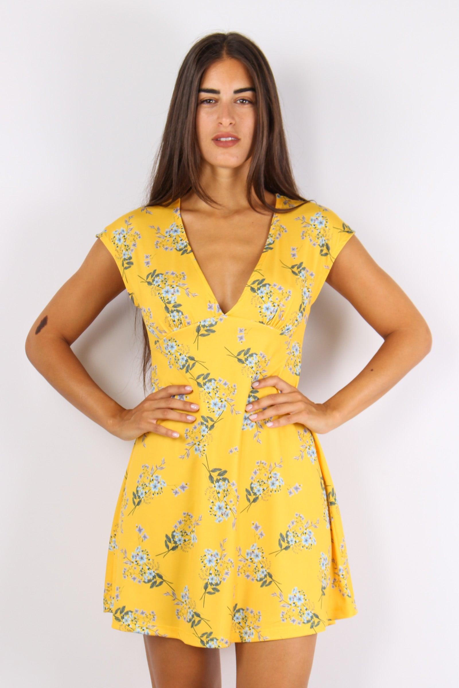too white Abito Scollo V Fantasia Fiori Giallo